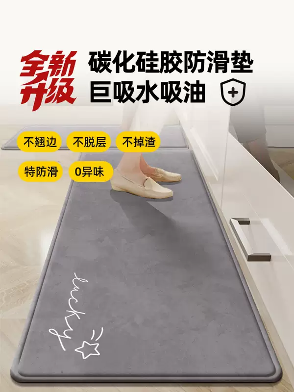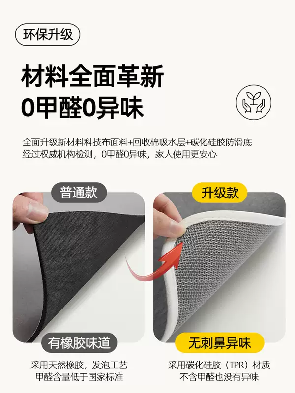 Yusenyi ykmore kitchen floor mat new style 2025 water-absorbent non-slip carpet no-wash wipeable waterproof and oil-proof no-clean rectangular imitation linen Zen 1-40x60cm thick 4mm (2025 model does not ball up丨