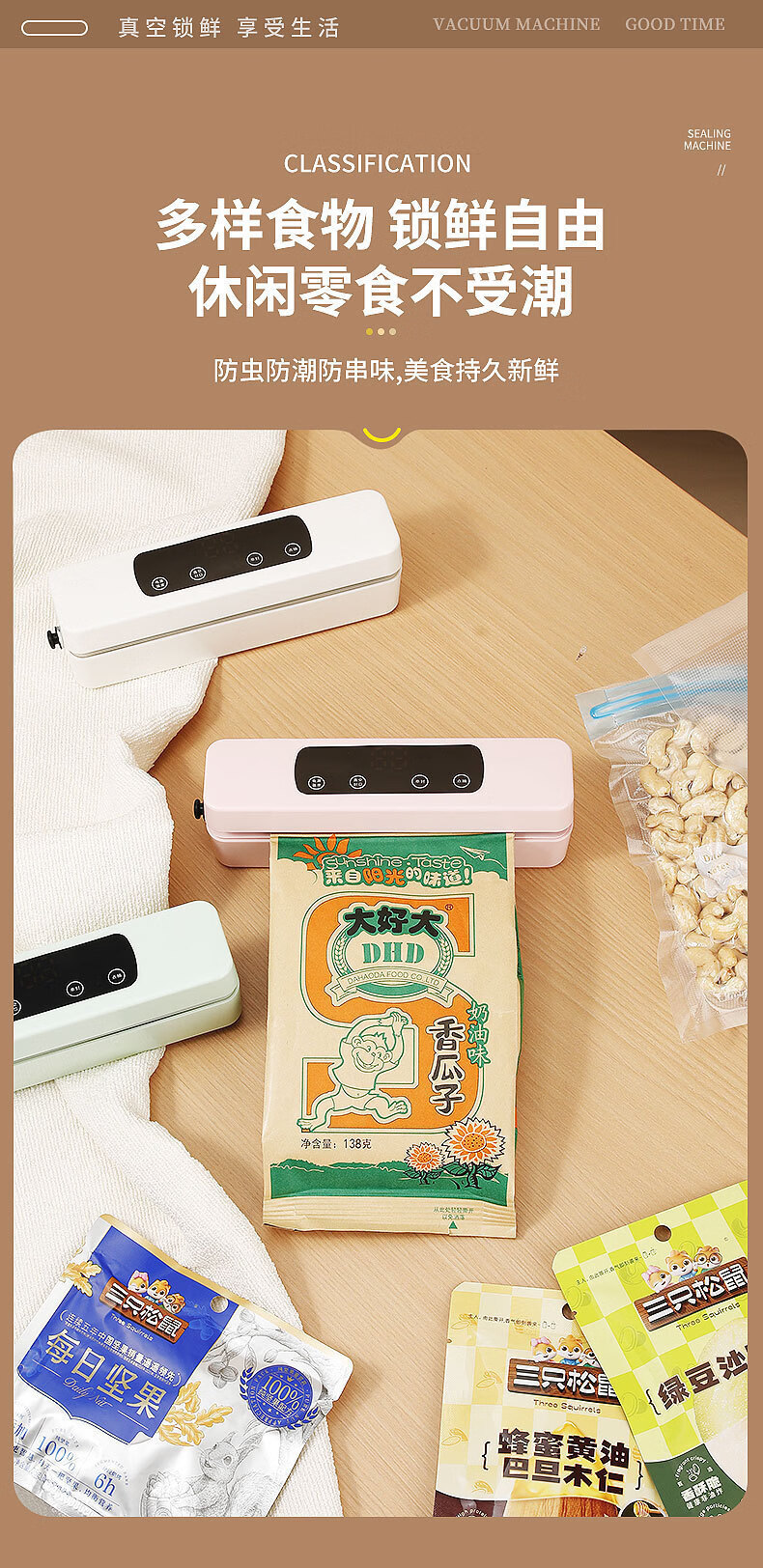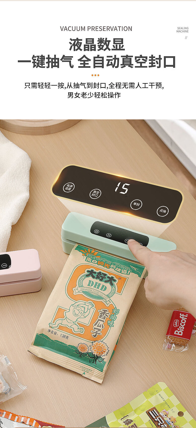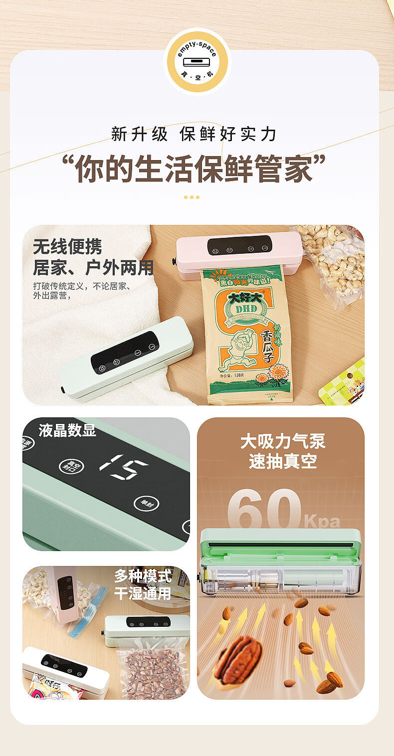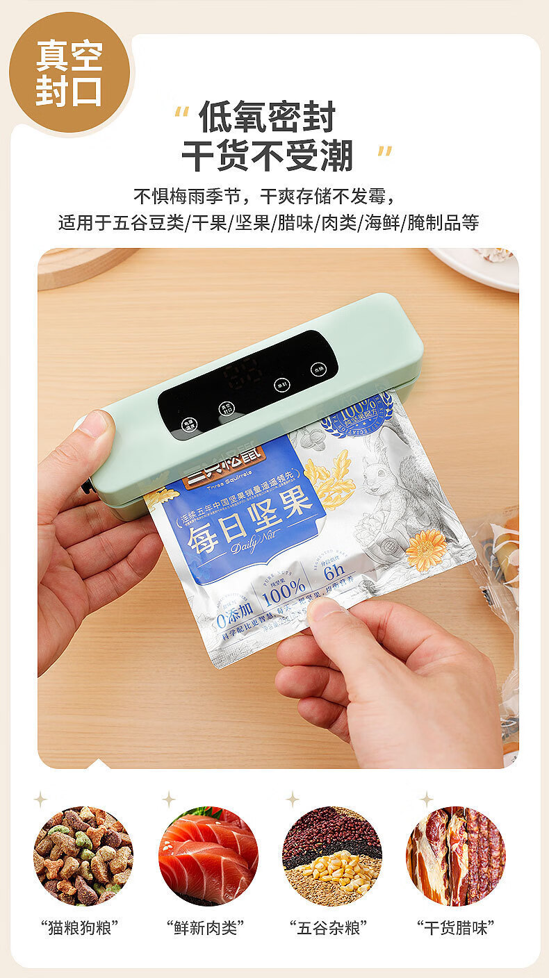 Shanmi automatic sealing household vacuum machine sealing machine food packaging all-in-one machine fresh-keeping sealing plastic sealing machine compressor pearl white