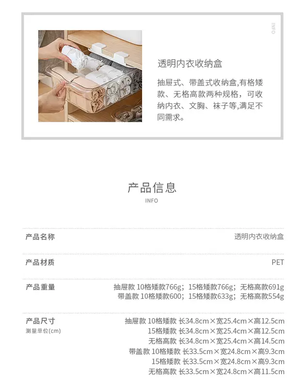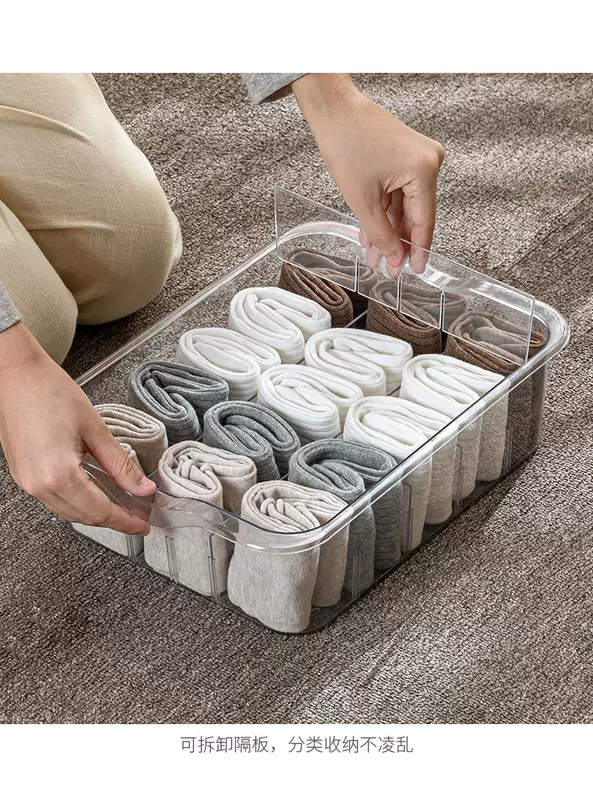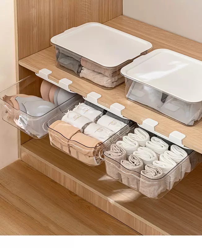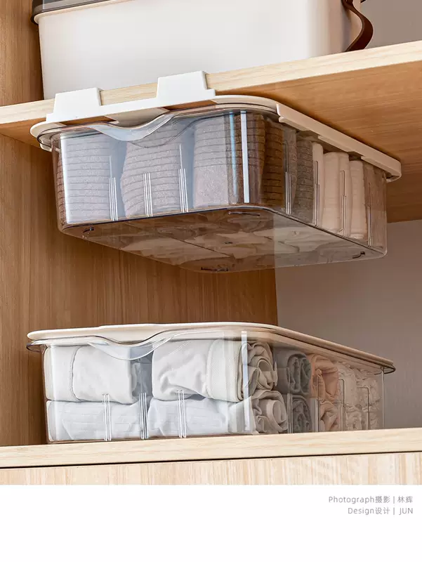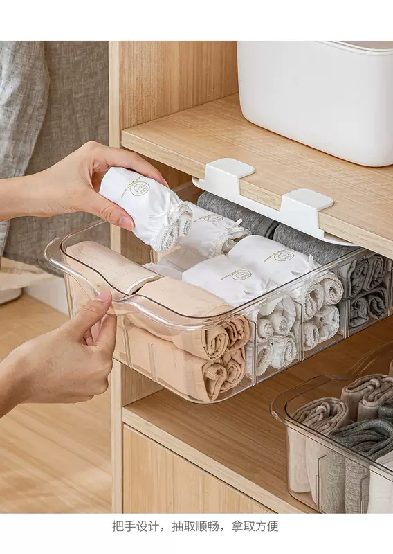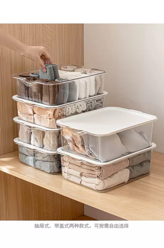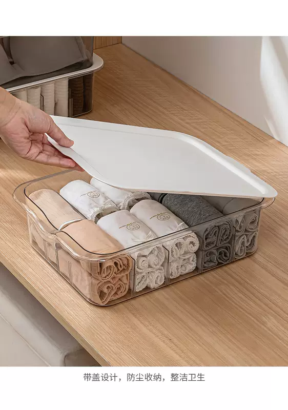Yusenyi Clothes Underwear Organizing Underwear Socks Storage Box Transparent Household Partition Wardrobe Layered Artifact Drawer Basket White Transparent 10-Gate Short Underwear Storage Floor-Standing With Lid