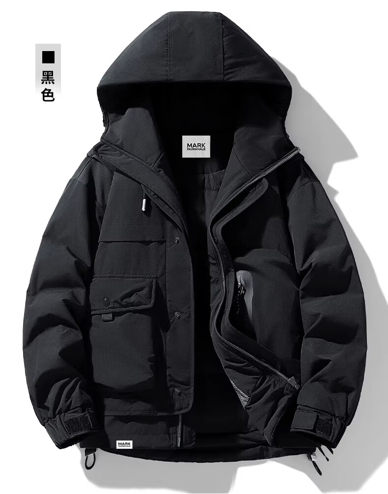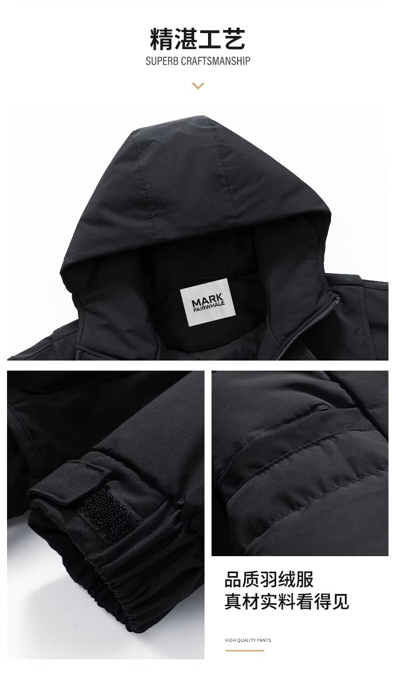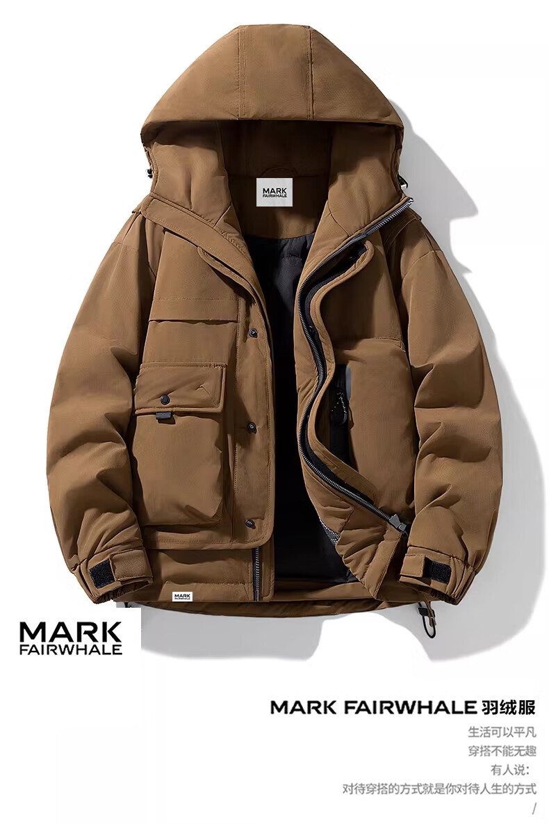 MARK FAIRWHALE Hong Kong style retro casual down jacket men's 2026 spring new warm and comfortable thickened anti-cold tide brand top black 85% white duck down M recommended 105-120 Jin Jin equals 0.5 kg