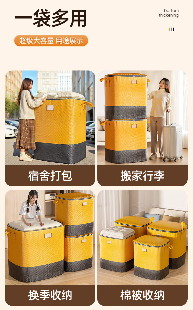Shijanu super large capacity moving packing bag thickened woven luggage organization special artifact waterproof and moisture-proof quilt storage bag 5 pieces - yellow thick bottom 140L