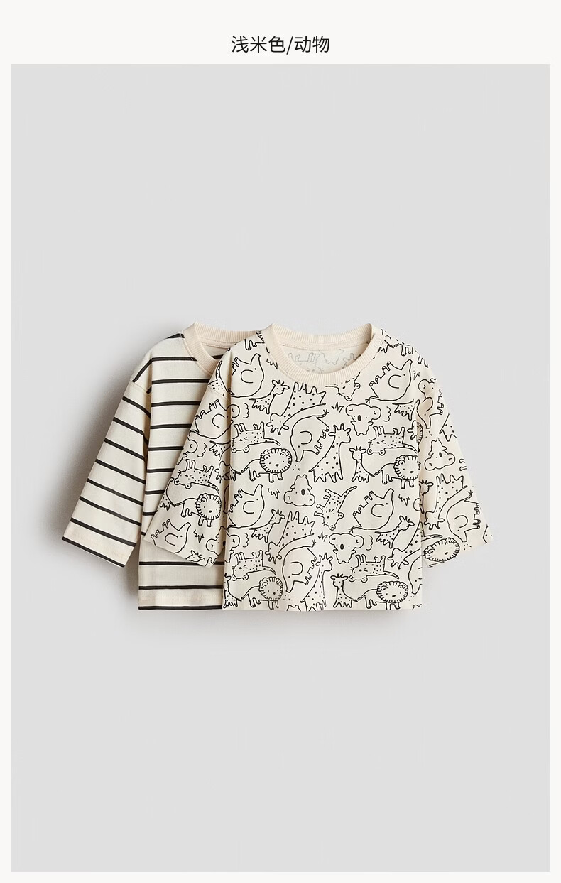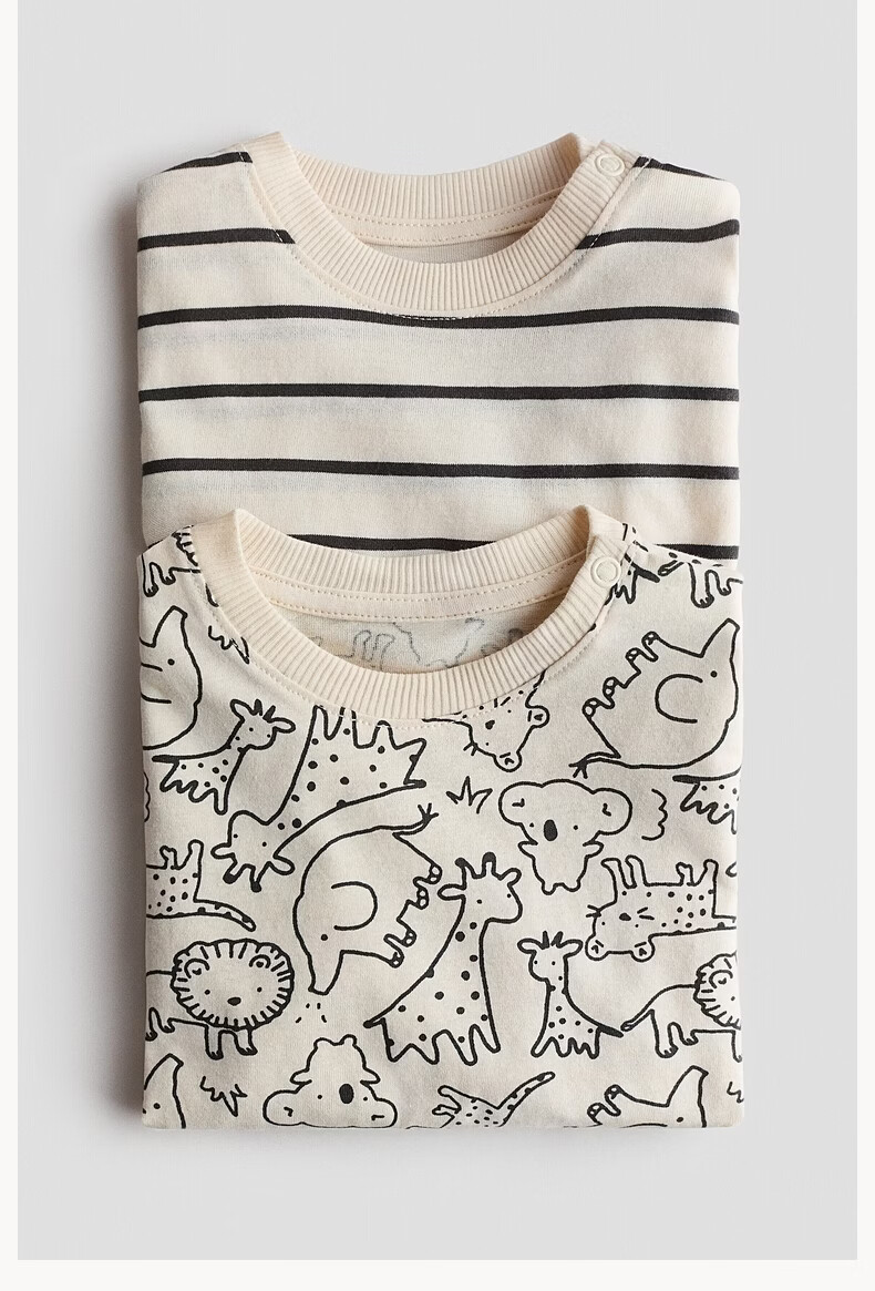 H&M 2026 spring new children's clothing baby boy 2-piece printed T-shirt 1314915 light beige/animal 80 80/48 (9-12M)