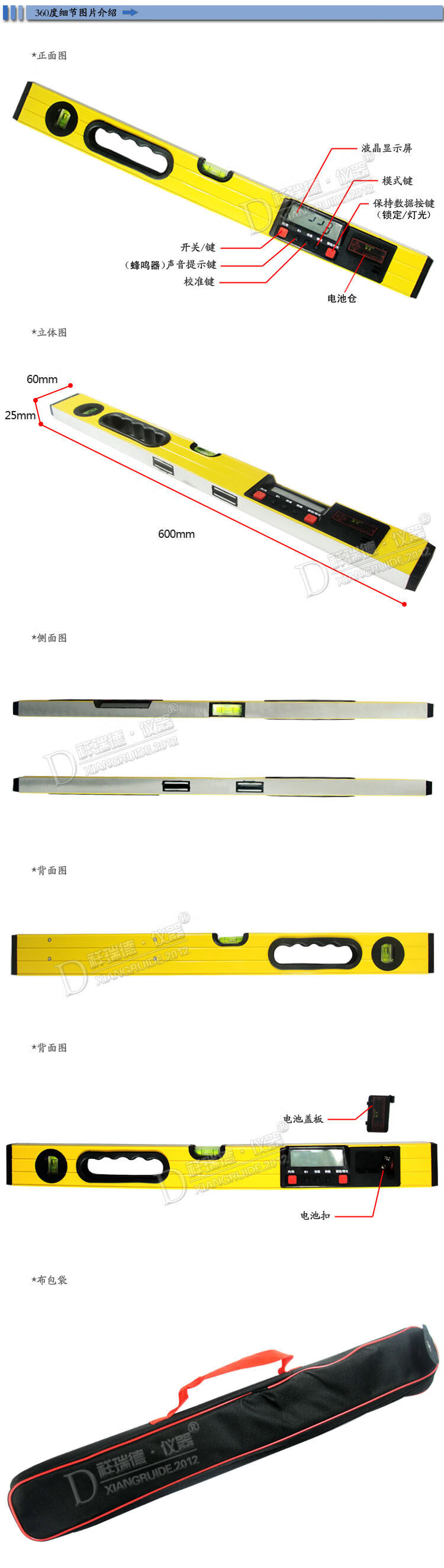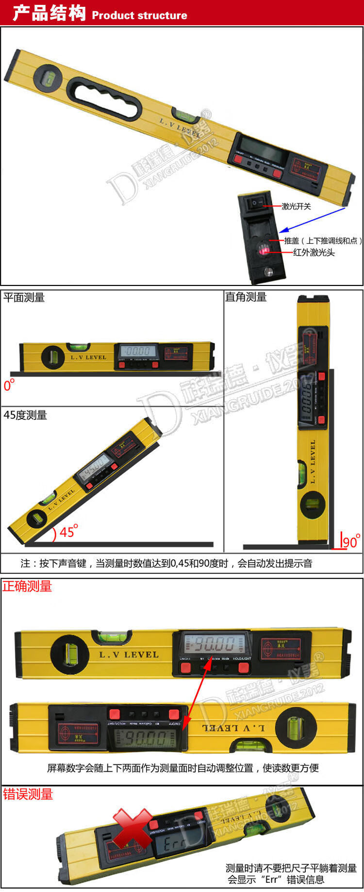 XIANGRUIDE. Instrument (XIANGRUIDE.2012) XIANGRUIDE level high-precision electronic digital display ruler 1 meter small angle level measuring instrument measuring ruler 100 cm