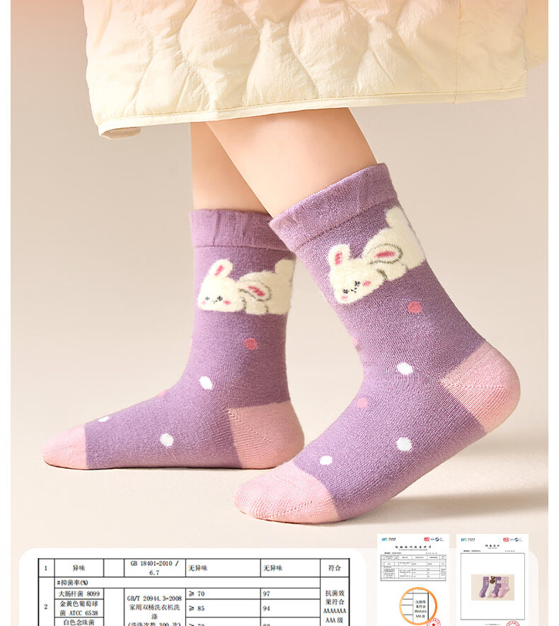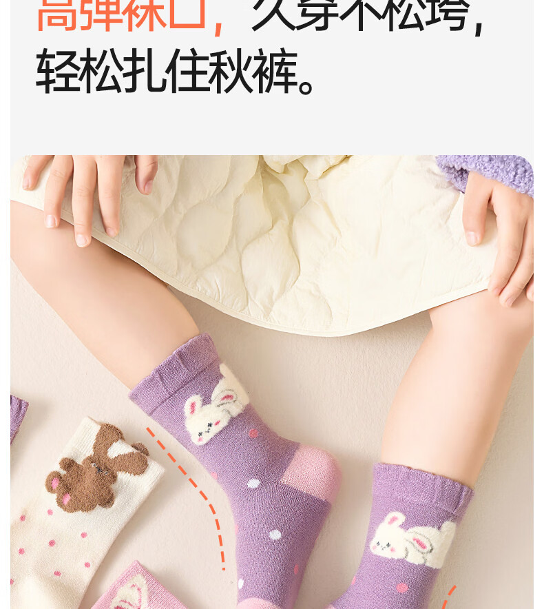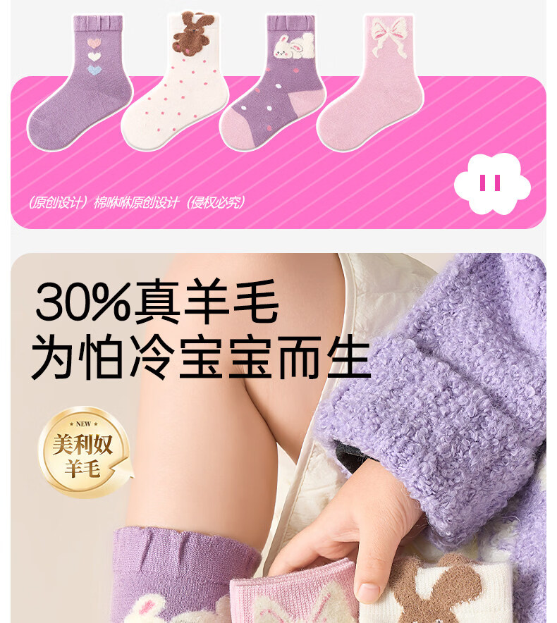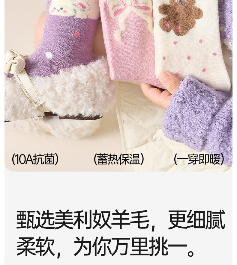 Cotton wool socks, girls' sheep wool socks, autumn and winter new style, velvet and thickened, warm winter high socks, 4 pairs T201-girls style-4 pairs (containing 30% wool), super soft, warm and not bulky, 12 years and above - recommended foot length 23-25CM, shoe size 37-39