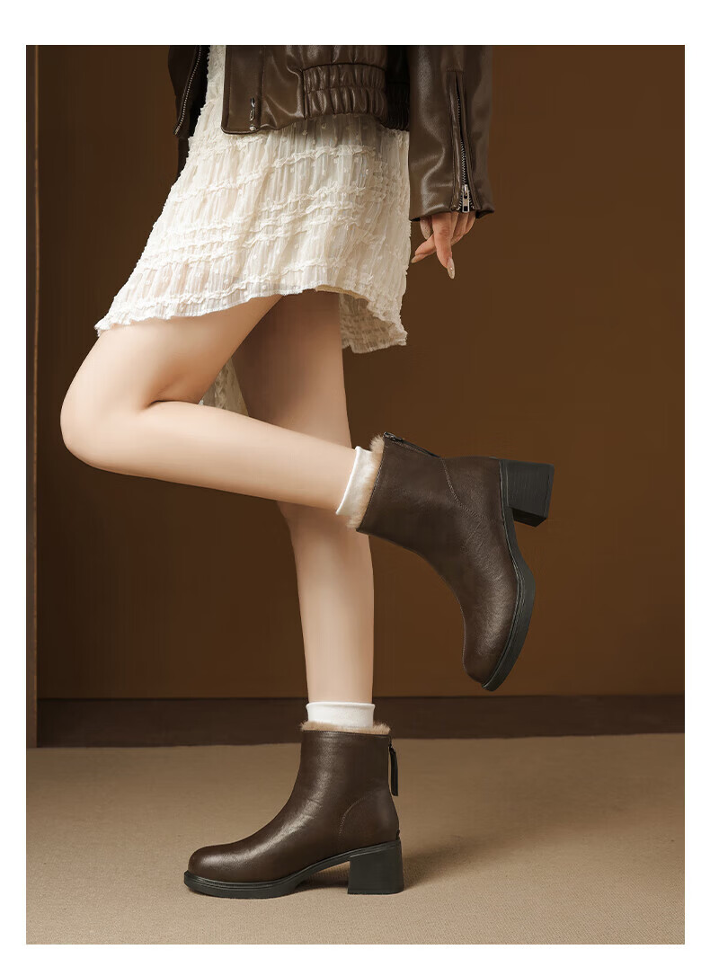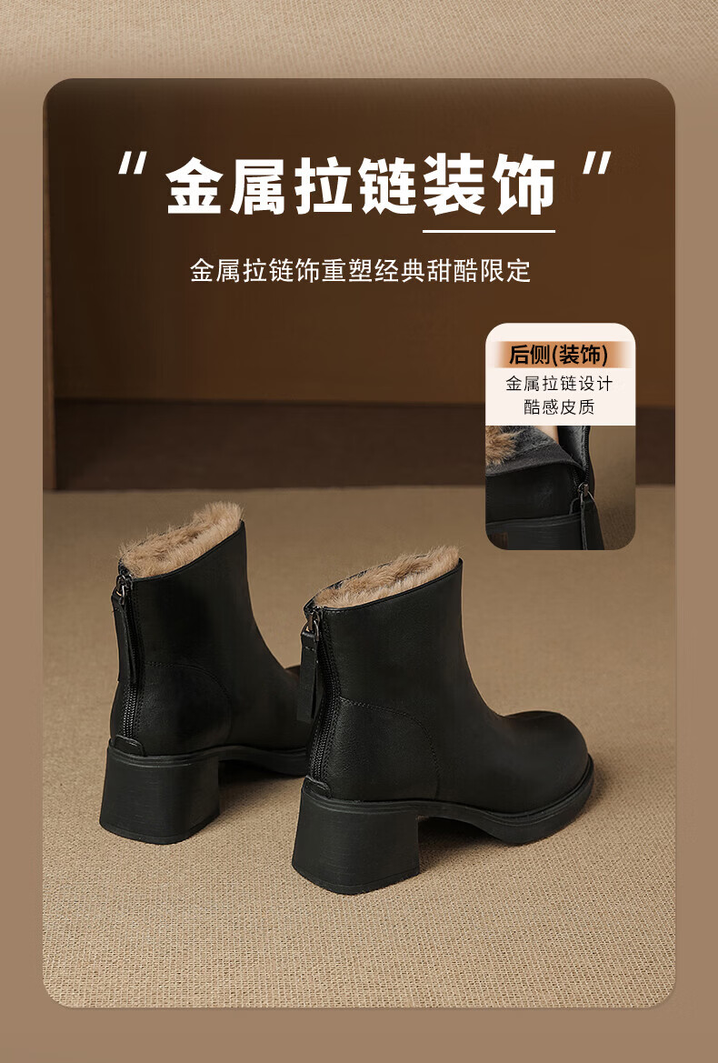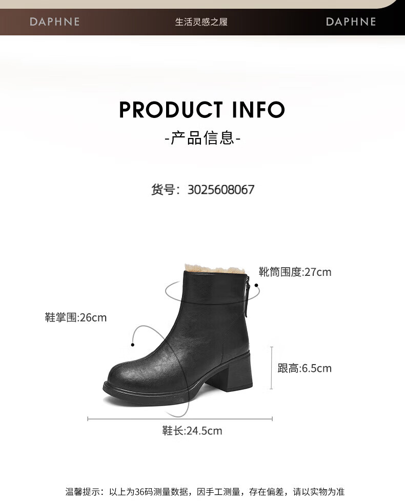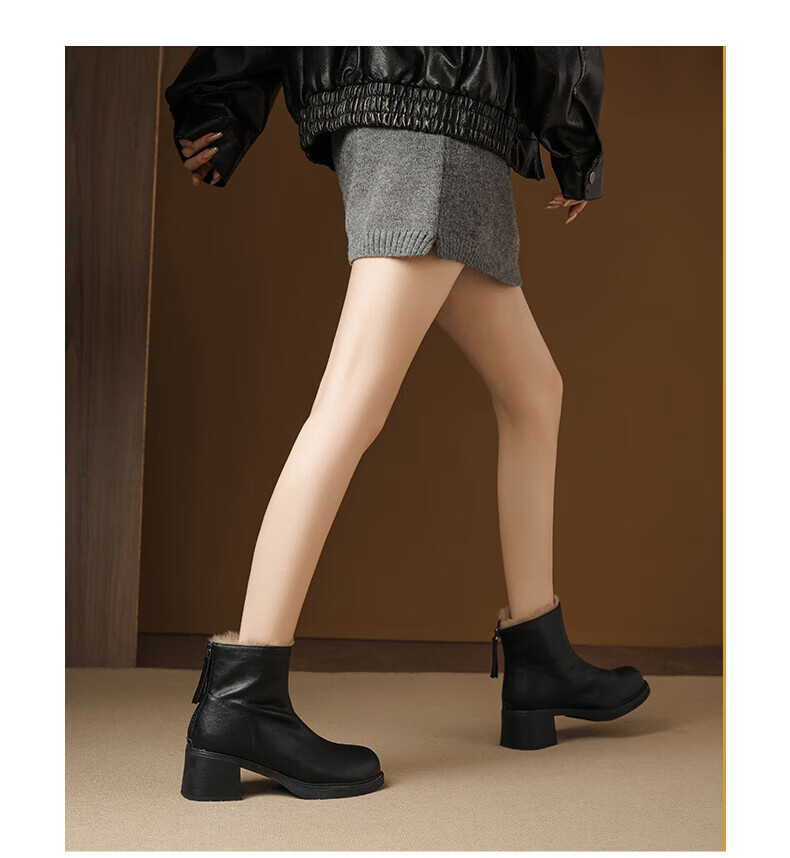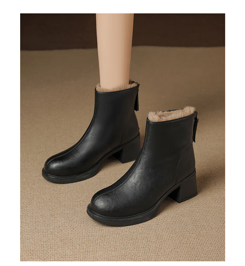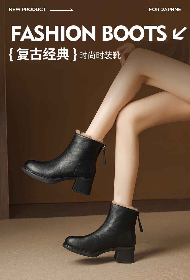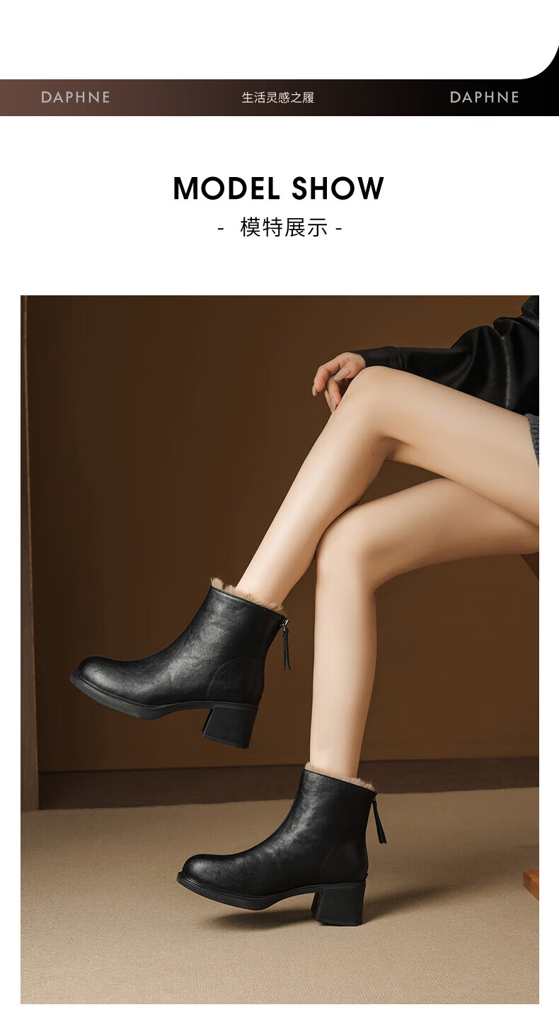 Daphne French High Heel Short Boots Women's Winter Velvet Thickened Snow Boots 2025 New Black Martin Slim Boots Black 35