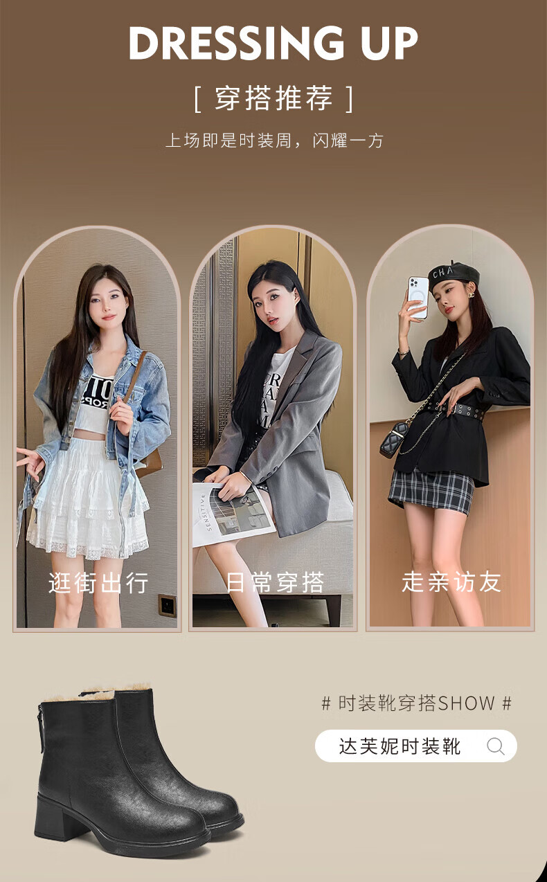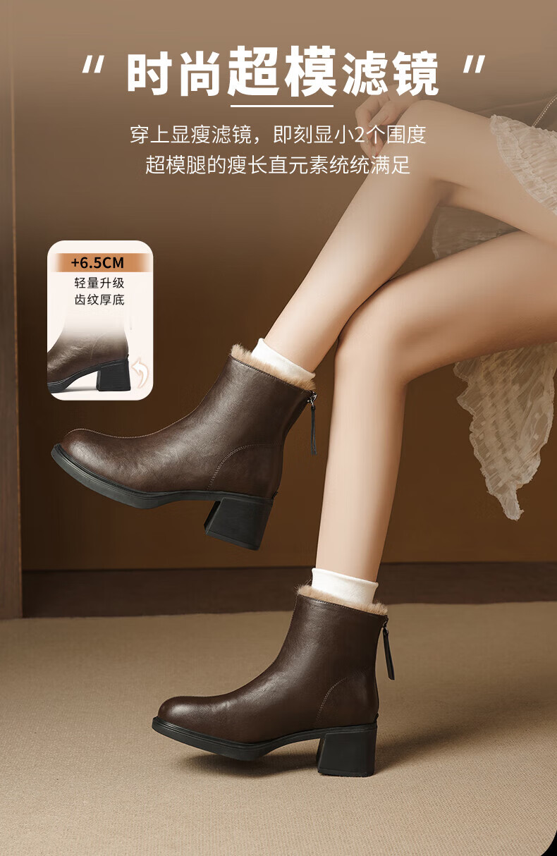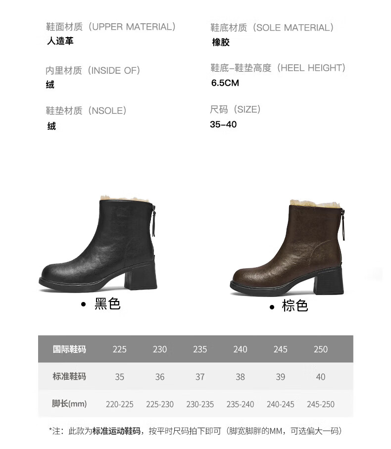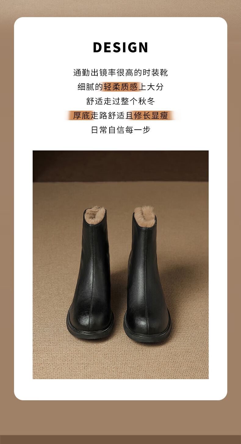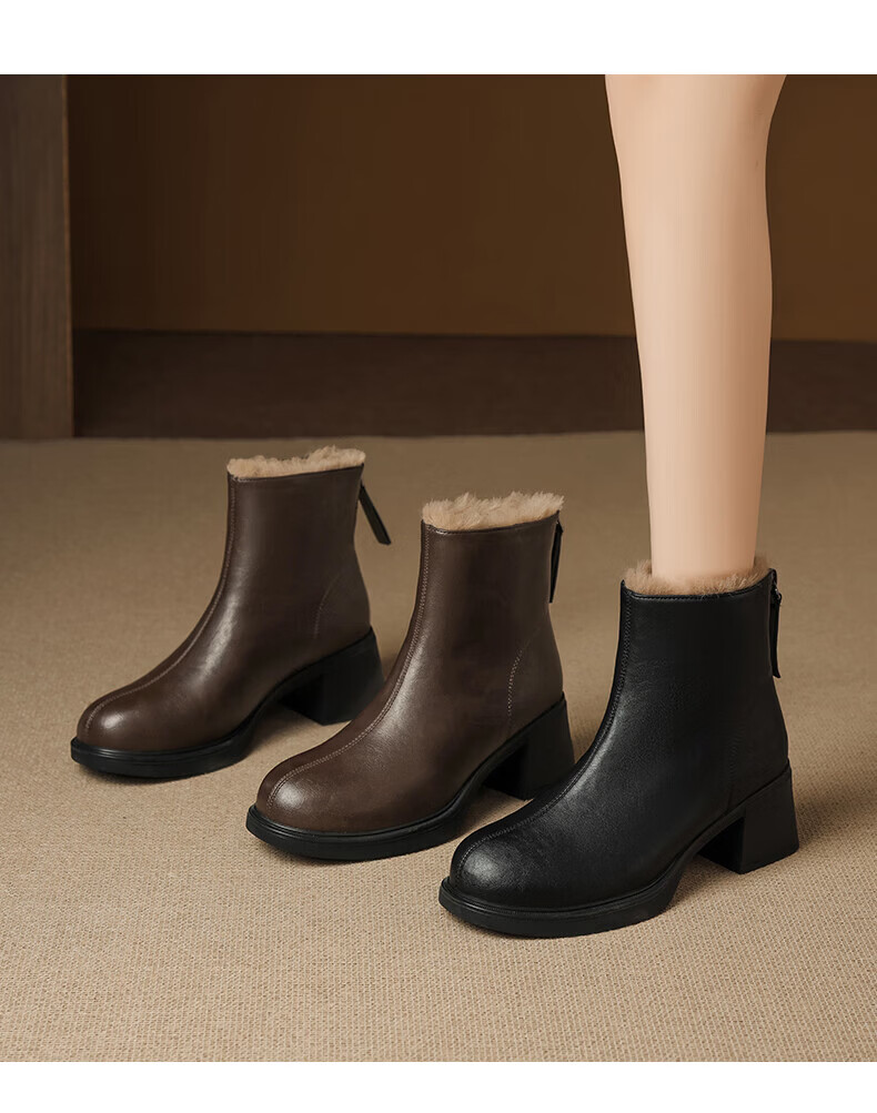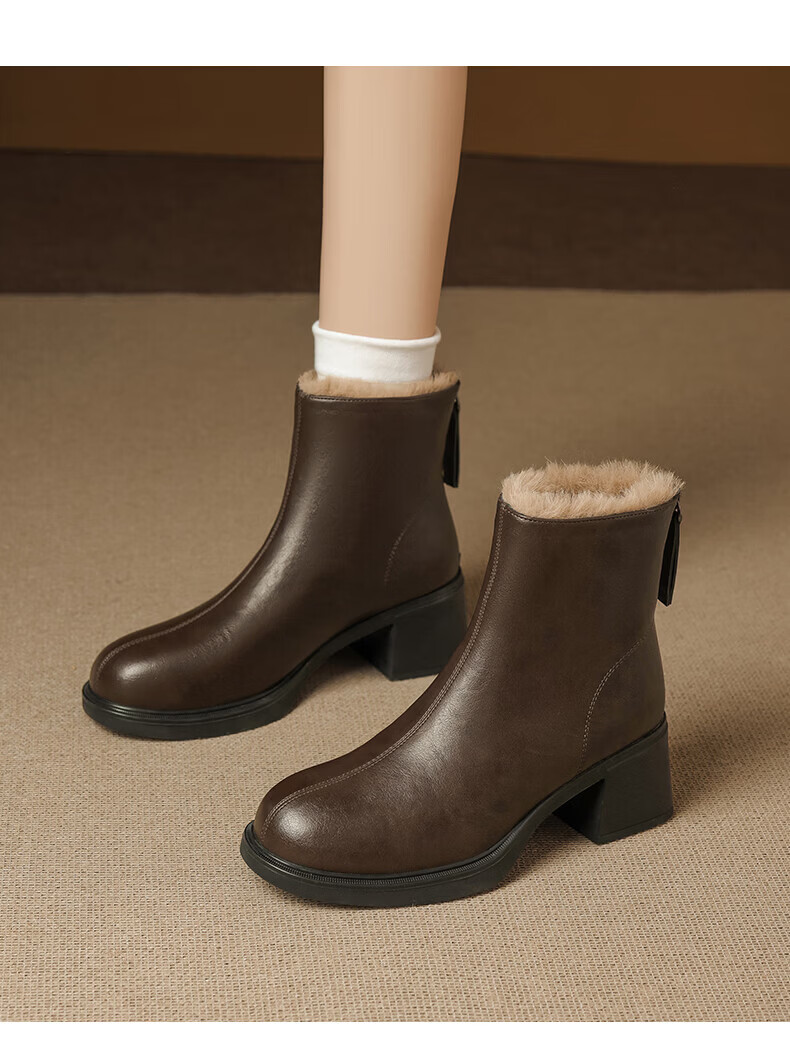 Daphne French High Heel Short Boots Women's Winter Velvet Thickened Snow Boots 2025 New Black Martin Slim Boots Black 35