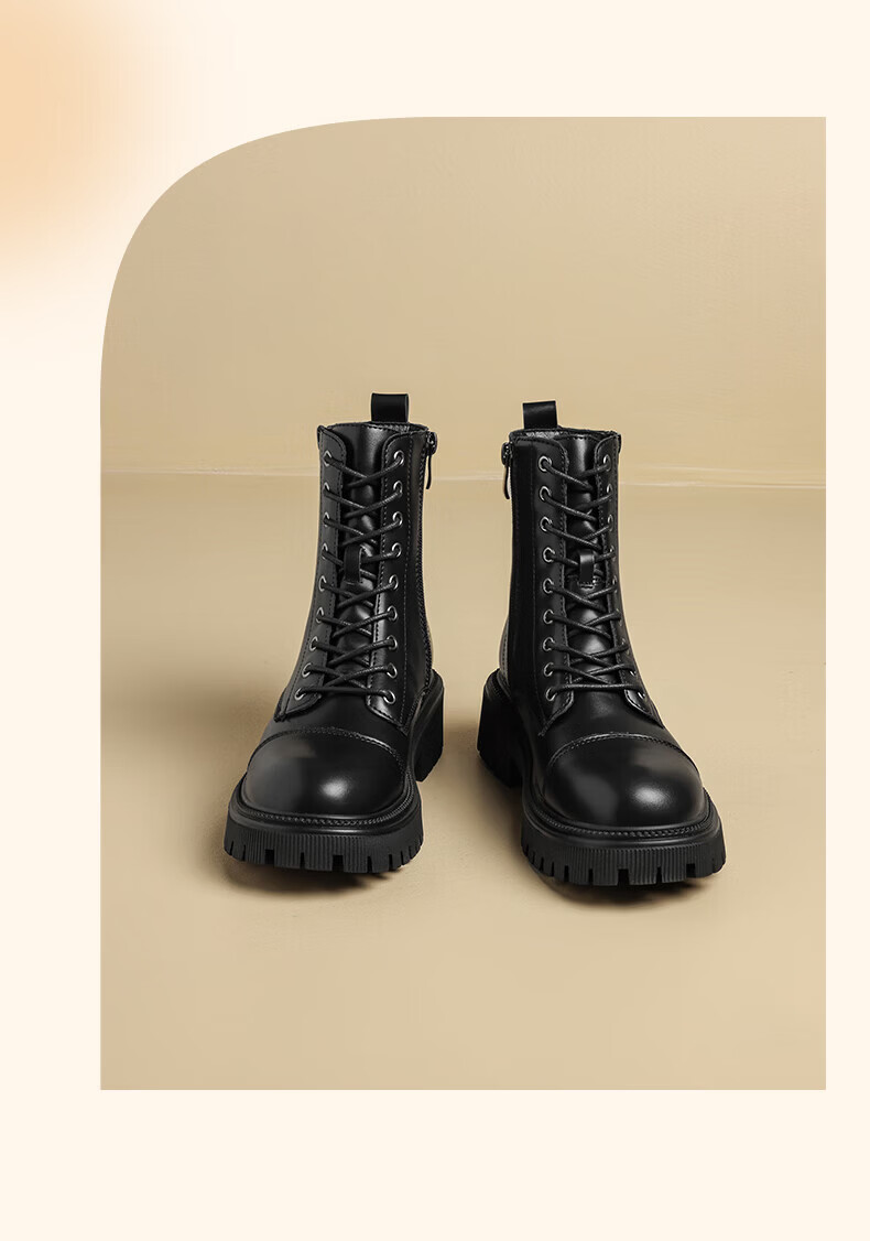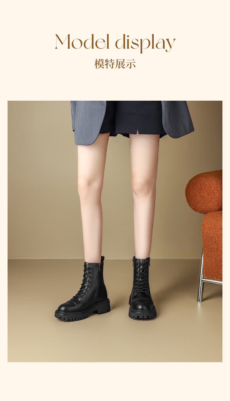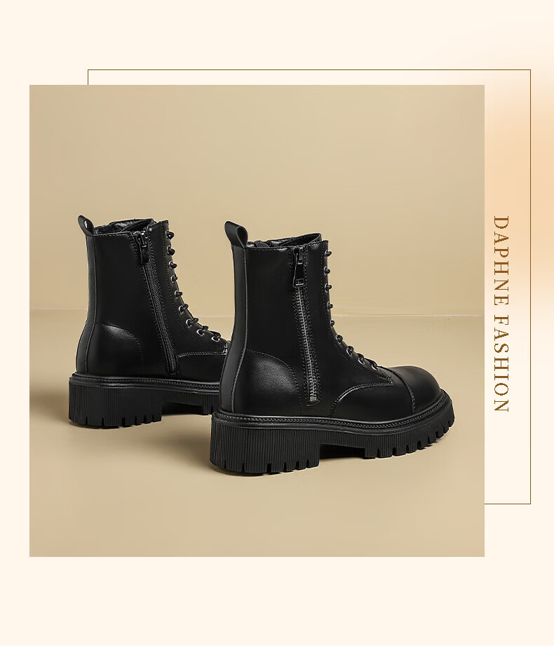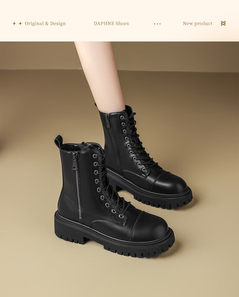 Daphne Martin boots for women 2025 British style small height increasing short boots versatile black work boots milk tea color 37