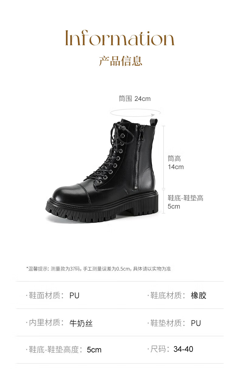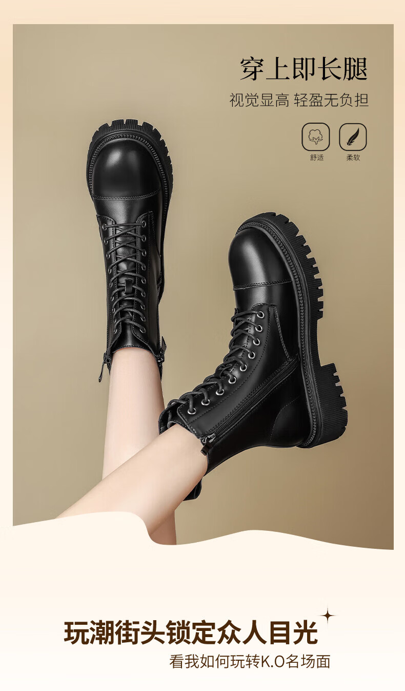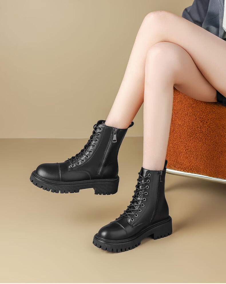 Daphne Martin boots for women 2025 British style small height increasing short boots versatile black work boots milk tea color 37