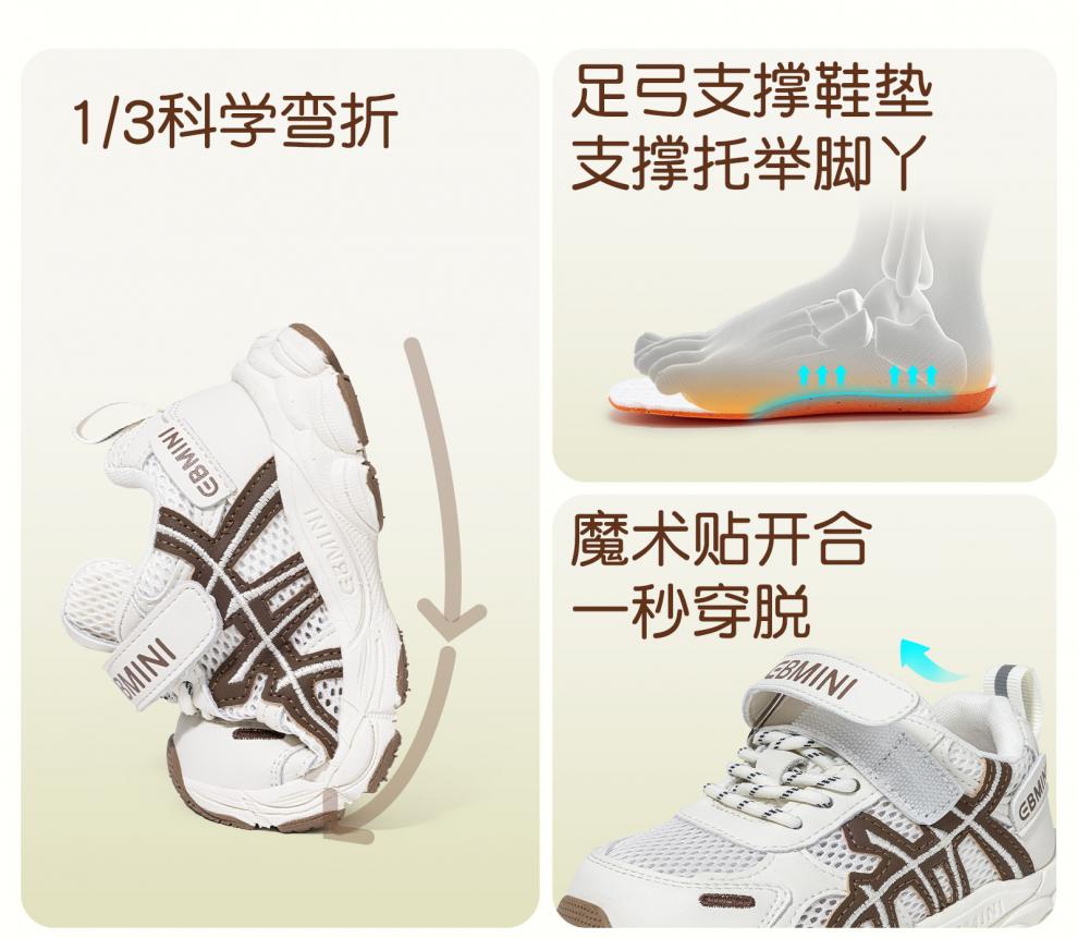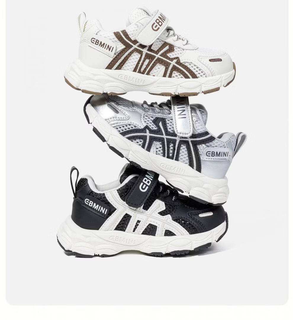 Inbemini children's running shoes 2026 spring new wide last shoes boys mesh sports shoes girls outdoor shoes Earl Black 22 inner length 14.1CM suitable for feet around 13.4CM