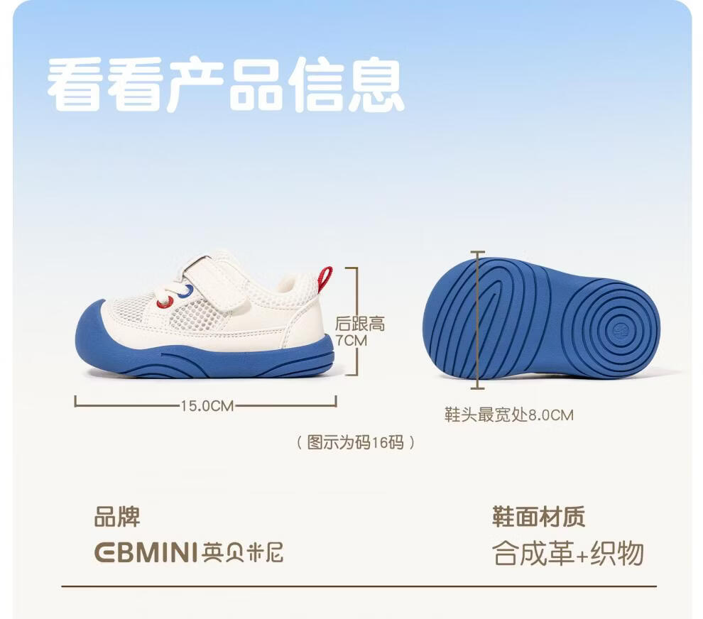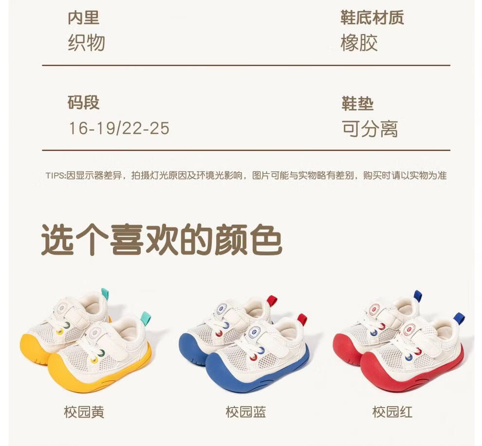 Inbemini children's toddler shoes 2026 spring foot protection boys functional shoes new girls kindergarten campus shoes campus red 16 inner length 12.4CM suitable for feet around 11.7CM