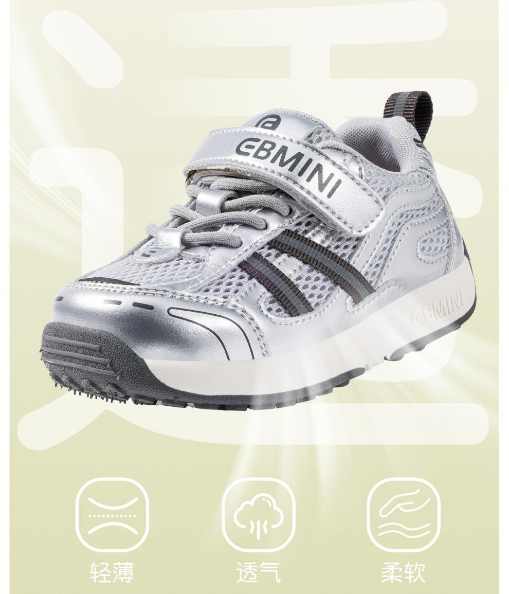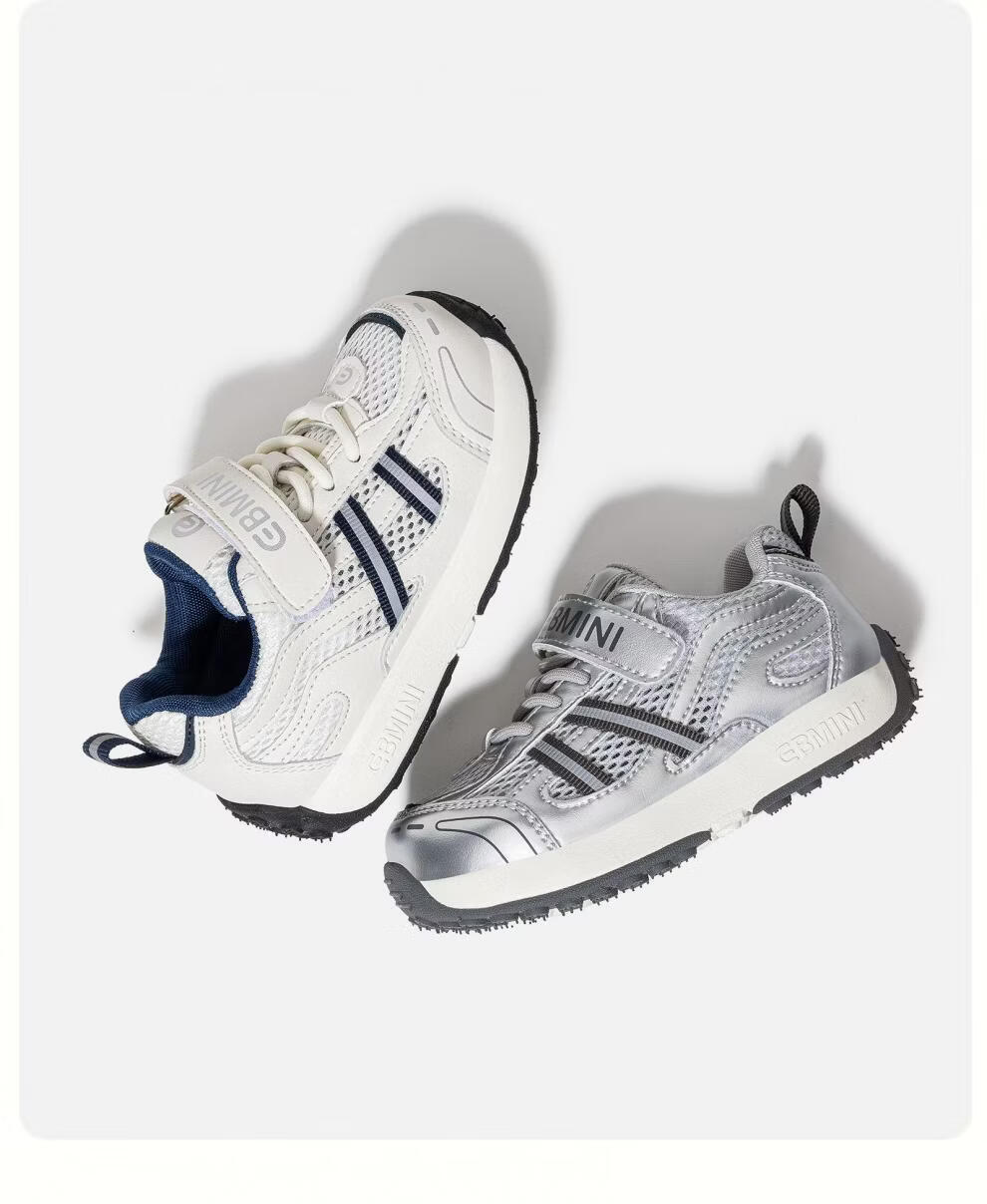 Inbemini children's sports shoes 2026 spring new mesh casual boys' shoes girls versatile Forrest Gump shoes Technology Silver 22 inner length 14.2CM suitable for feet around 13.5CM