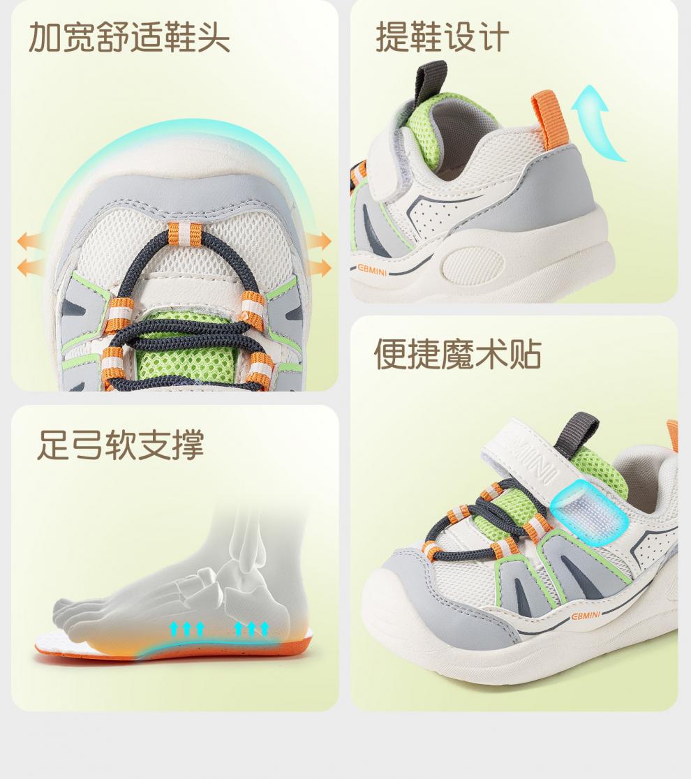 Inbemini children's toddler shoes 2026 spring new functional shoes for boys and girls, foot protection shoes, baby shoes, grass green 17, inner length 12.8CM, suitable for feet around 12.1CM