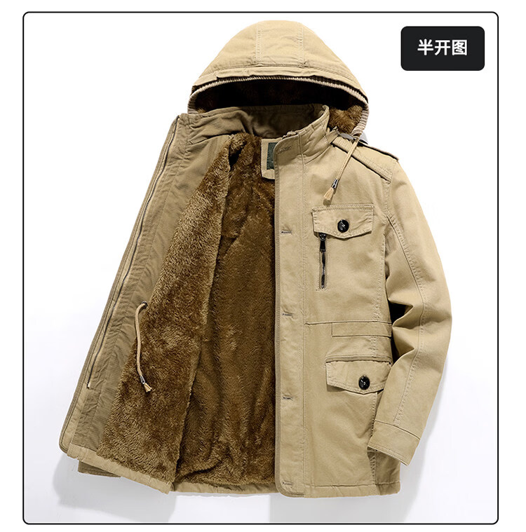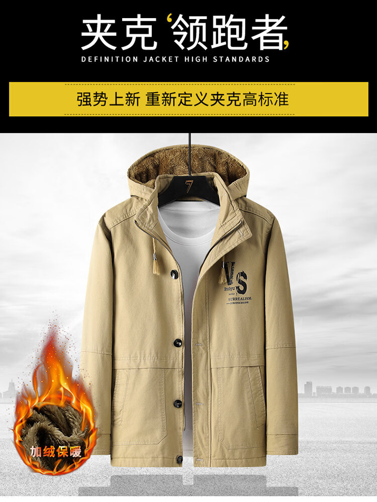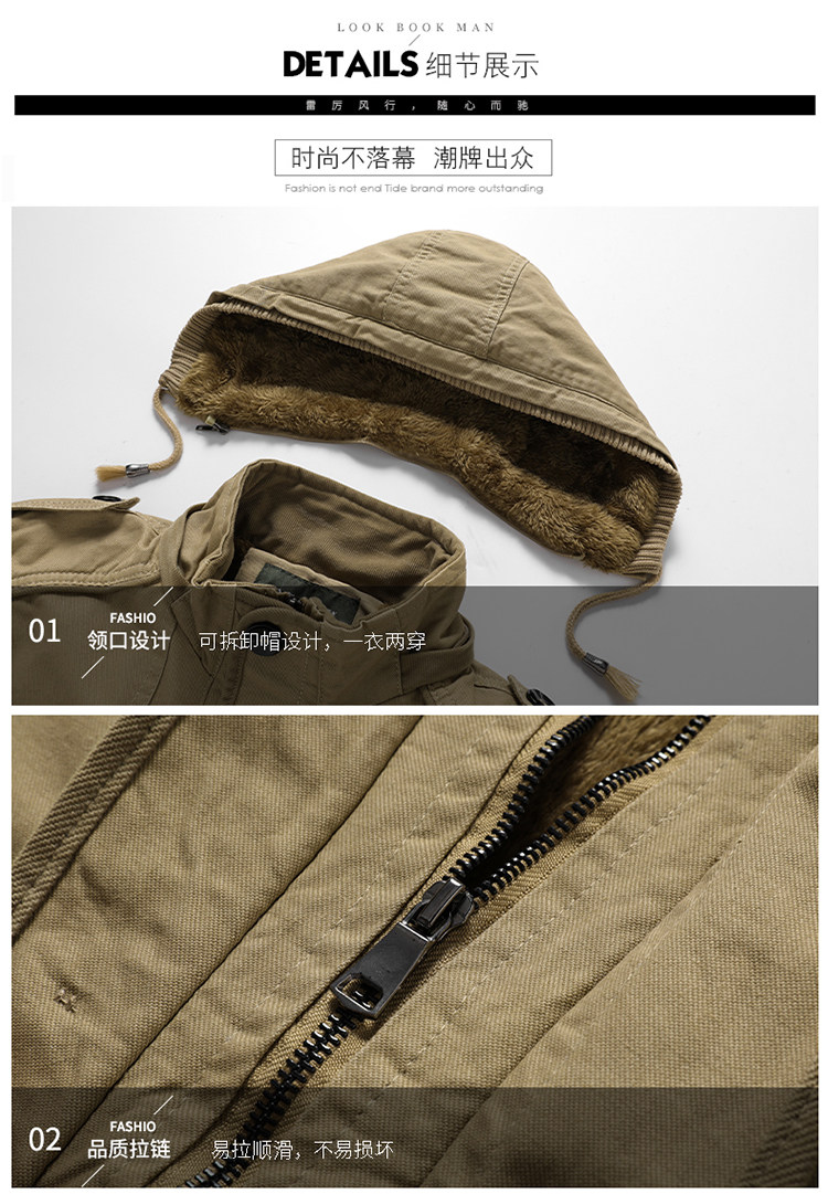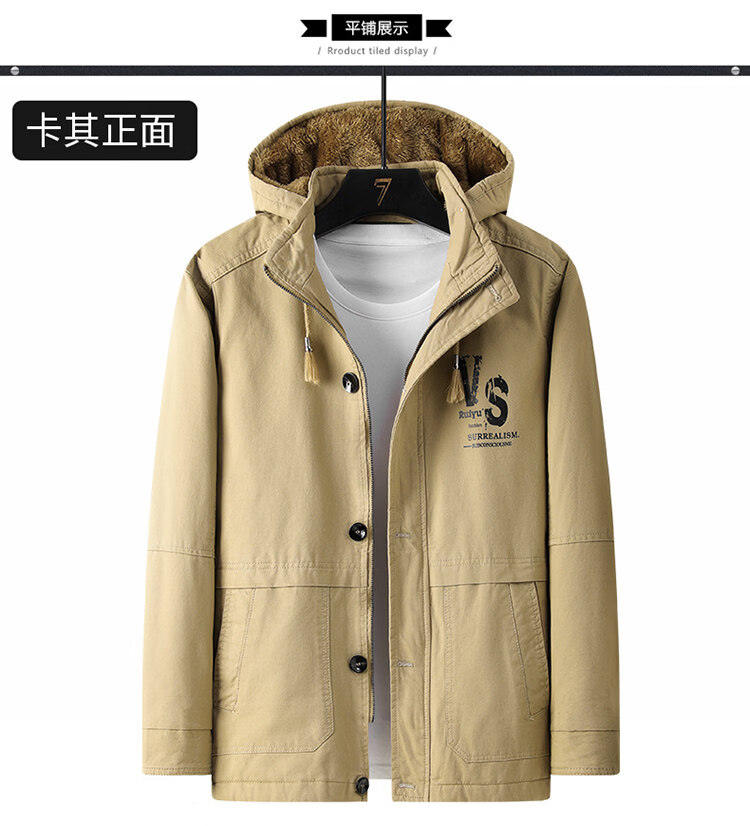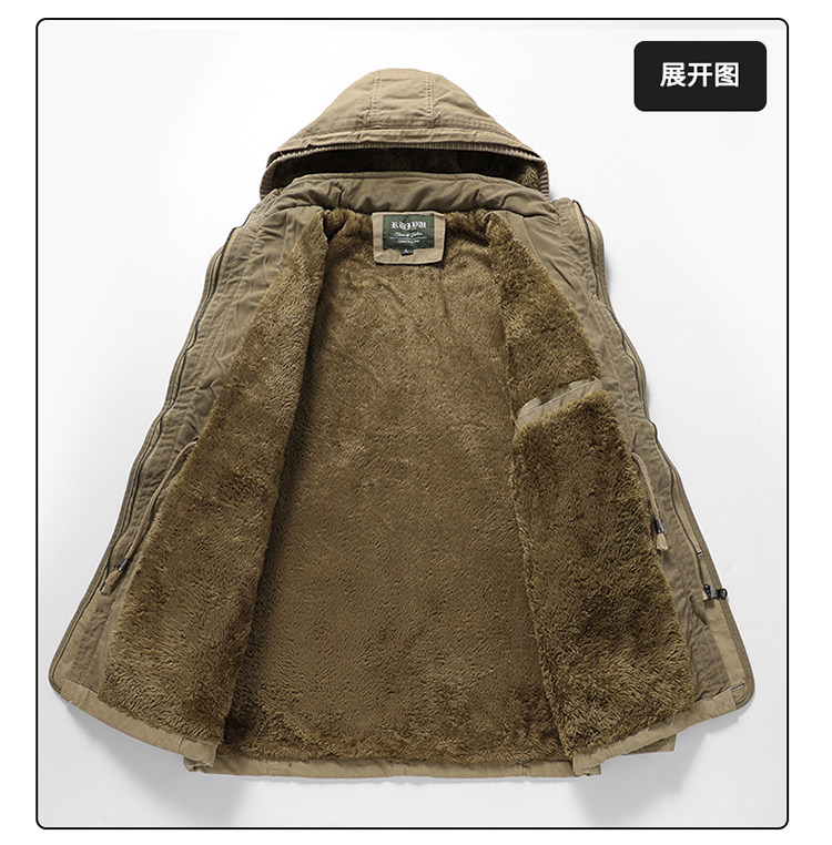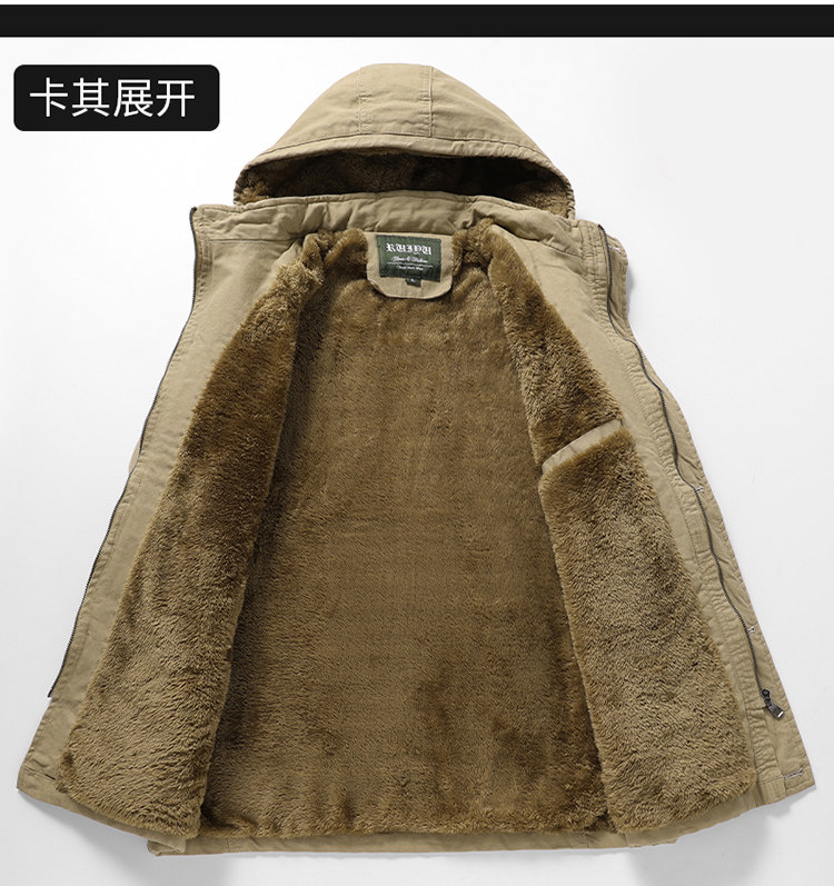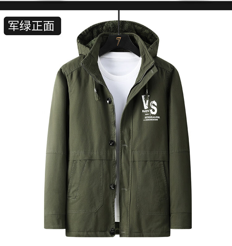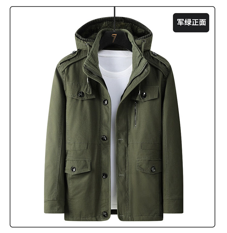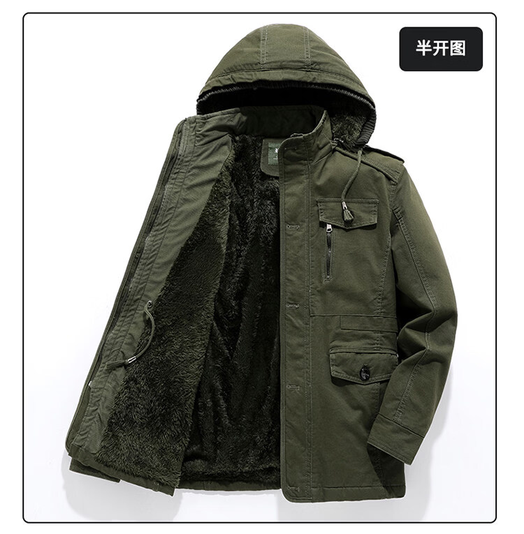 Hengyuanxiang thickened jacket men's velvet cotton autumn and winter new cotton jacket middle-aged and elderly loose large size casual mid-length top 8808 military green plus velvet 2XL suitable for weights under 155
