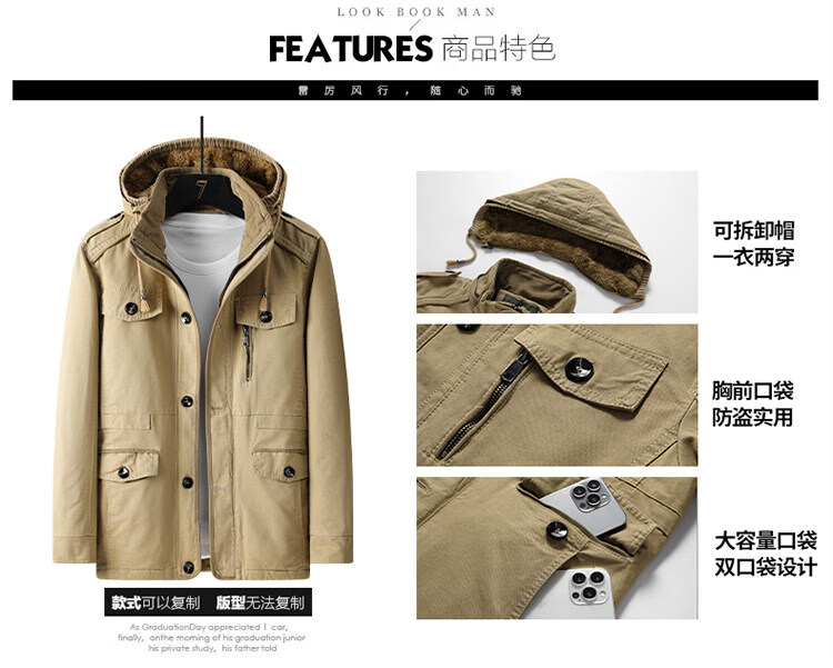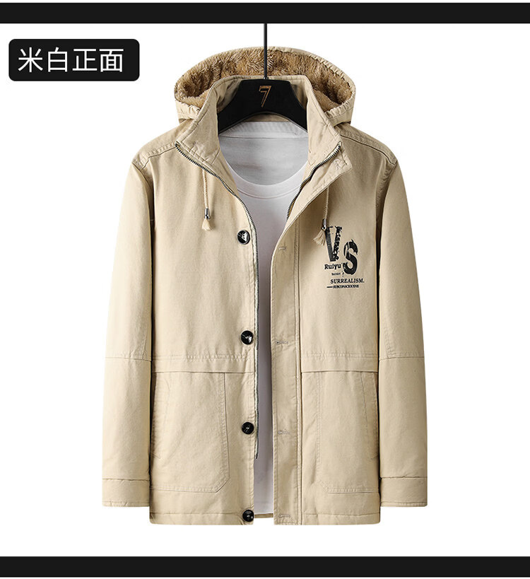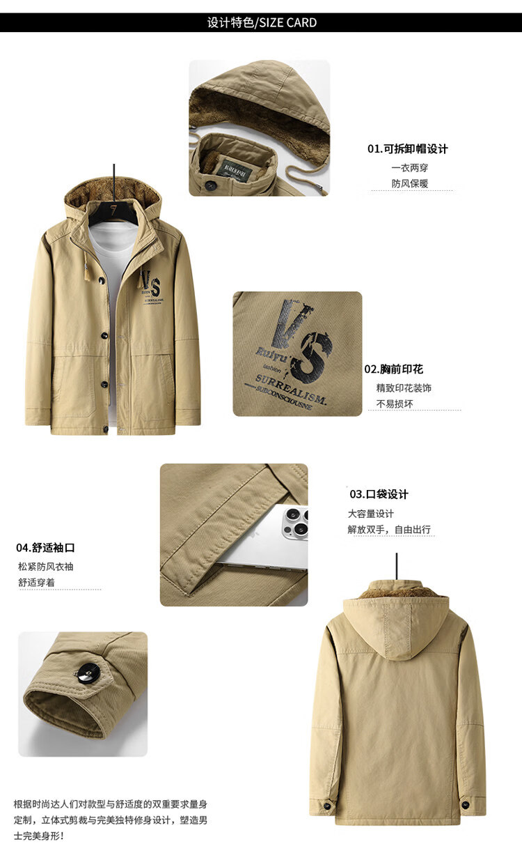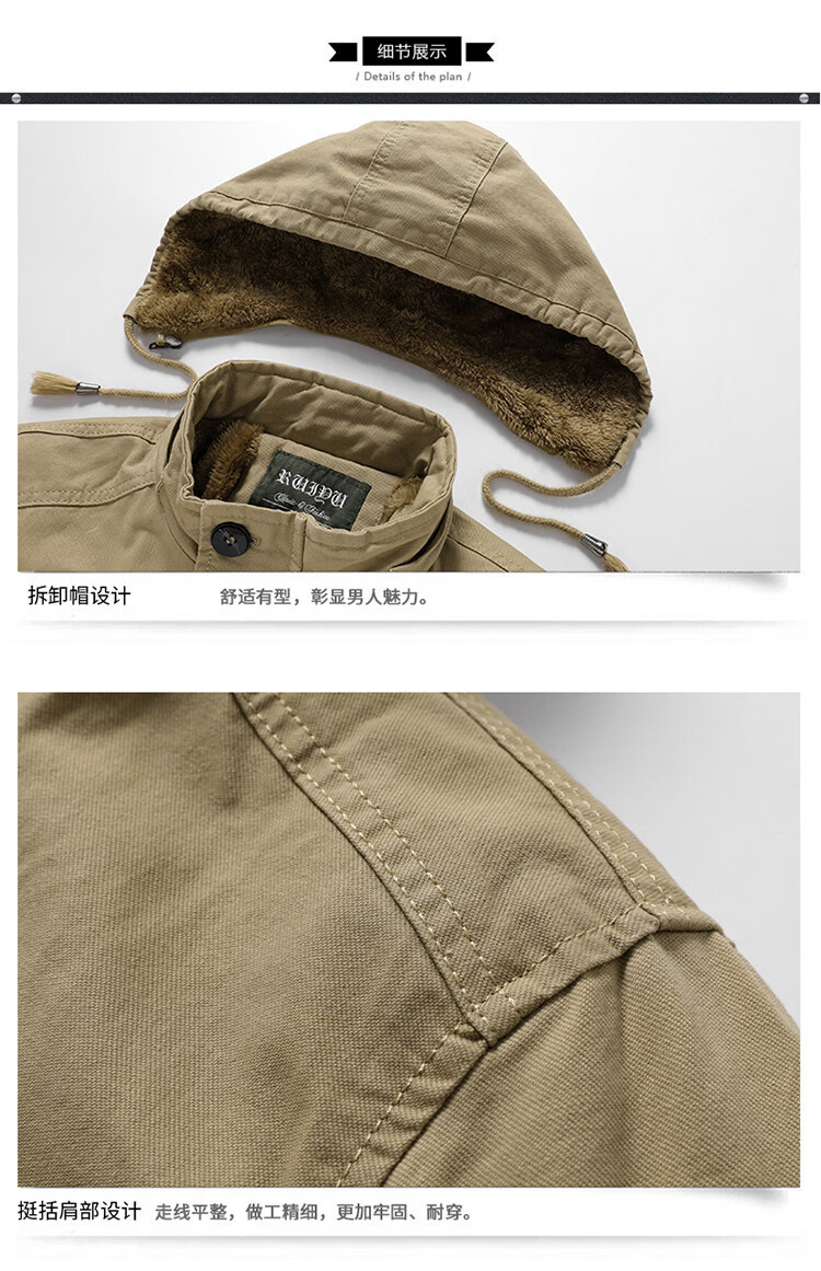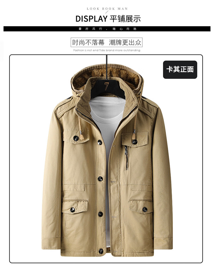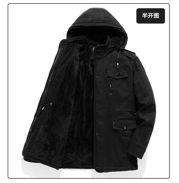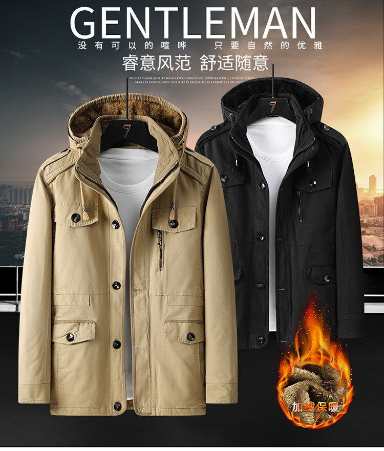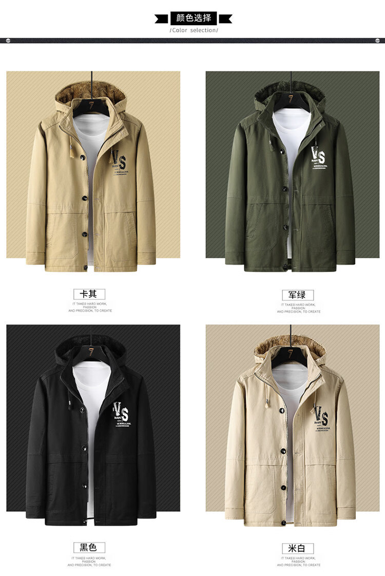 Hengyuanxiang thickened jacket men's velvet cotton autumn and winter new cotton jacket middle-aged and elderly loose large size casual mid-length top 8808 military green plus velvet 2XL suitable for weights under 155