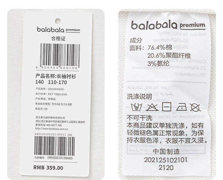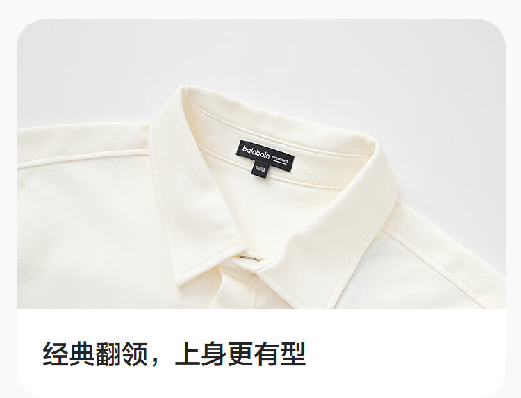 BALABALA children's clothing children's long-sleeved shirt boys' spring clothing medium and large children's tops embroidered exquisite solid color versatile white tone 00311 150