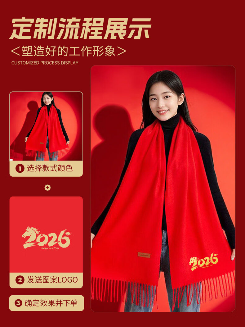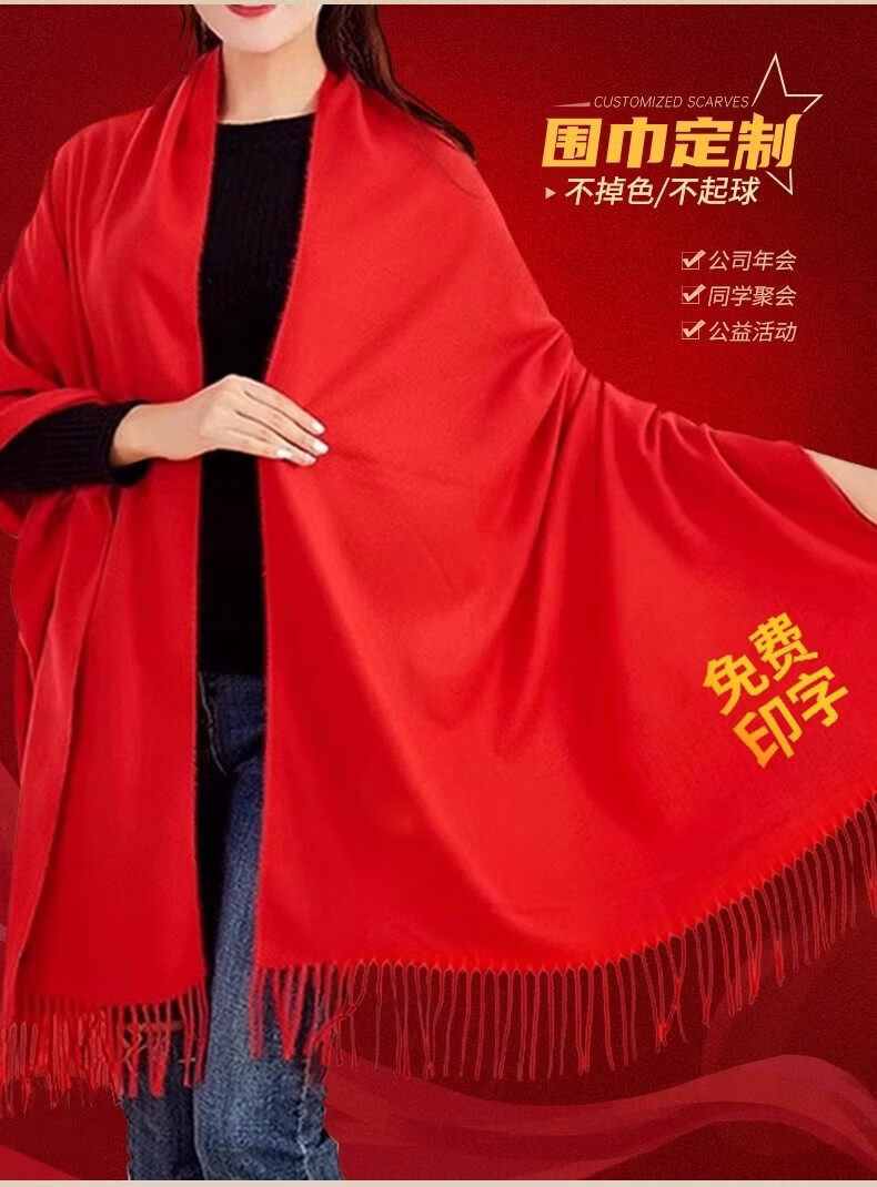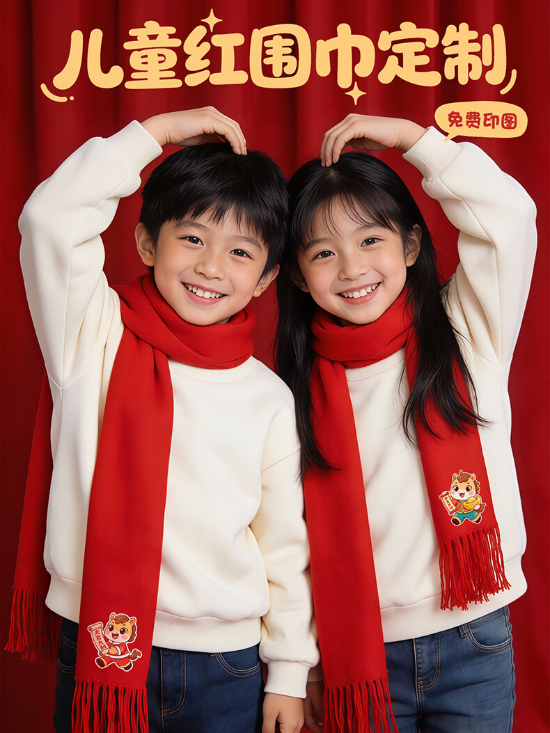 Wei Caidi Children's Red Scarf Customized Logo New Year Embroidery Primary School Kindergarten New Year's Day Performance Performance Horse Year Scarf Male Thickened Small Twill-Red Scarf (Children's Style)