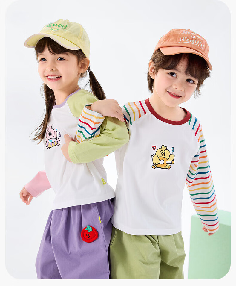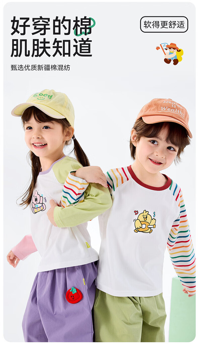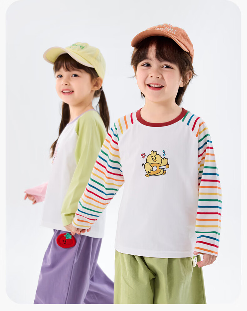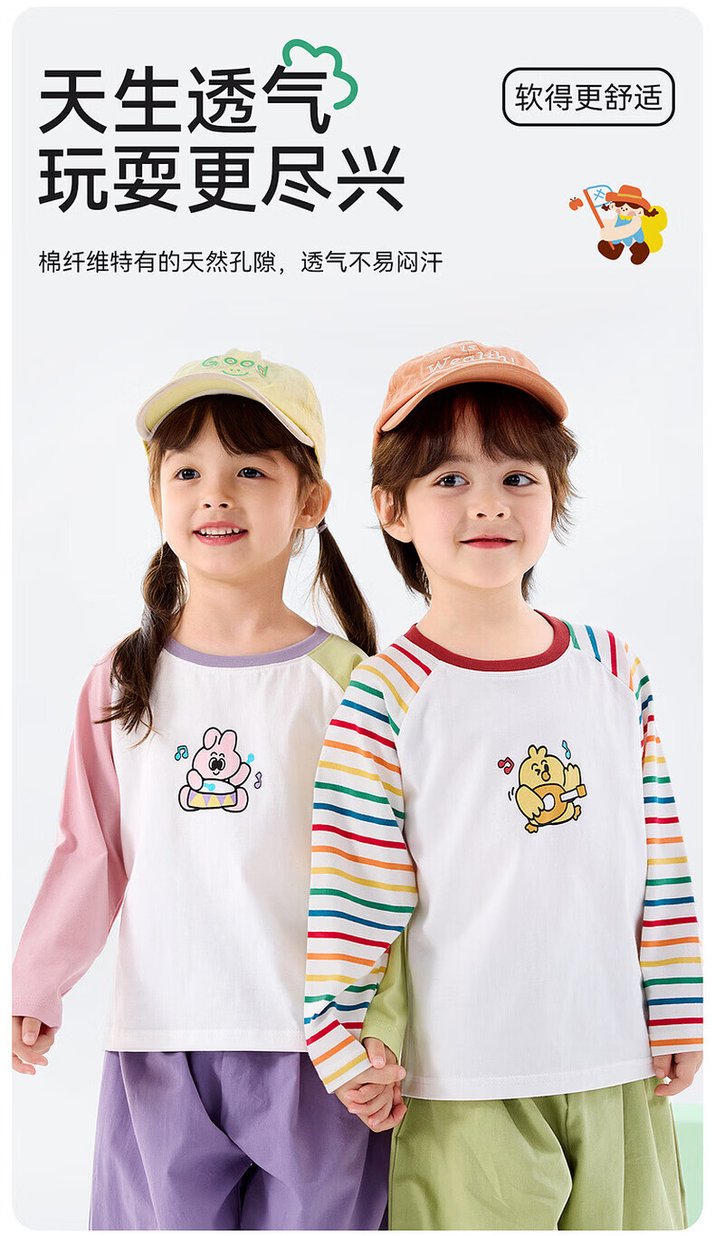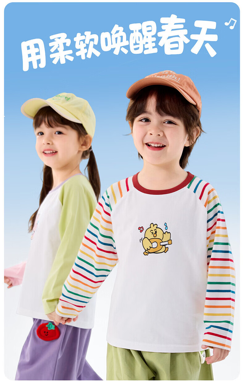 Dudujia 7A Antibacterial Girls T-shirt Spring Clothing Girls Long Sleeve Top Raglan Sleeve Spring Bottoming Shirt Striped Children's Clothing Cloud Gray 110
