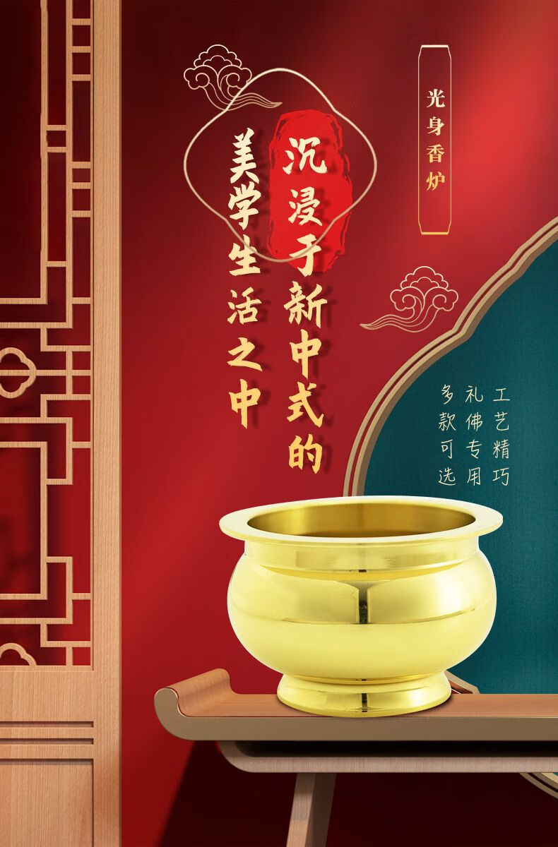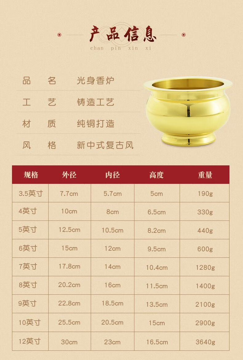 Brass incense burner manufacturer direct wholesale 8-inch brass model (gold) (18 pieces per box)