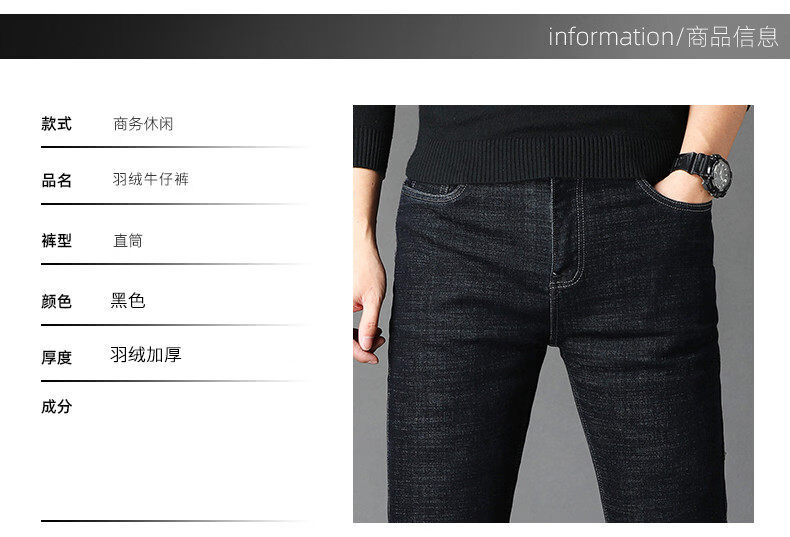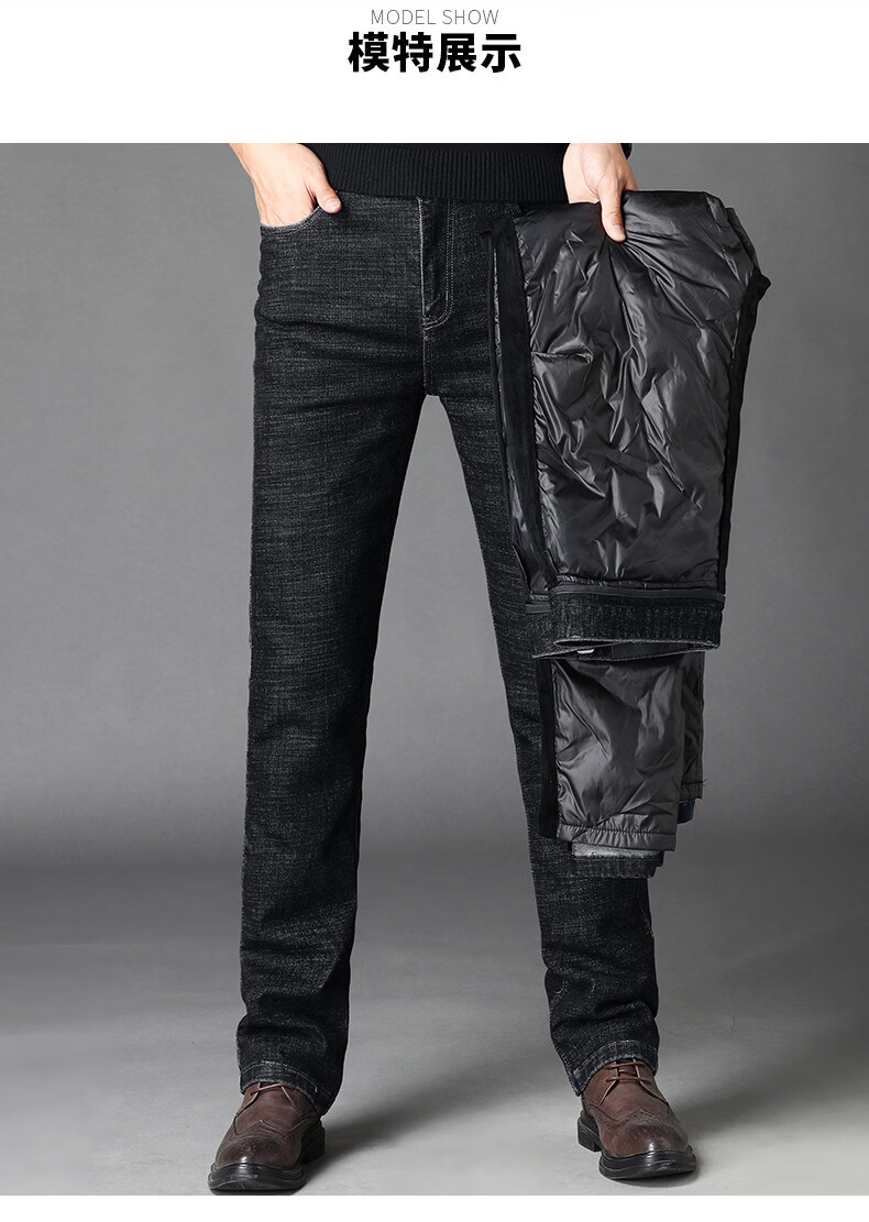 Hengyuanxiang casual down pants men's winter men's jeans duck down liner removable warm long pants 913 black 36 2 feet 9