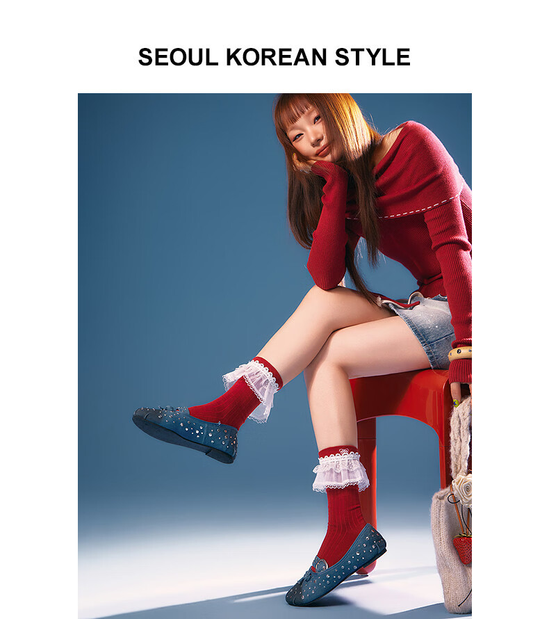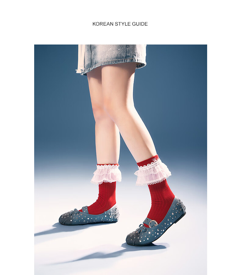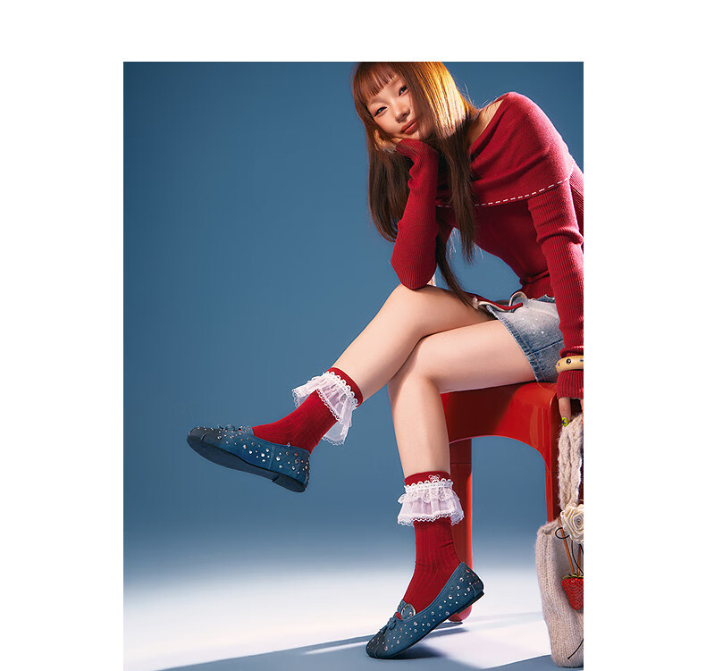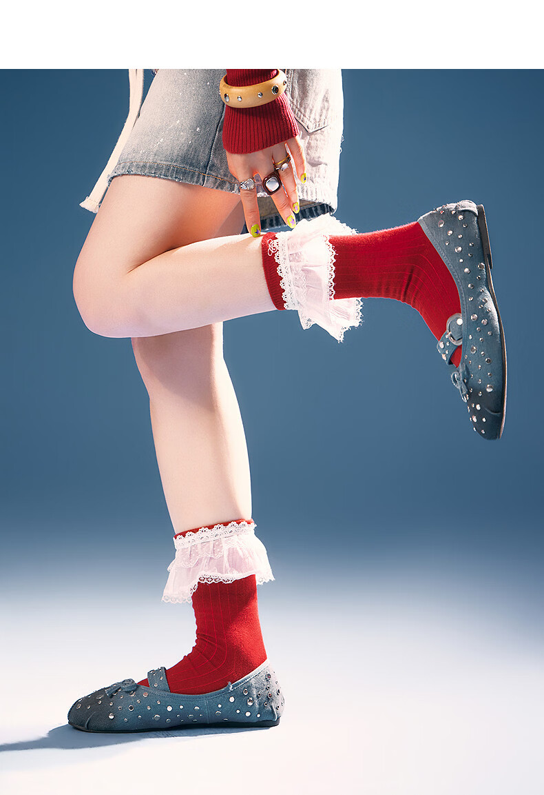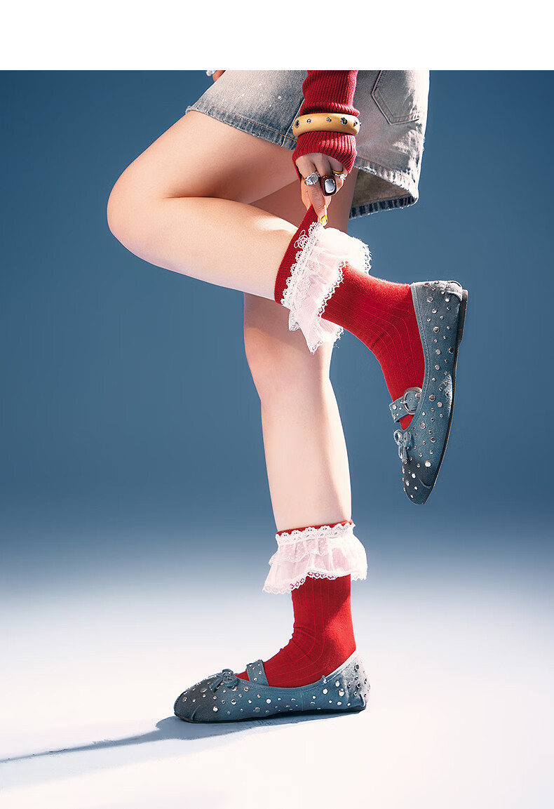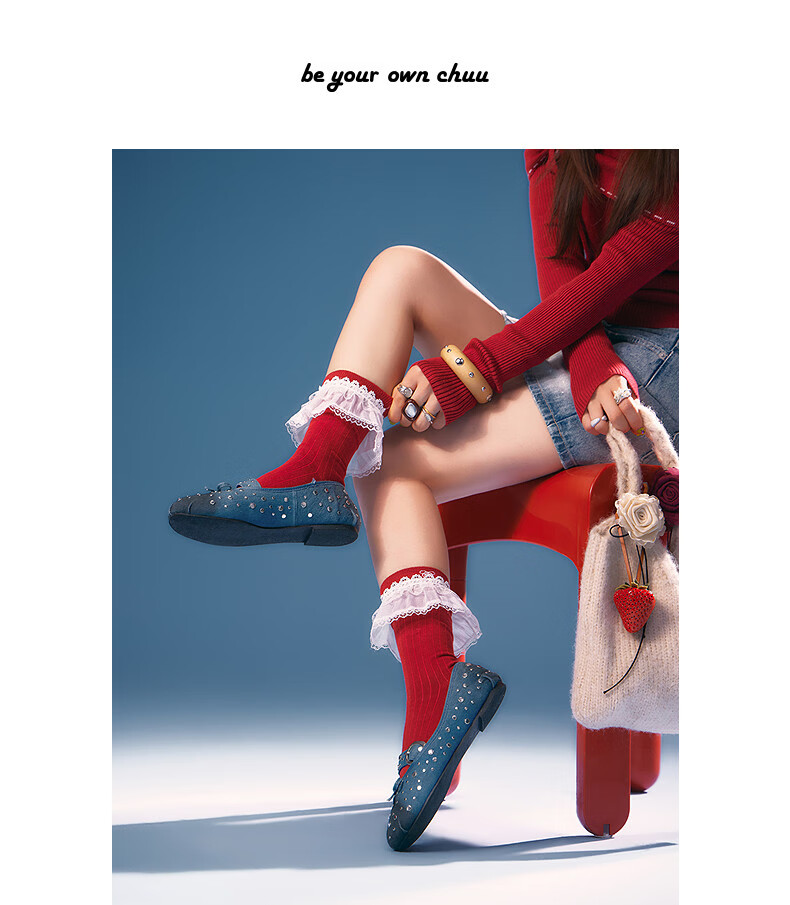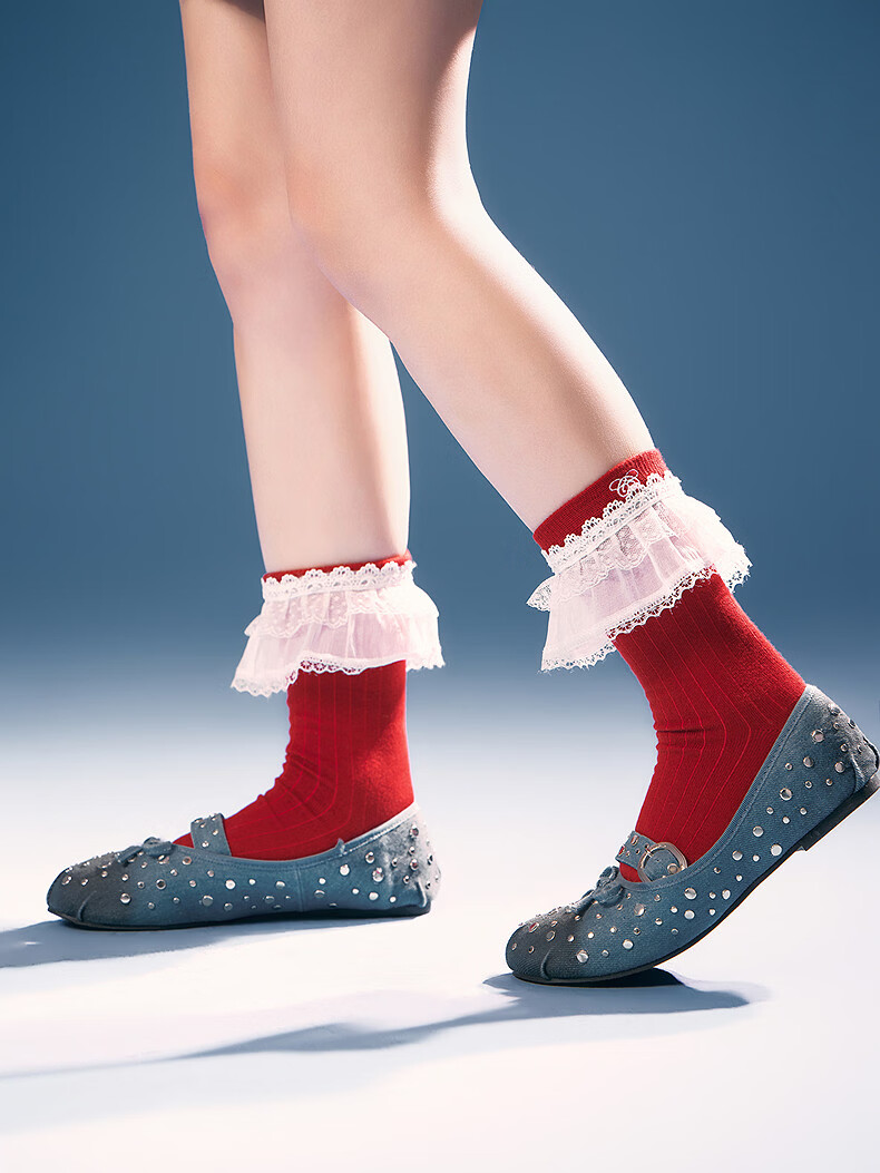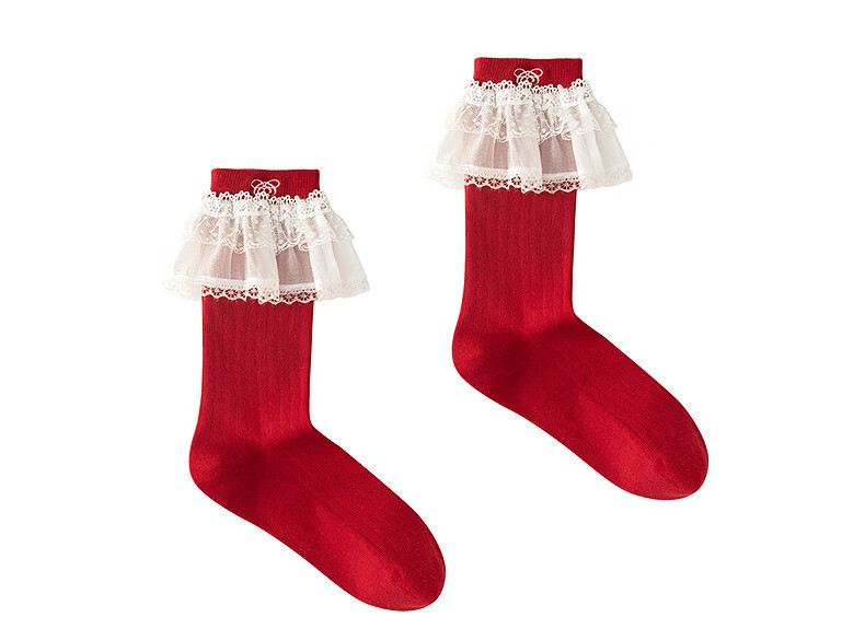 CHUU Lace Mid-calf Socks Women's 2026 Spring New Angora Red Letter Embroidered Knitted Socks Retro Red