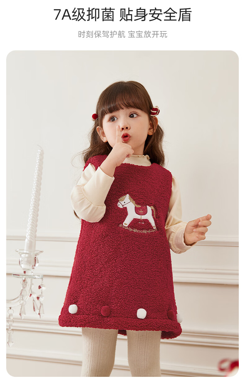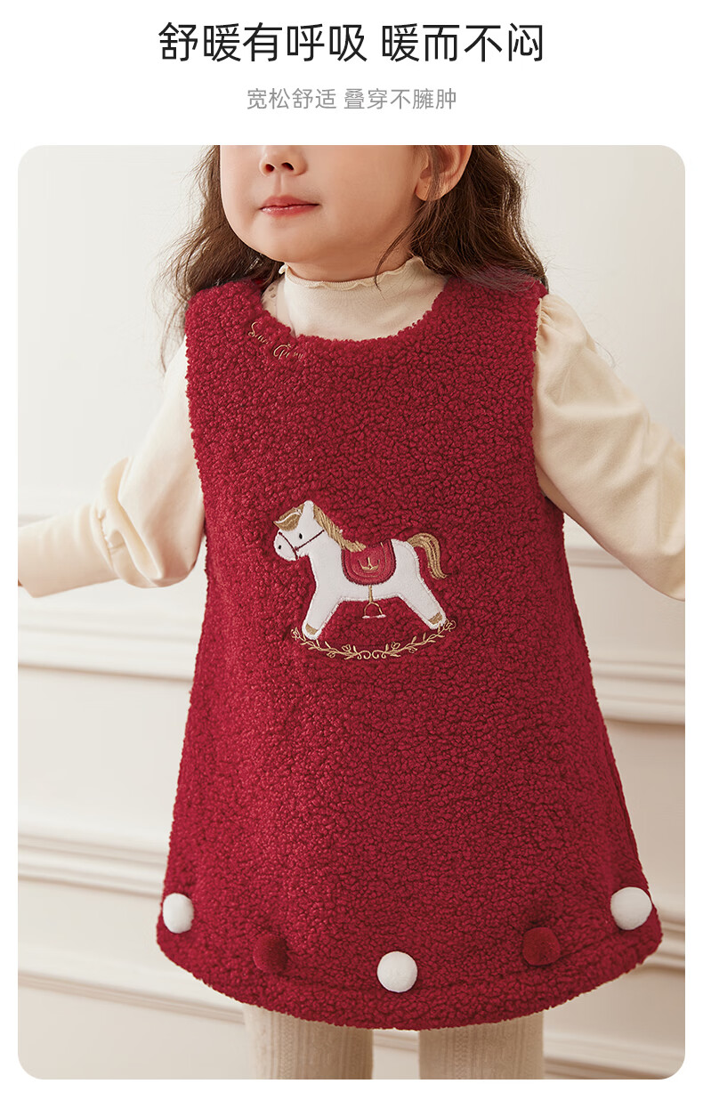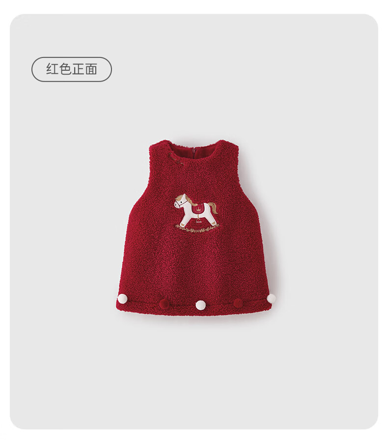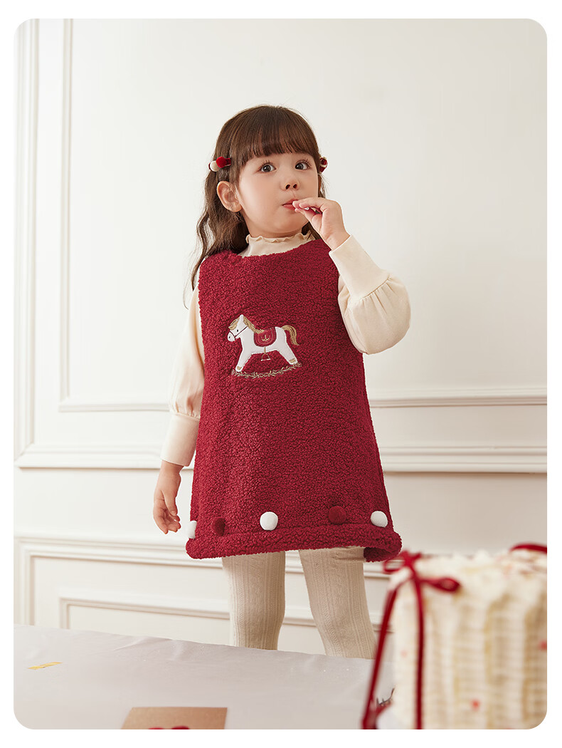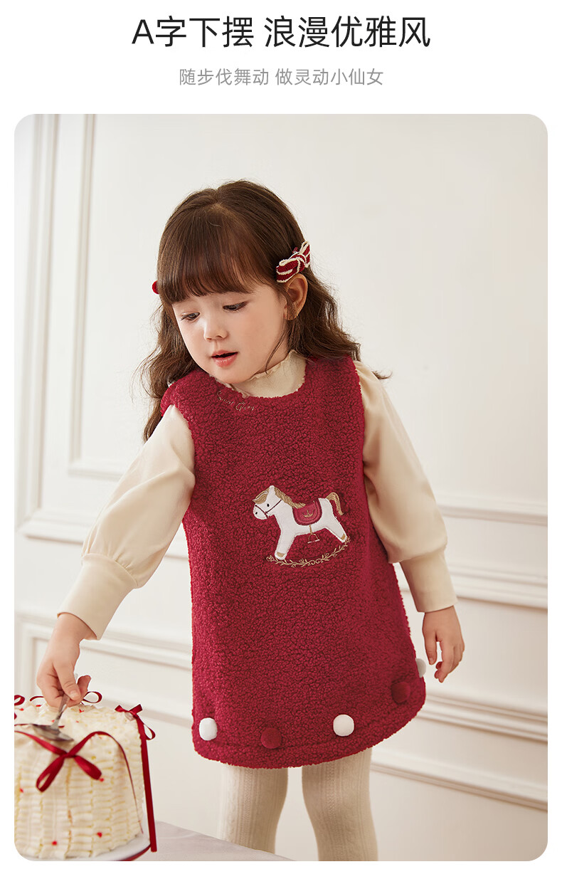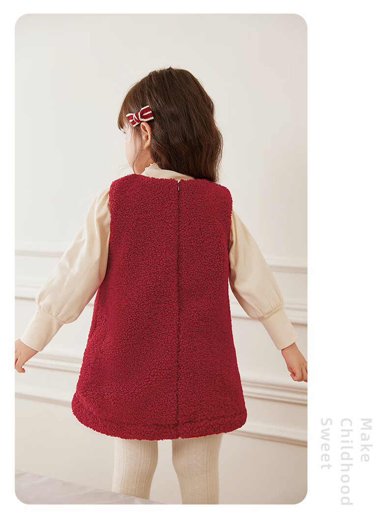 JELLYBABY 2026 spring and winter new products girls vest skirt children's dress winter children's velvet skirt one-year-old dress baby red 100
