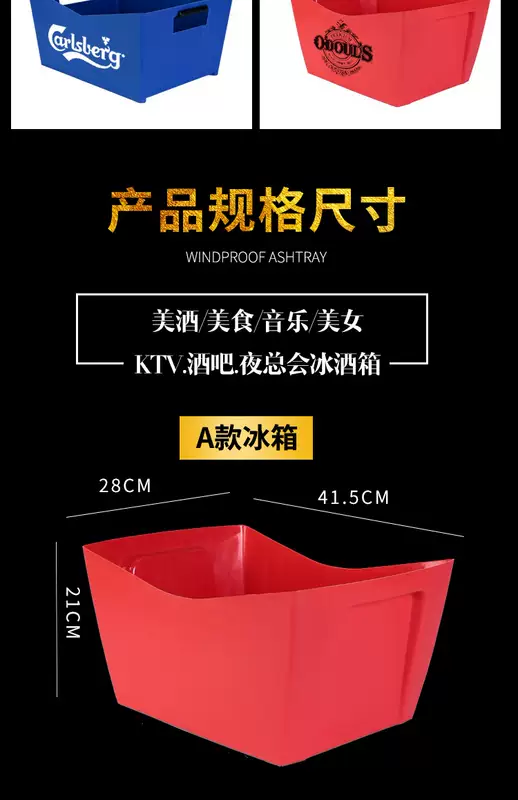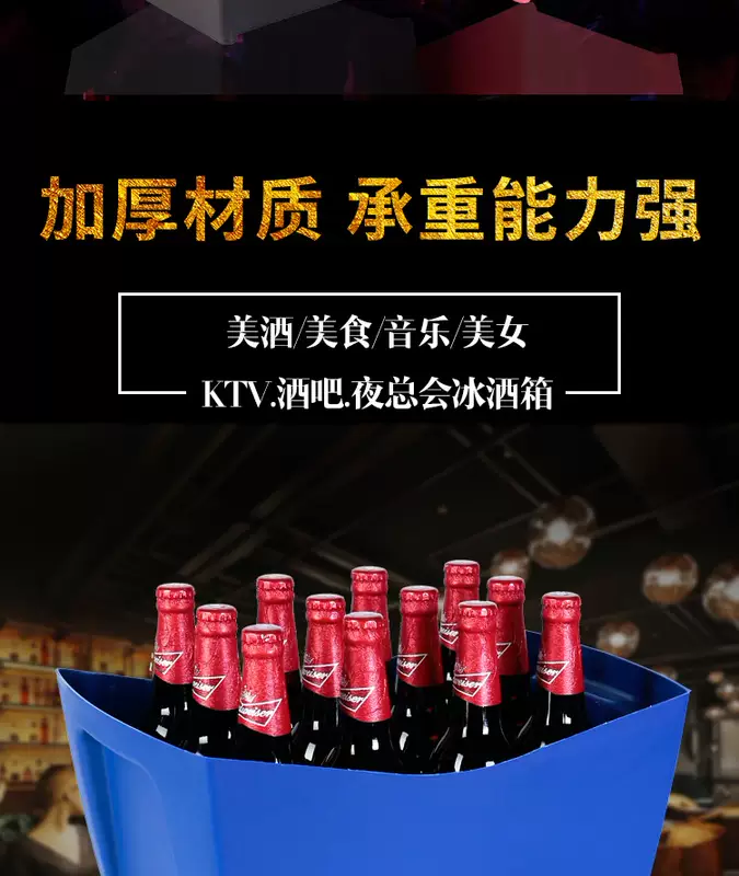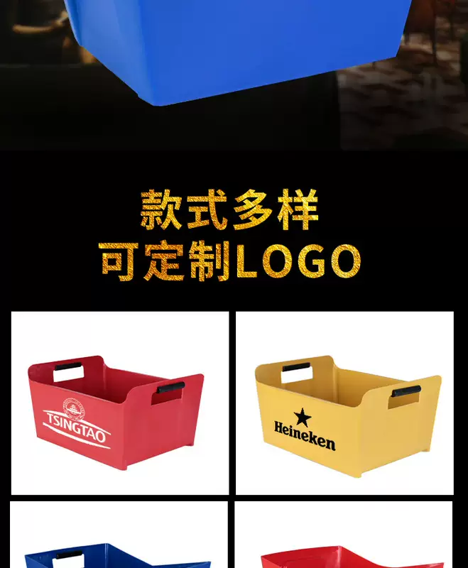 Yusenyite thickened plastic rectangular ice bucket KTV wine frame beer basket beer frame bar wine box beer barrel LOGO red 1L red
