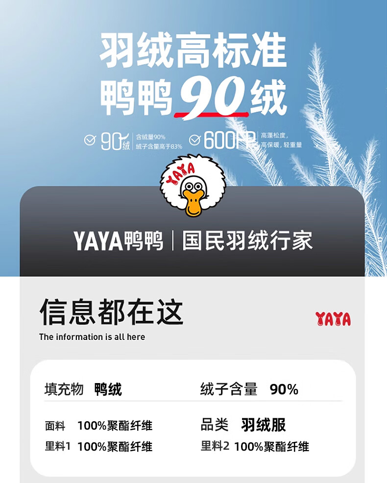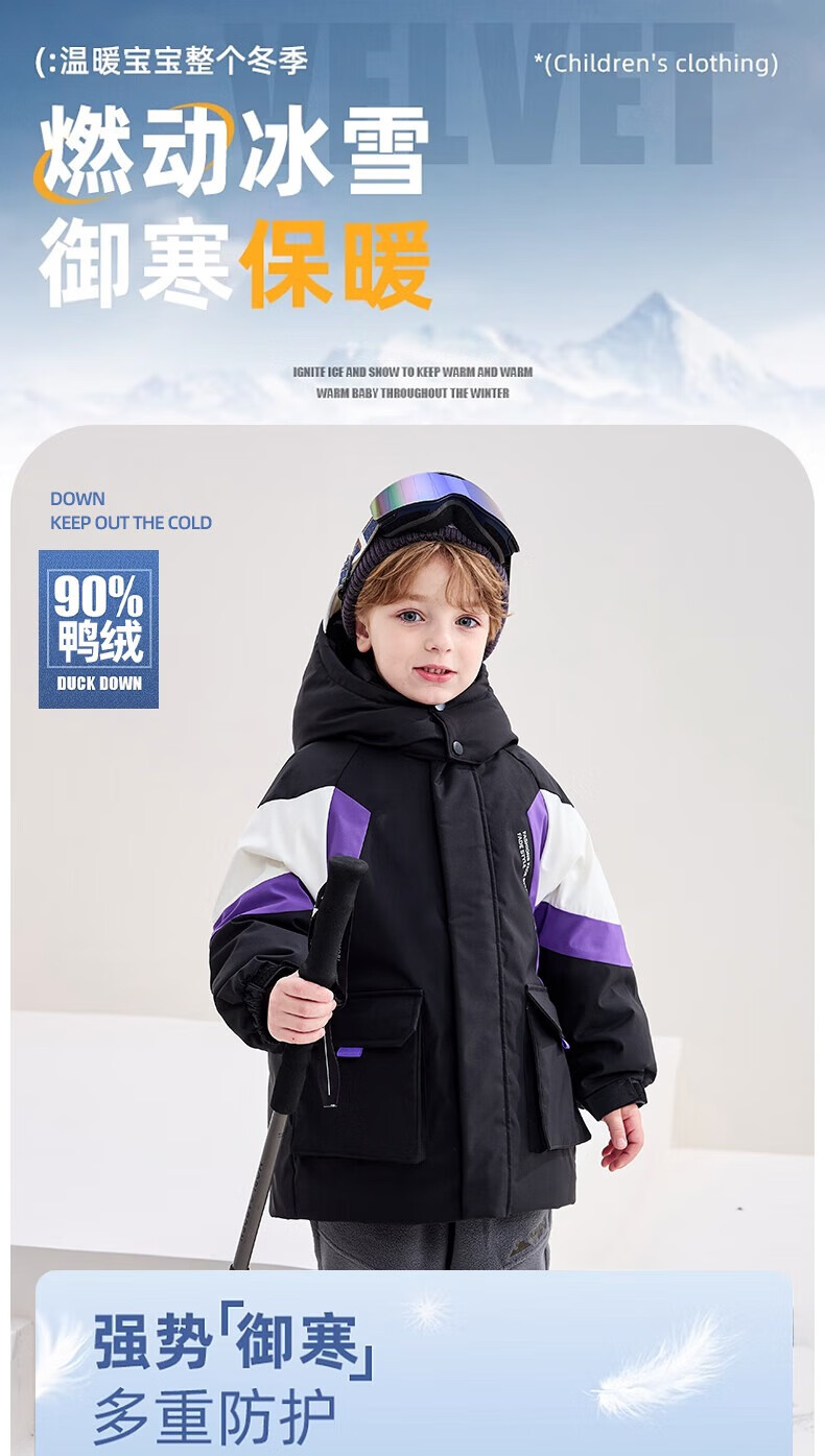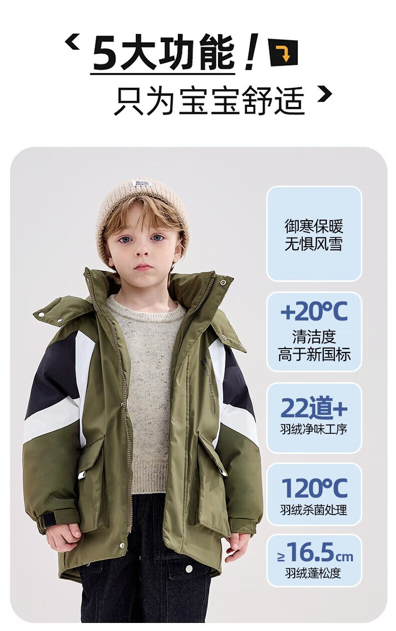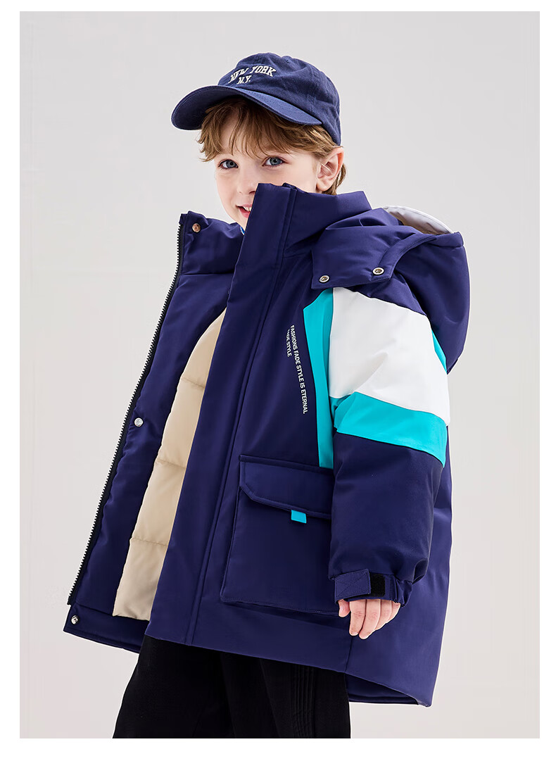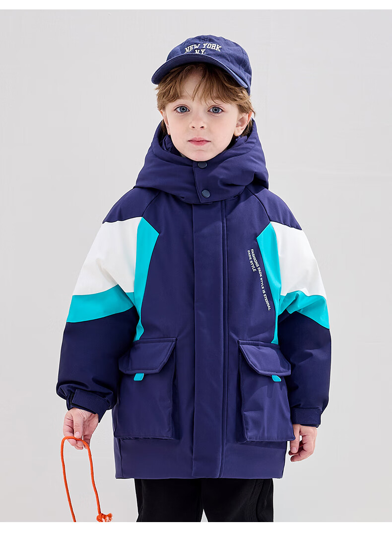 YaYa Children's Down Jacket Mid-Length Warm Jacket Navy Blue 110