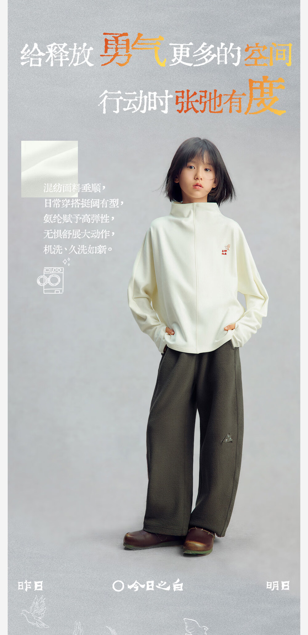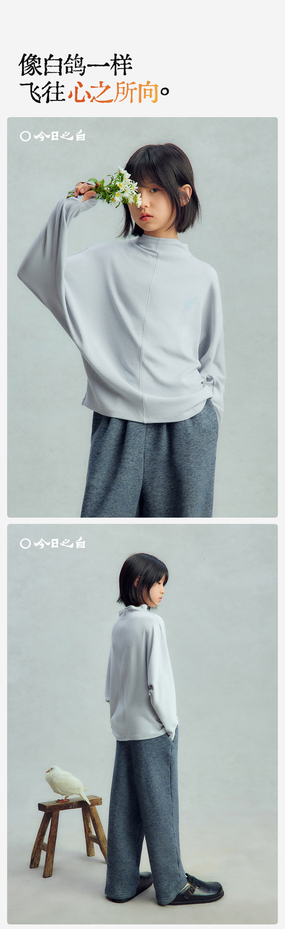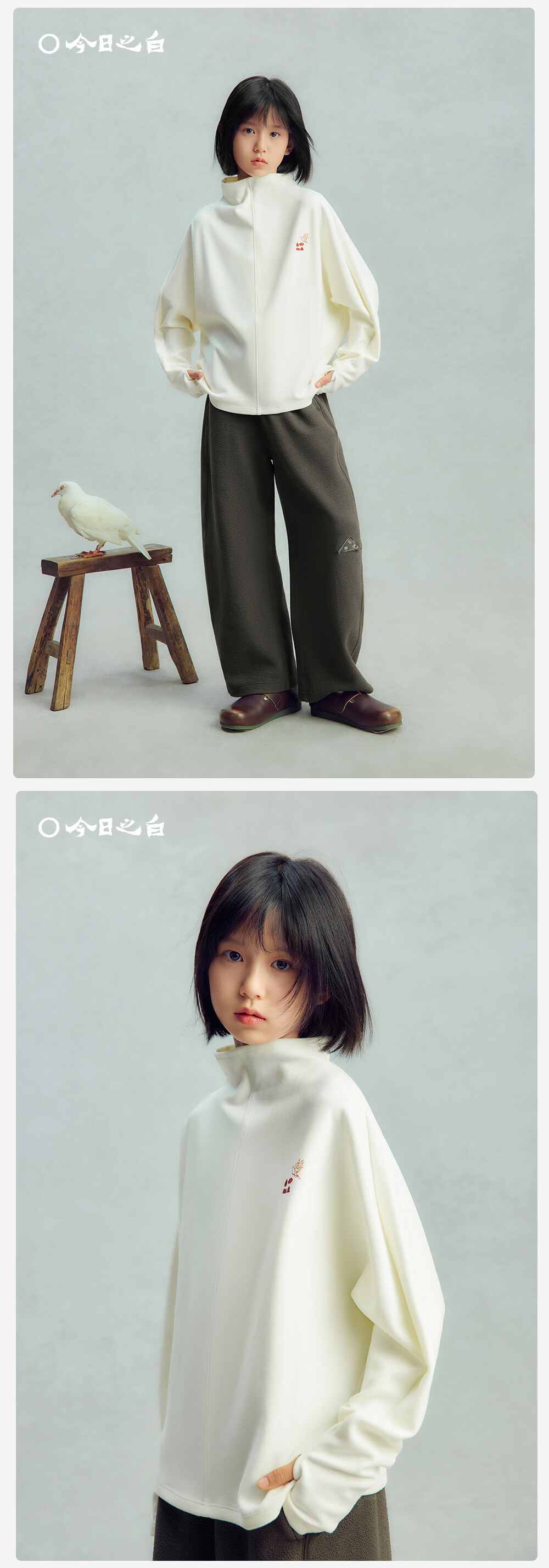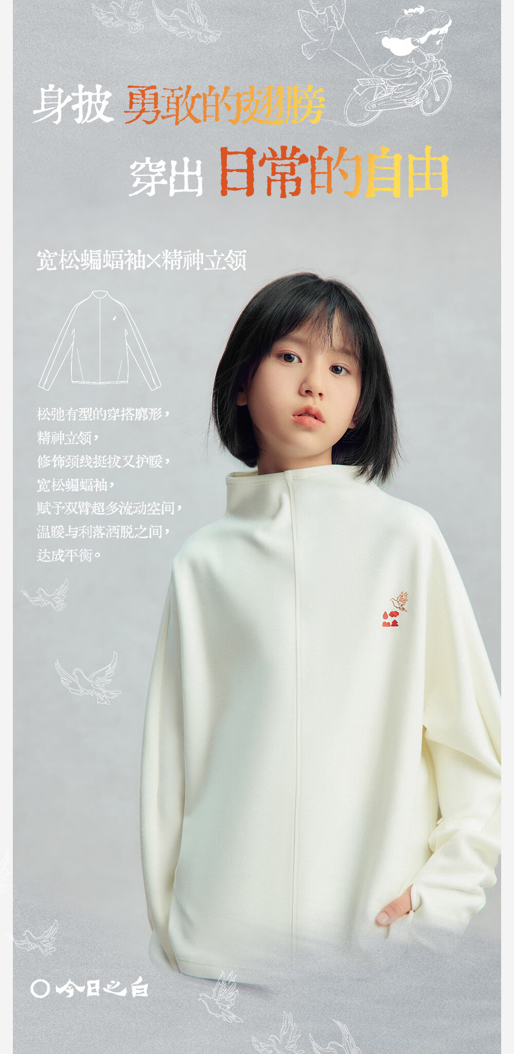 Lin Lin Tang Today's White No Fear of Cold 26 Spring Children's Warm German Velvet Loose Stand Collar Bat Sleeve T-Shirt Hemu Eagle Back One Size 170cm