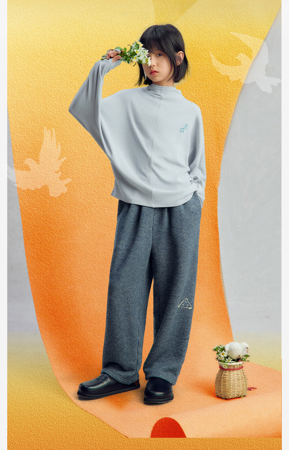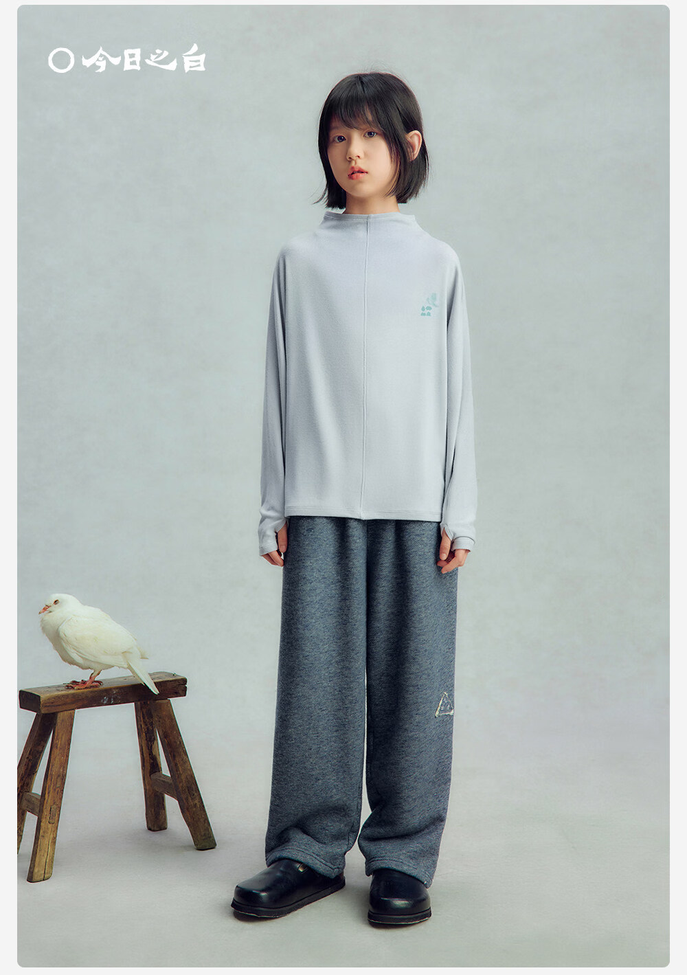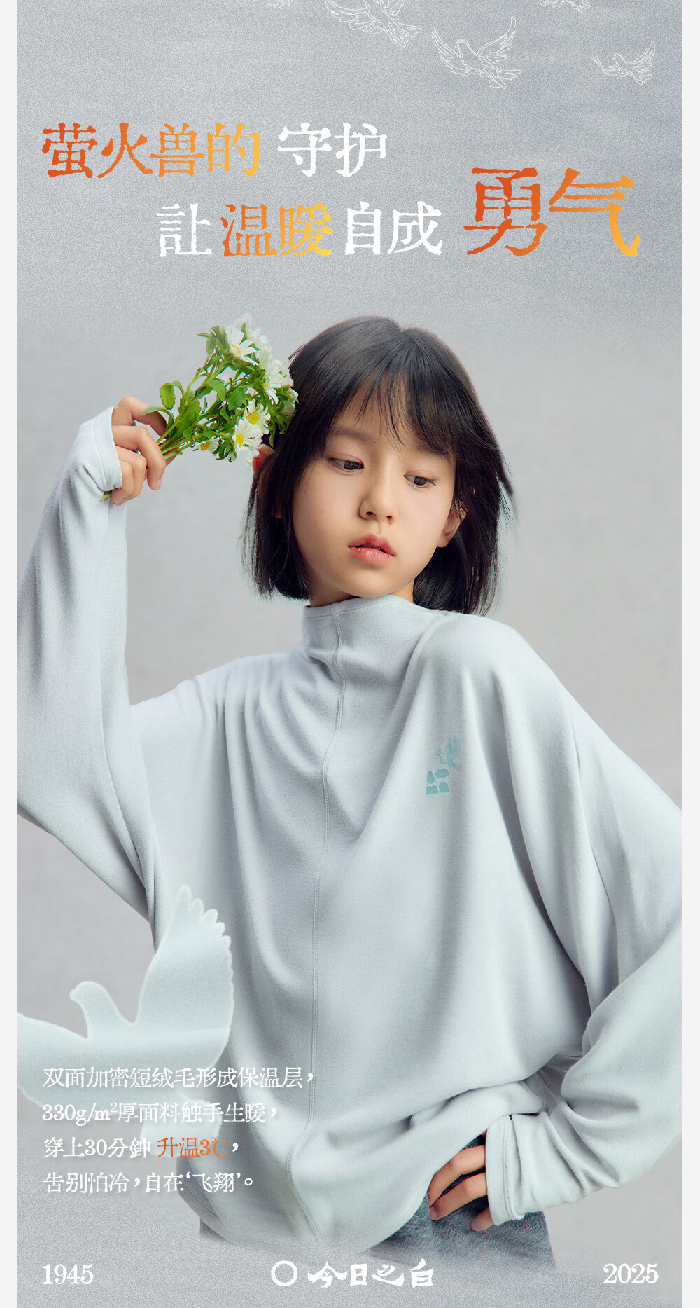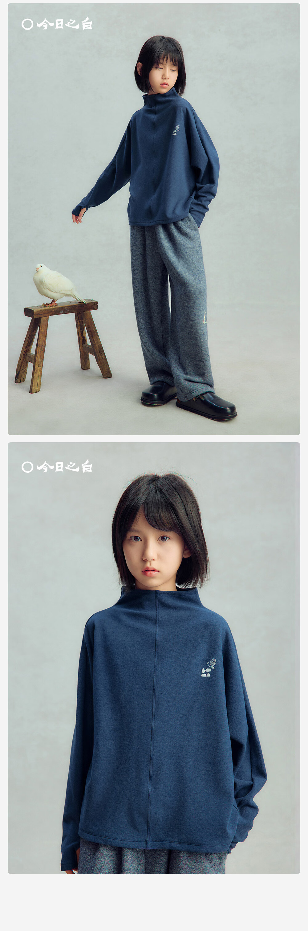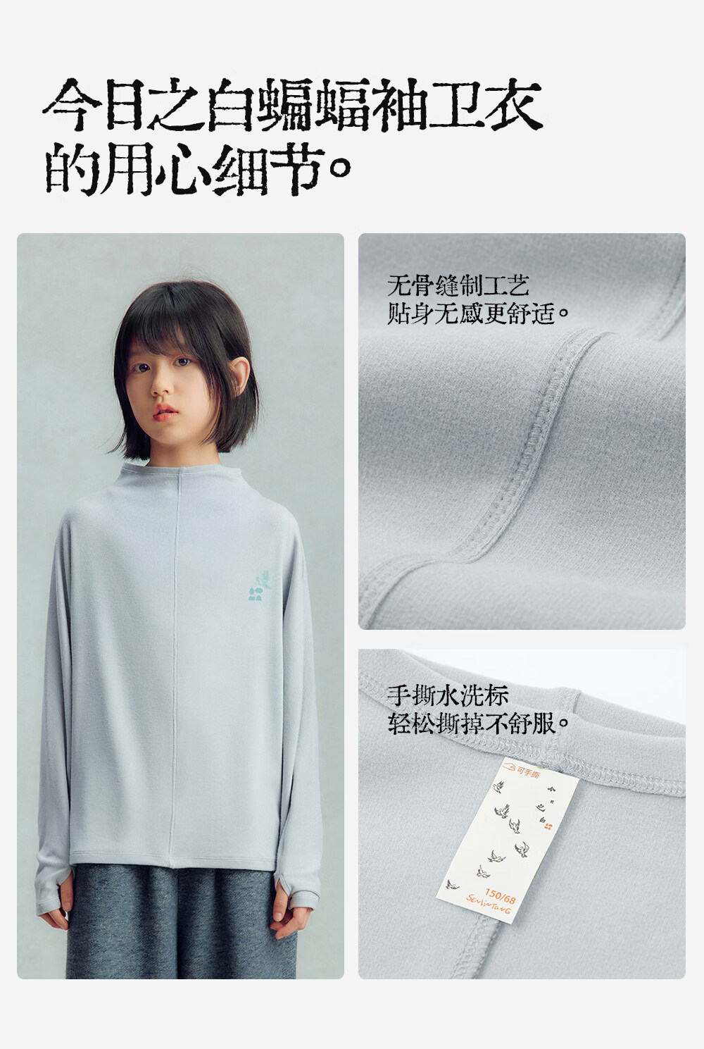 Lin Lin Tang Today's White No Fear of Cold 26 Spring Children's Warm German Velvet Loose Stand Collar Bat Sleeve T-Shirt Hemu Eagle Back One Size 170cm