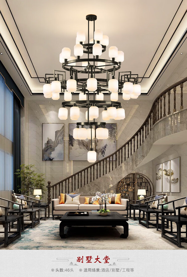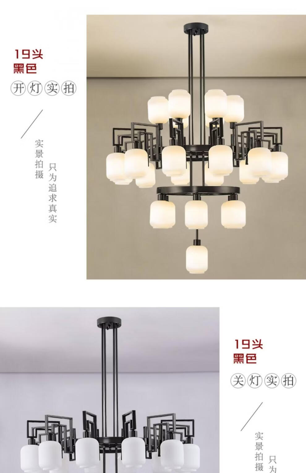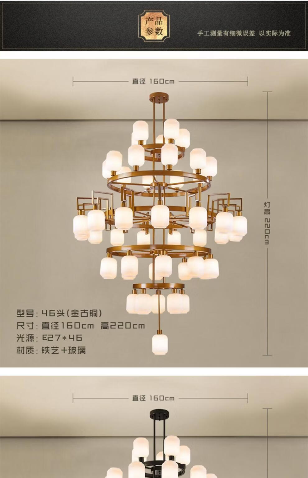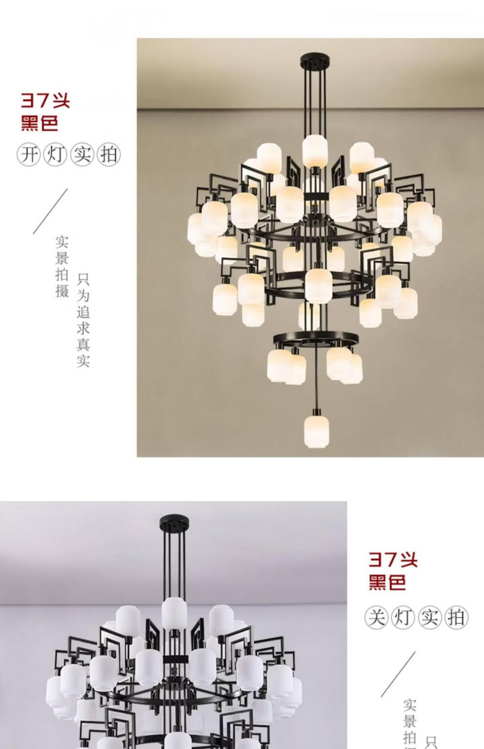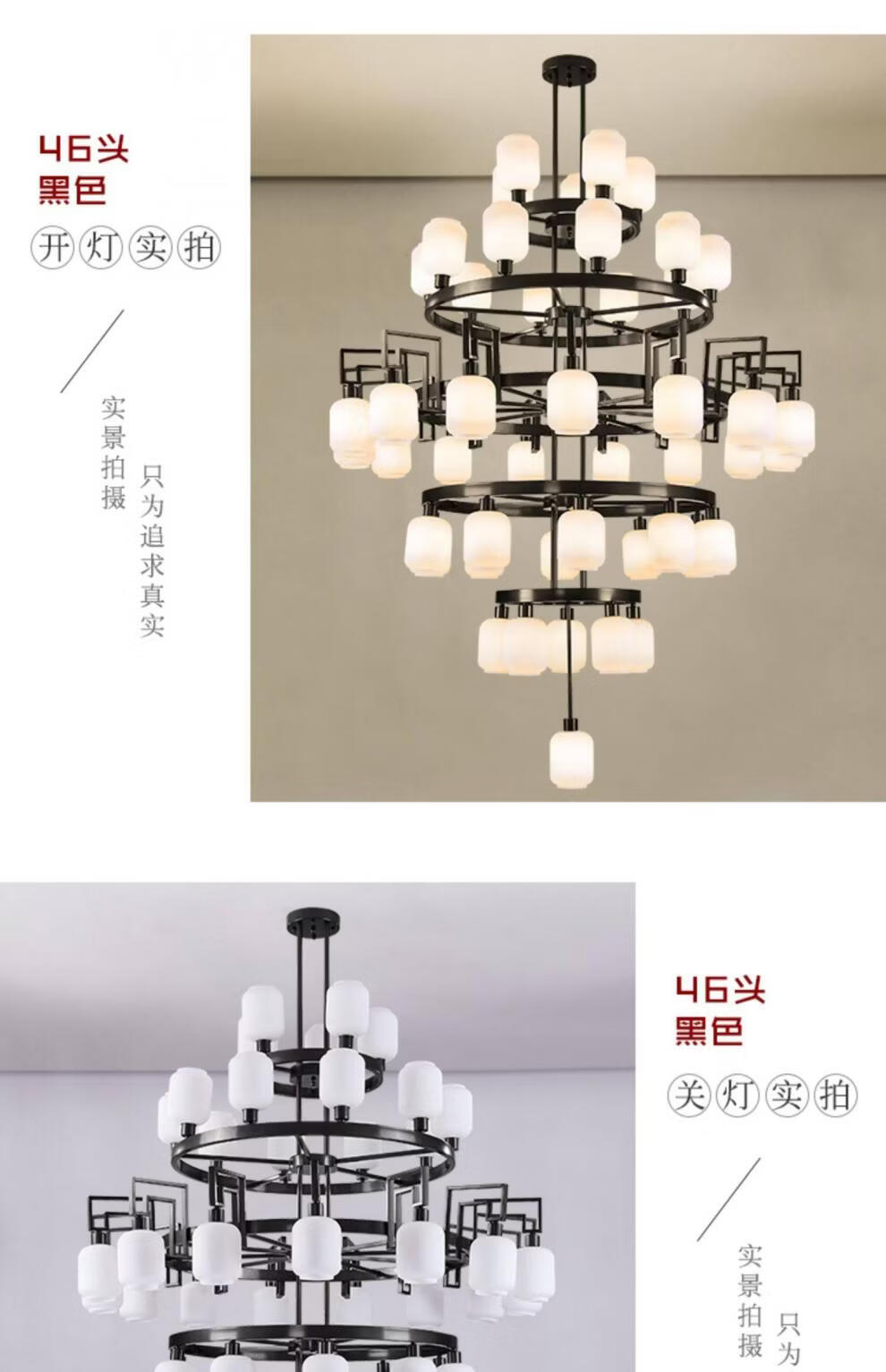 OPPLE New Chinese style large chandelier living room high ceiling hotel box engineering lamp covered building multi-story villa Chinese style lamps black glass lampshade 19 heads (three layers) with three-color light source