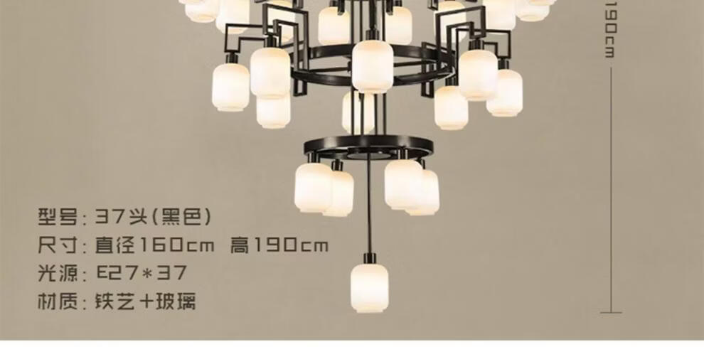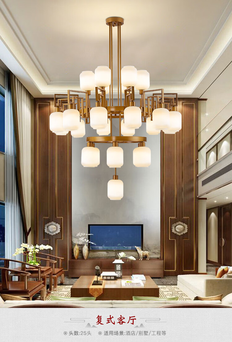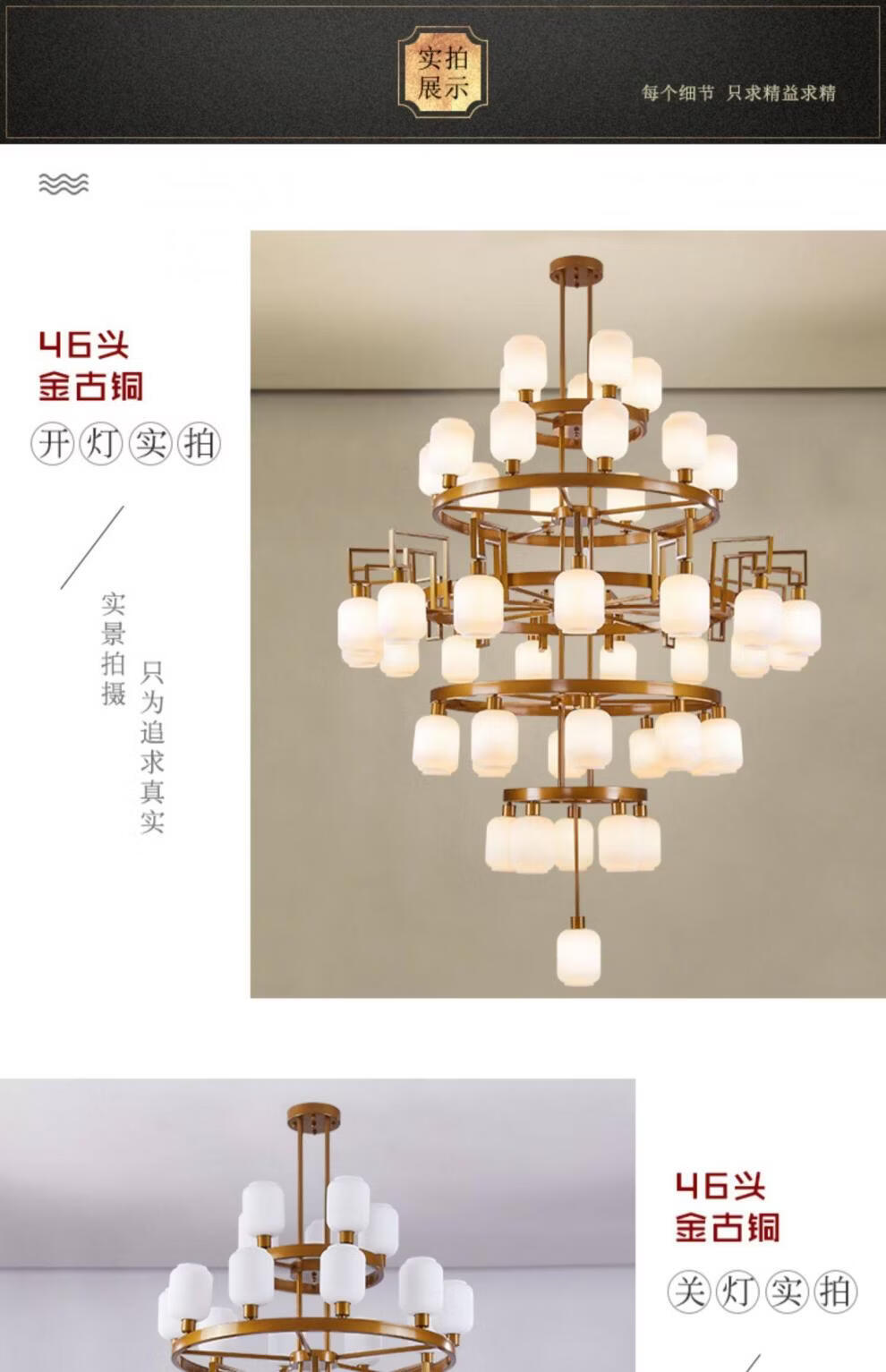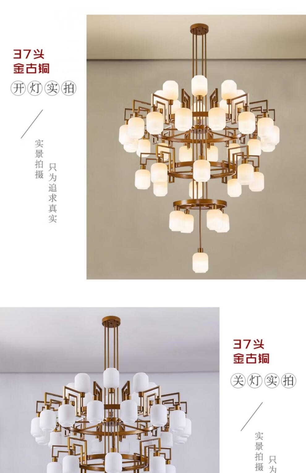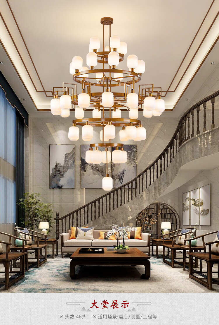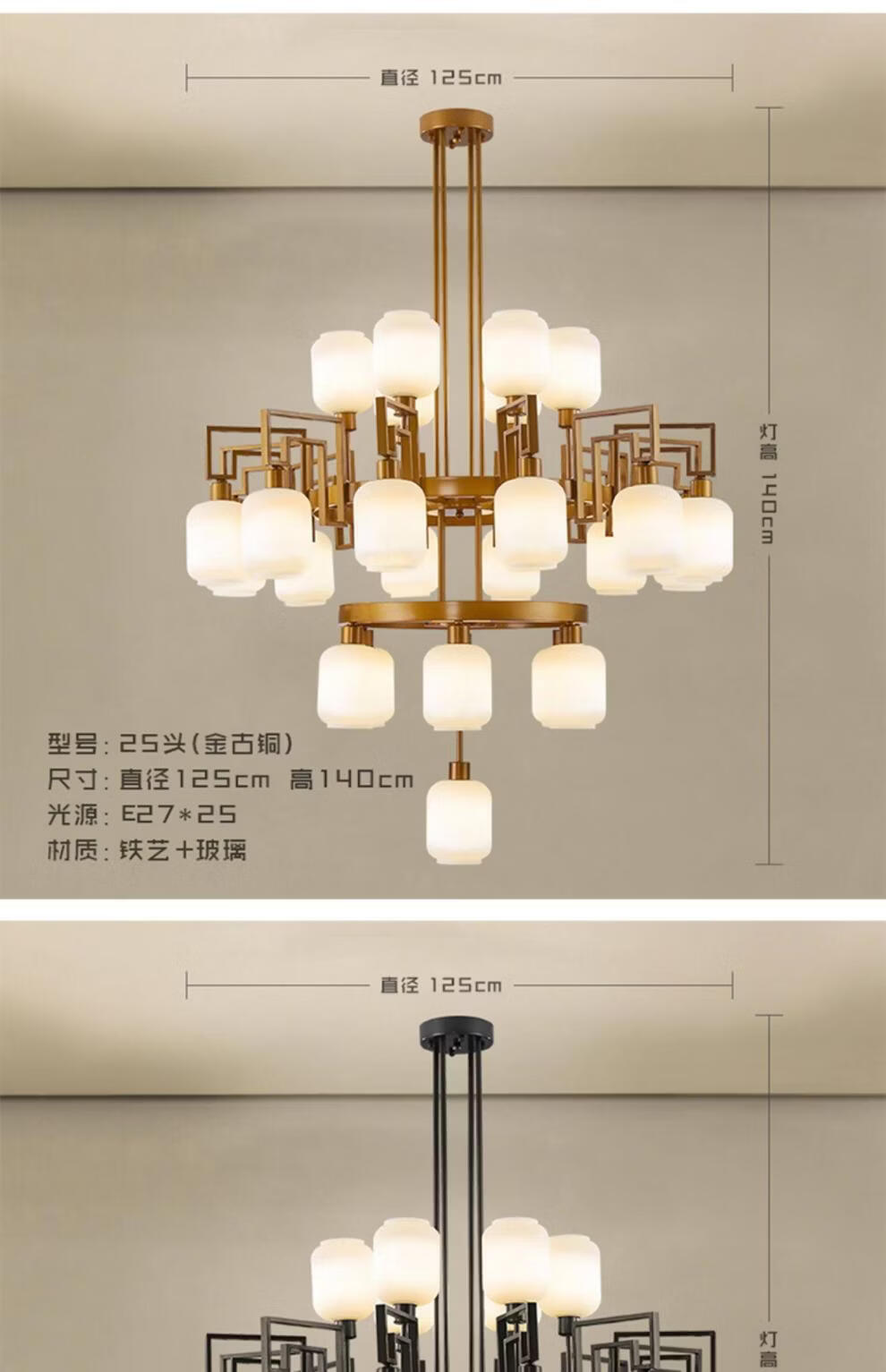 OPPLE New Chinese style large chandelier living room high ceiling hotel box engineering lamp covered building multi-story villa Chinese style lamps black glass lampshade 19 heads (three layers) with three-color light source