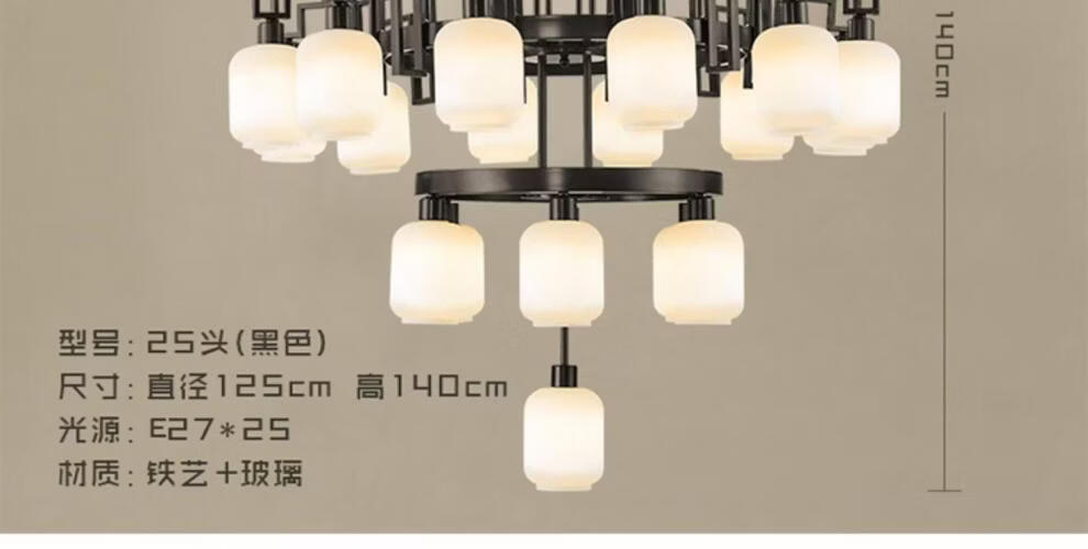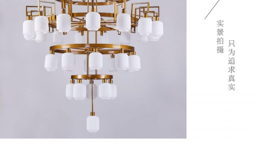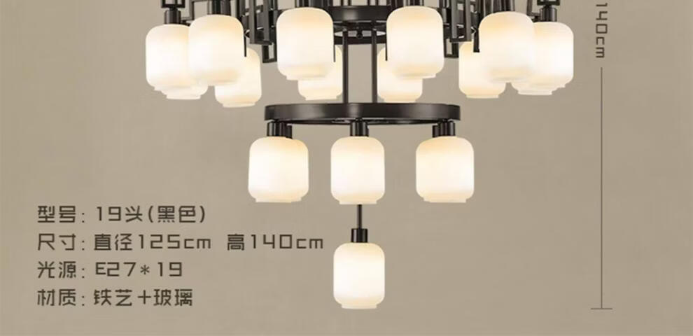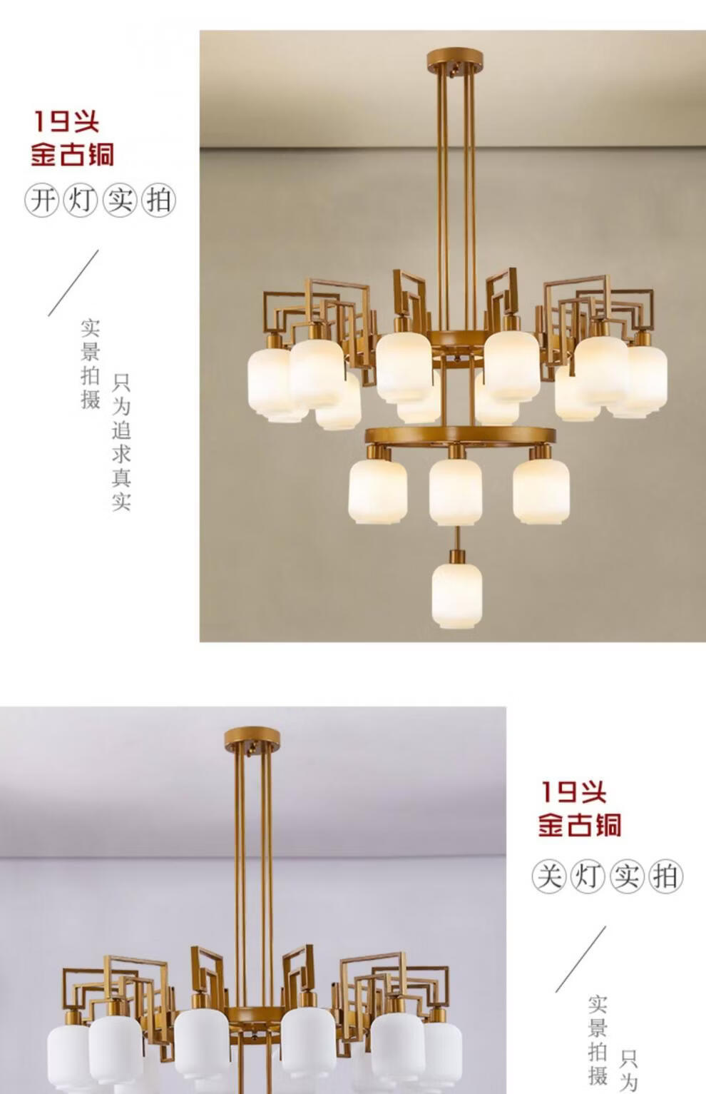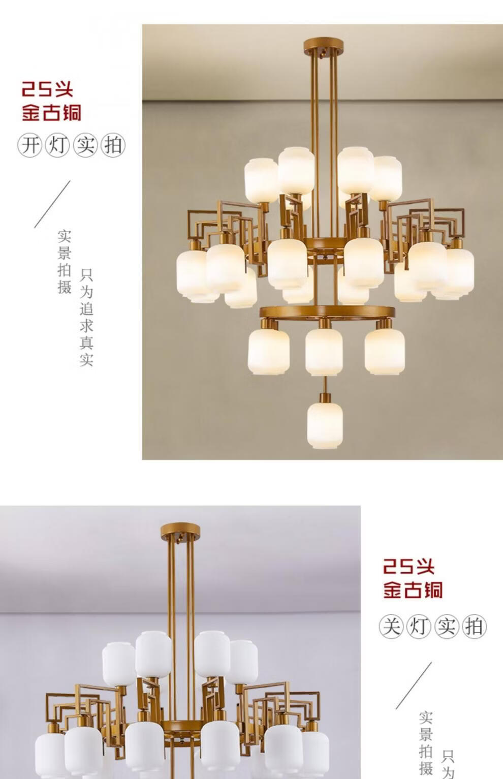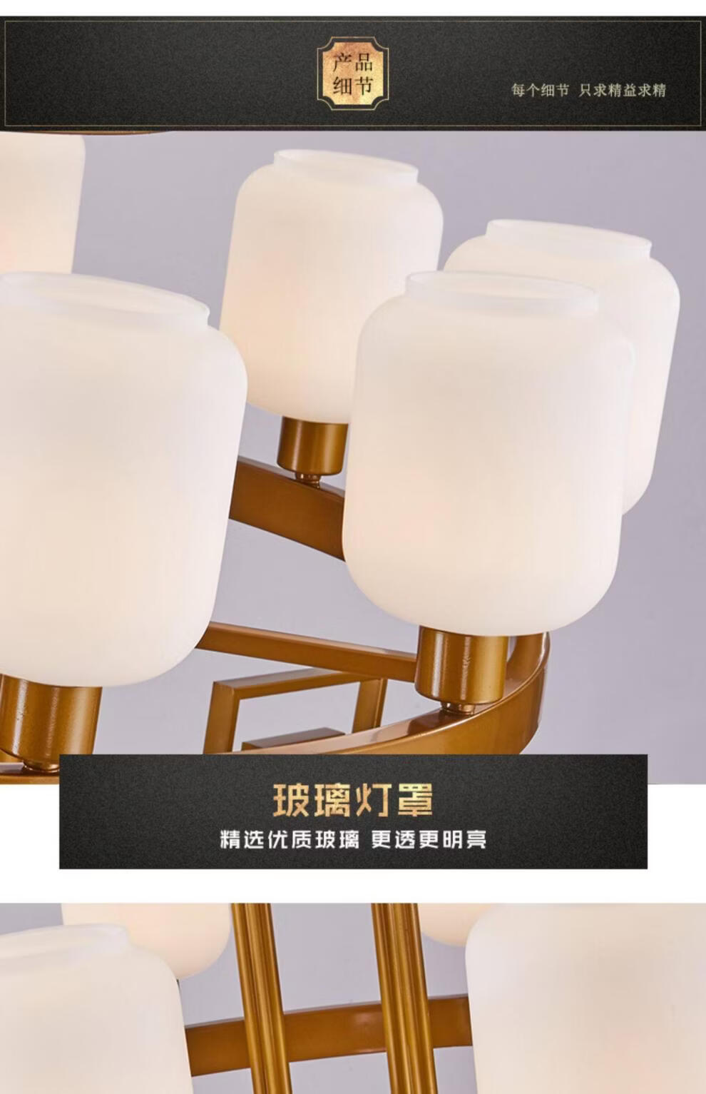 OPPLE New Chinese style large chandelier living room high ceiling hotel box engineering lamp covered building multi-story villa Chinese style lamps black glass lampshade 19 heads (three layers) with three-color light source