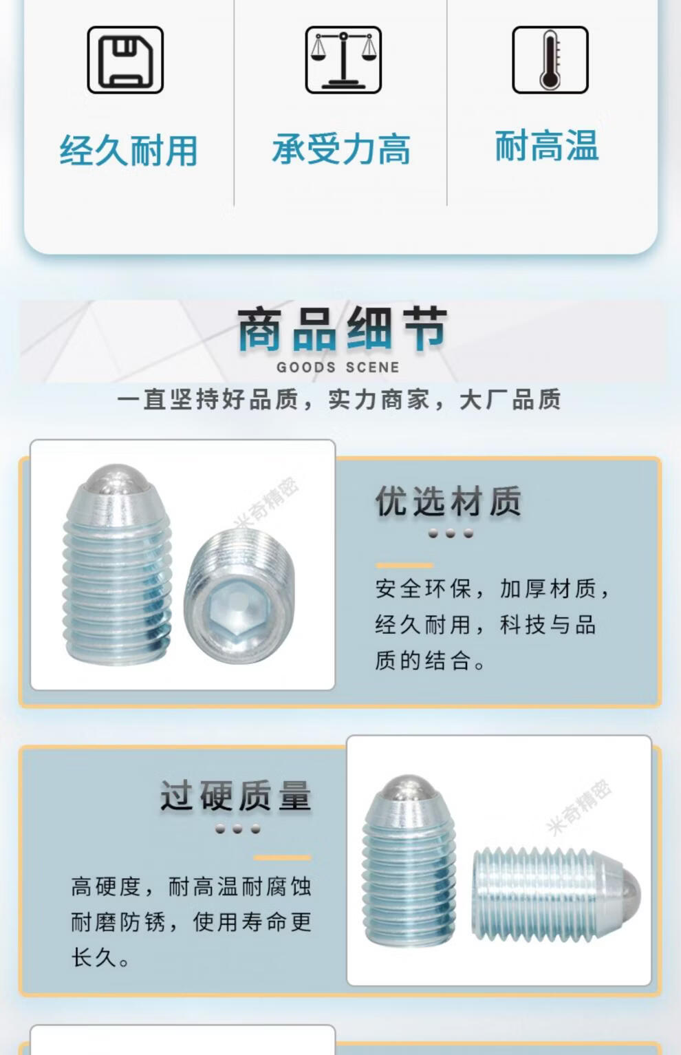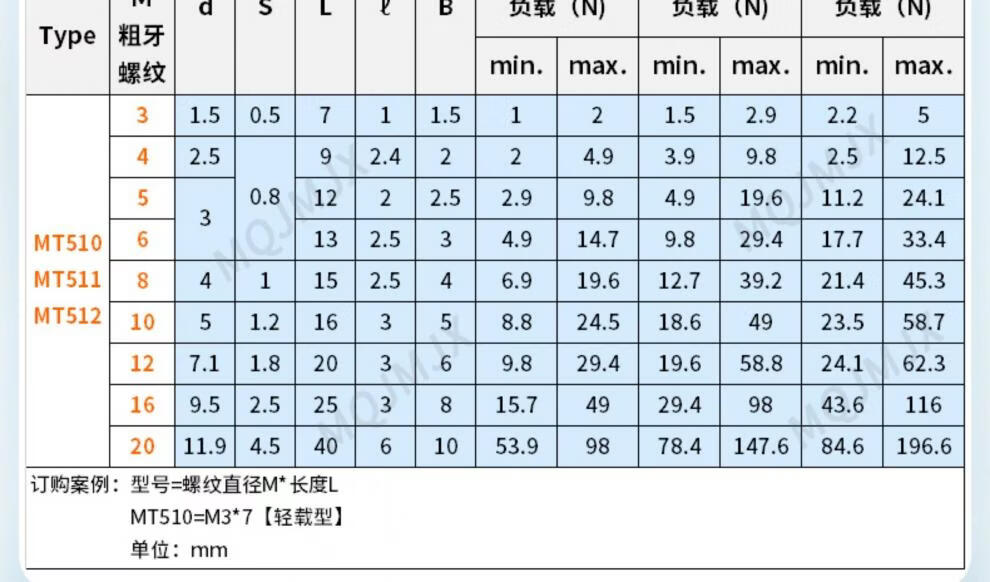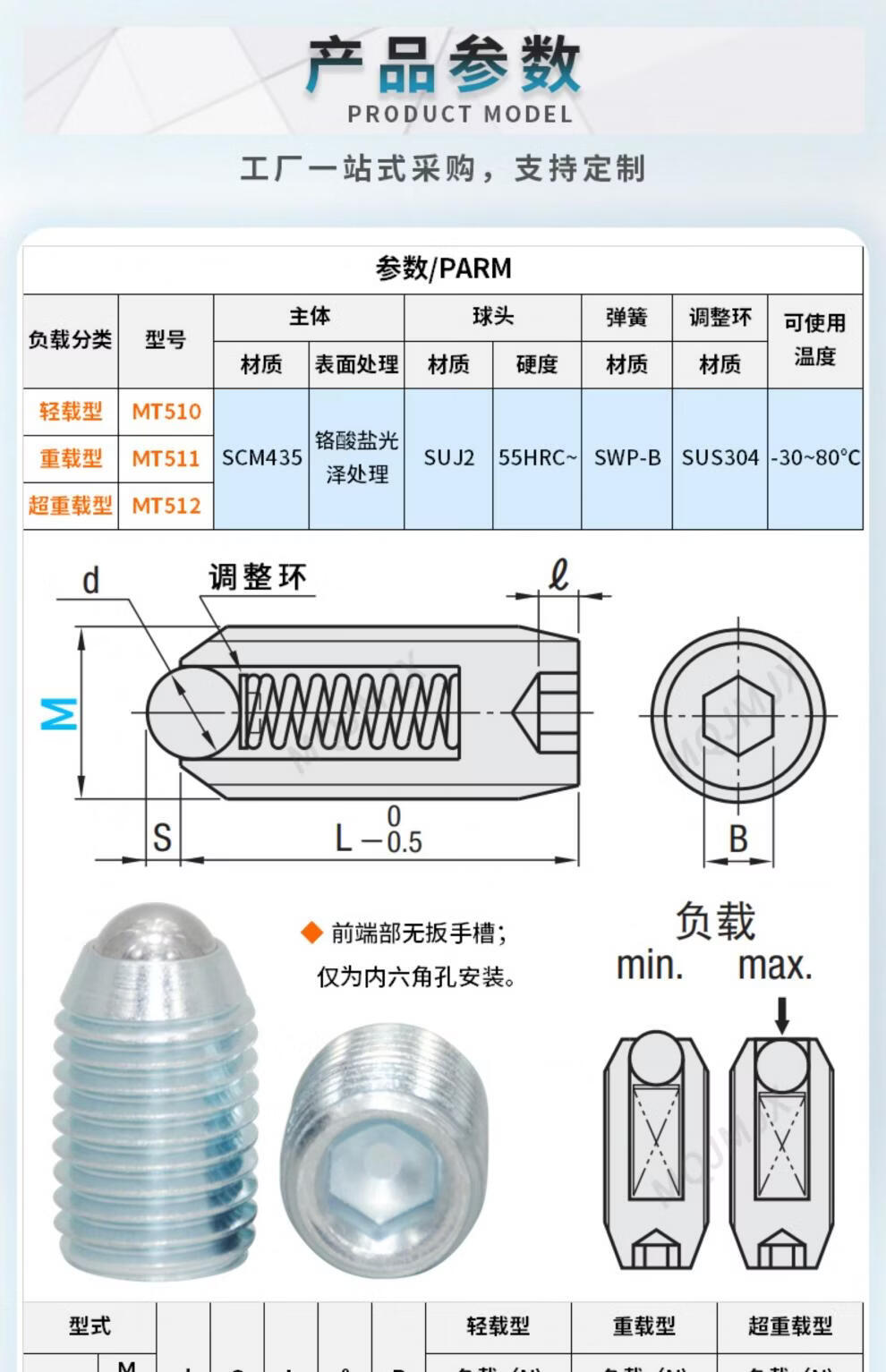 Qiao Bo Lai BPU/BPM/BPQ bearing steel ball head plunger spring positioning glass bead screw light load bolt diameter M4568 MT512=M5*12 super heavy load type