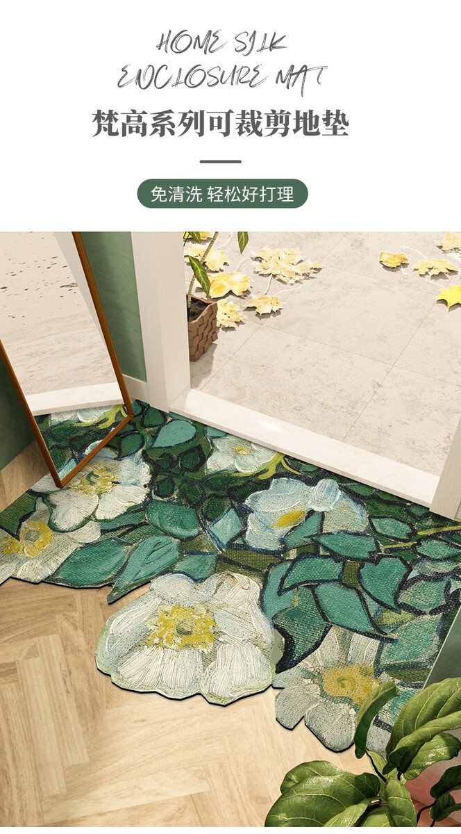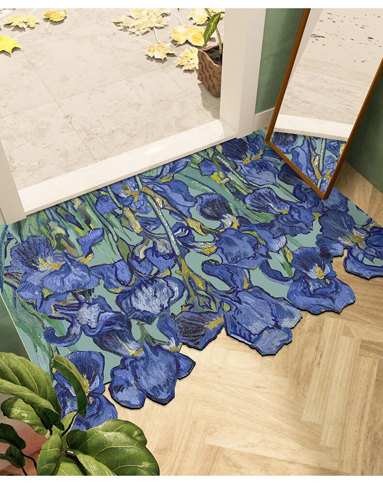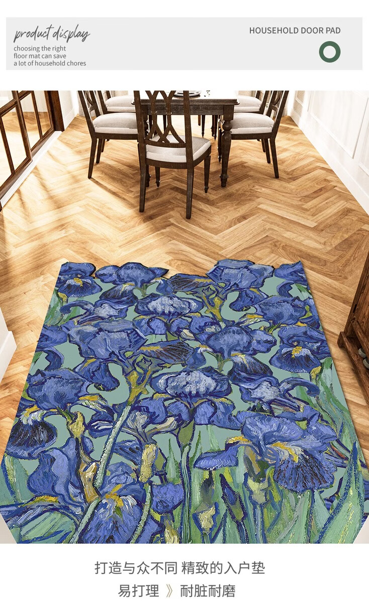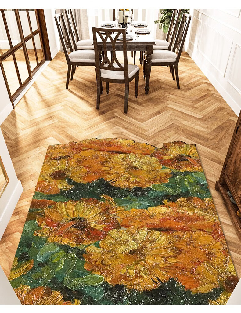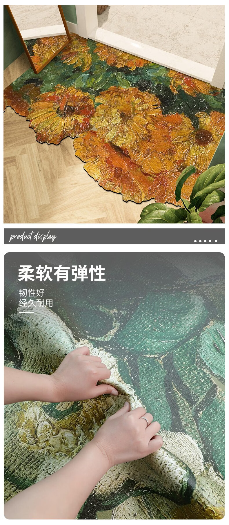 Fantasy entrance door floor mat household PVC door mat door mat entry wipeable no-wash leather foot mat foyer carpet Van Gogh series horizontal version Rudbeckia 80x120cm