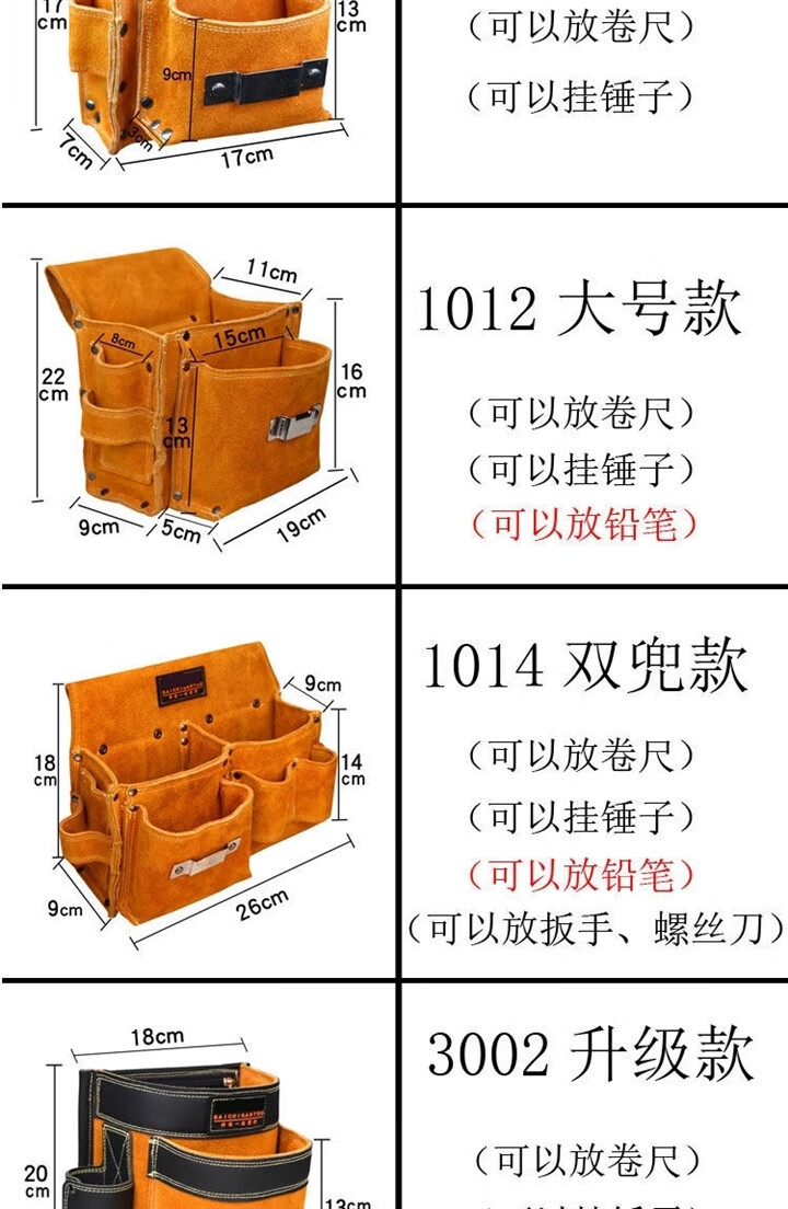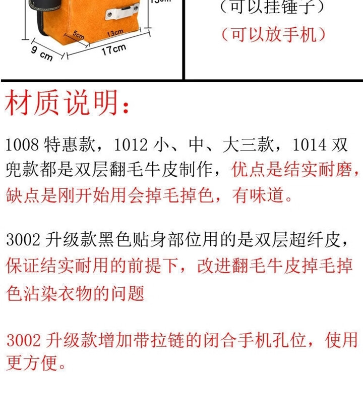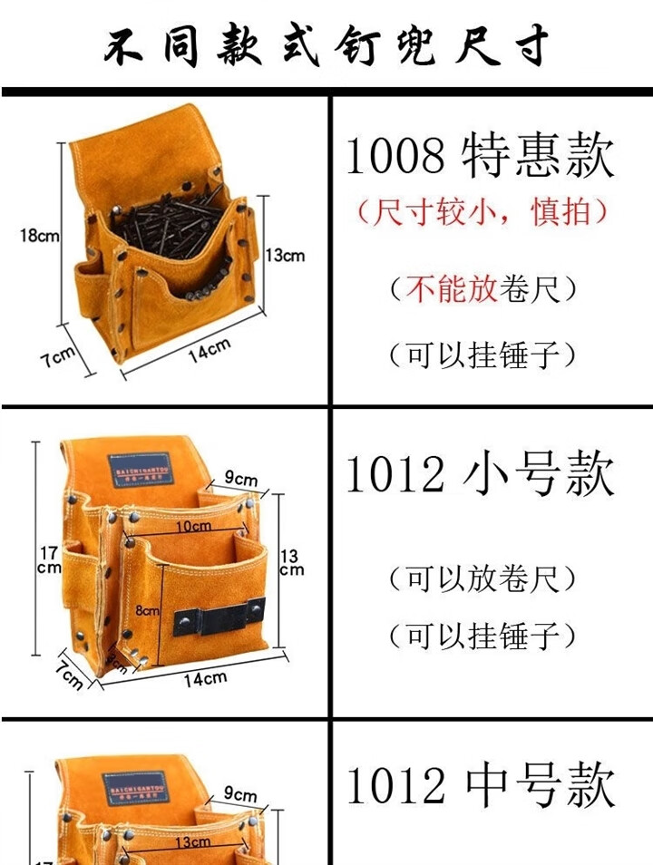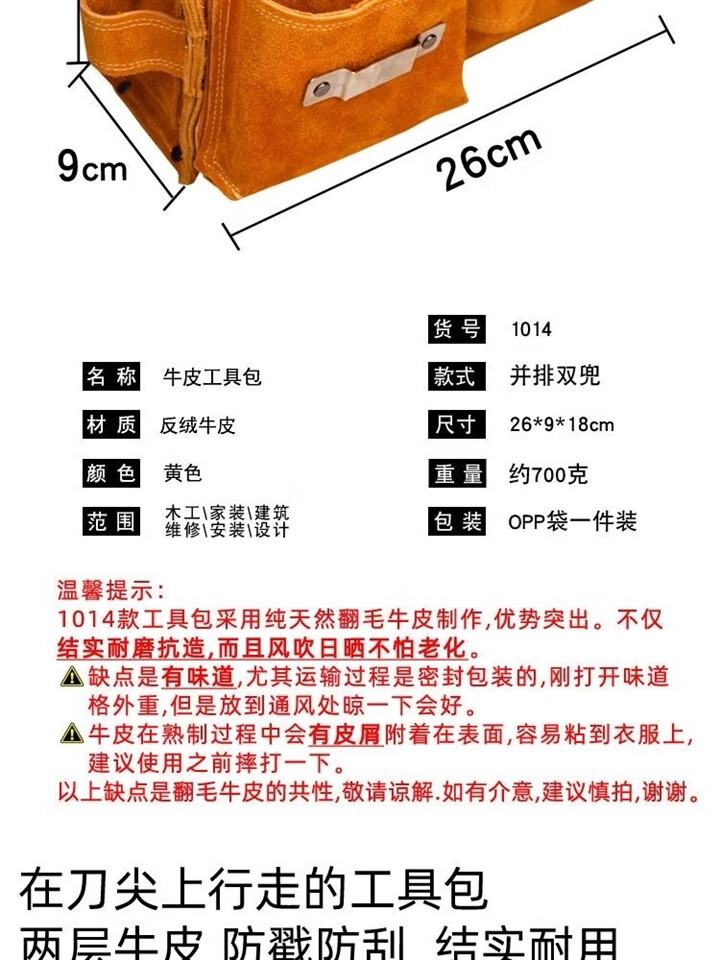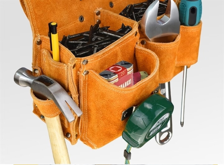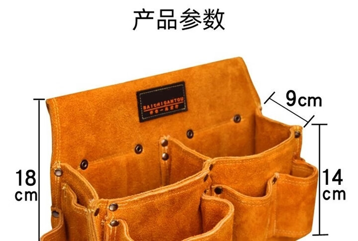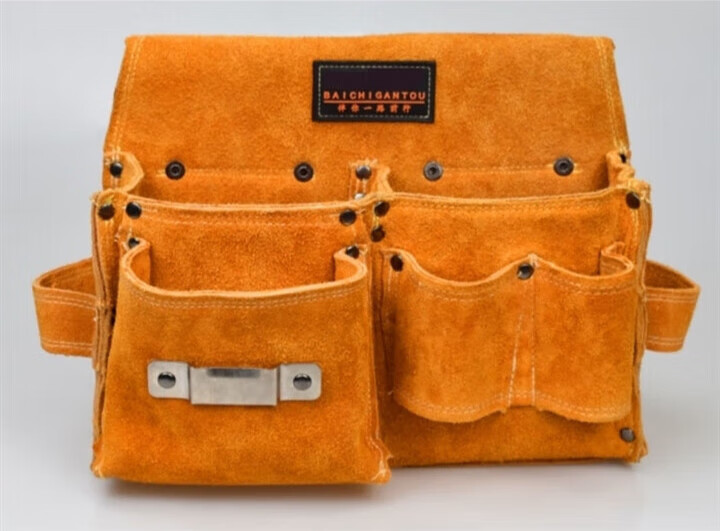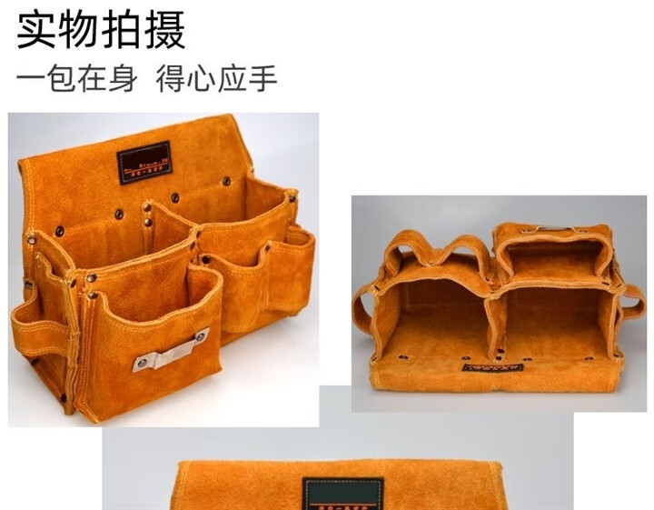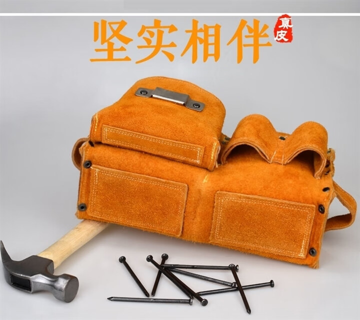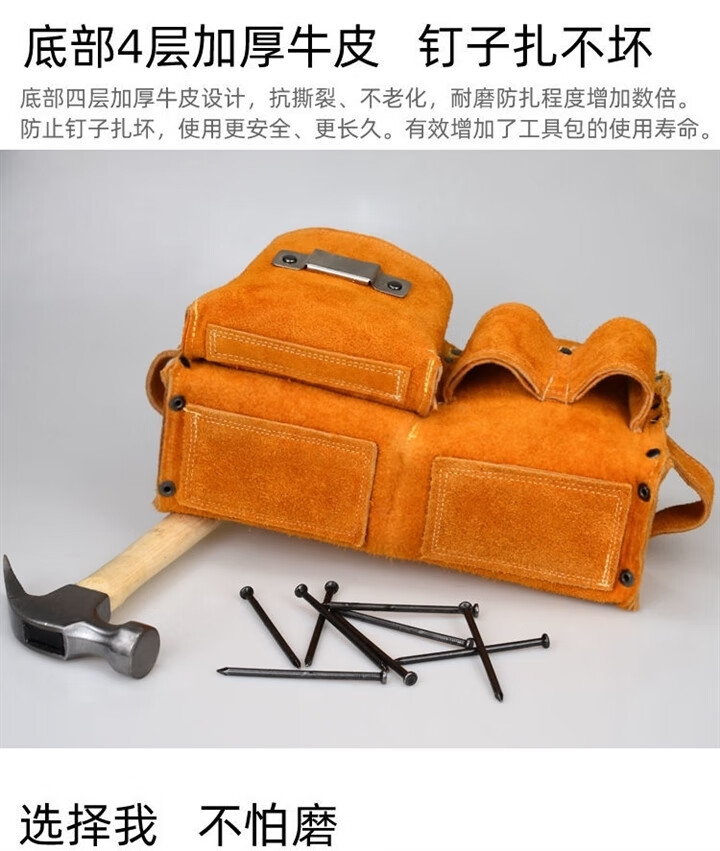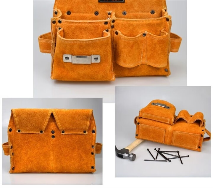 RSRDDY carpentry nail waist bag men's work site waist pocket cowhide bag nail bag wear-resistant two-layer tool storage classification bag 1014 double pocket style