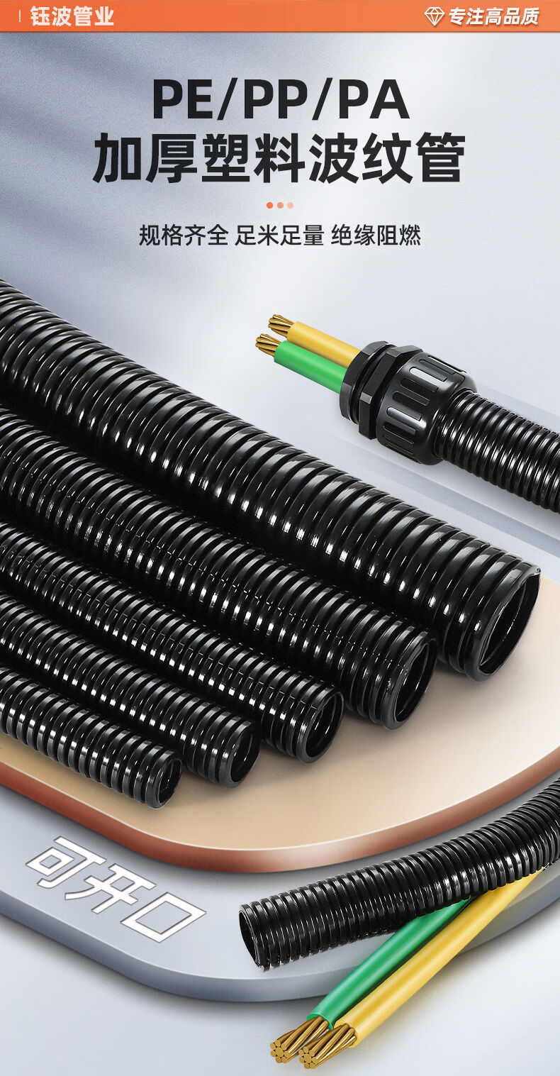 PA66 nylon plastic corrugated pipe automobile wiring harness wire protective cover flame retardant threading pipe threaded pipe open hose closed PA66 nylon AD7 thickened version 200 meters flame retardant grade V1