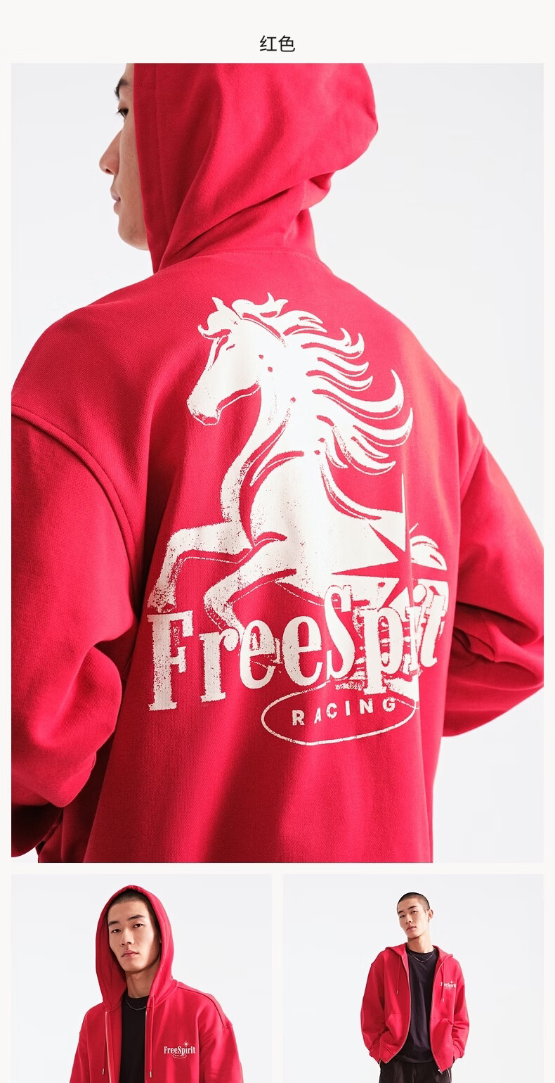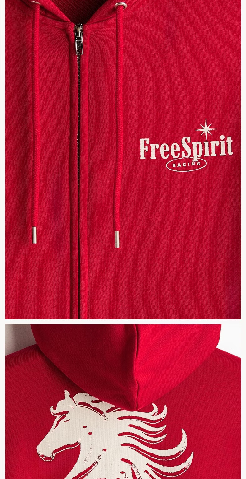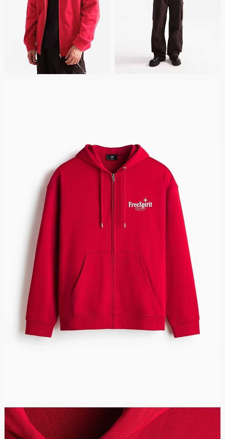H&M men's and women's sweatshirts 2026 spring new couple casual sweatshirt cardigan zipper hoodie 1322498 red XL 180/116