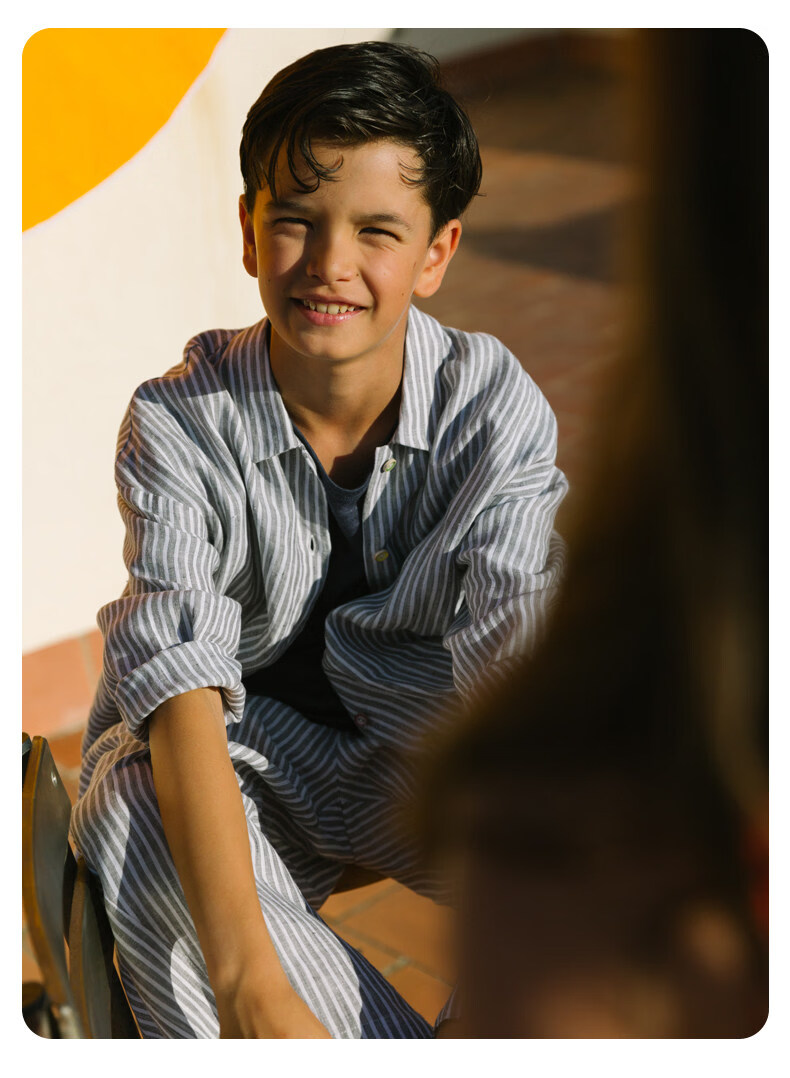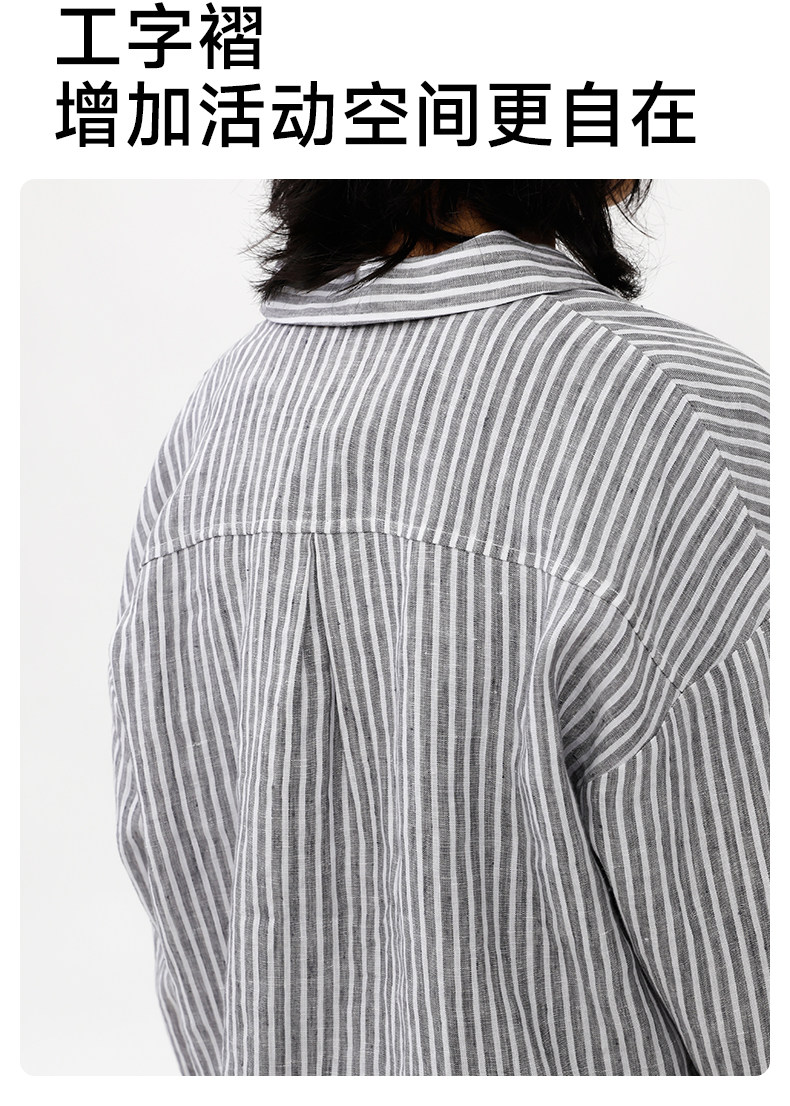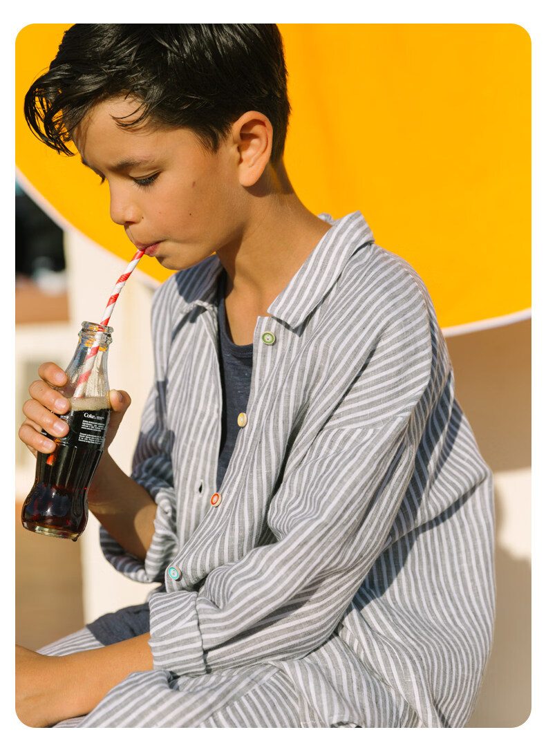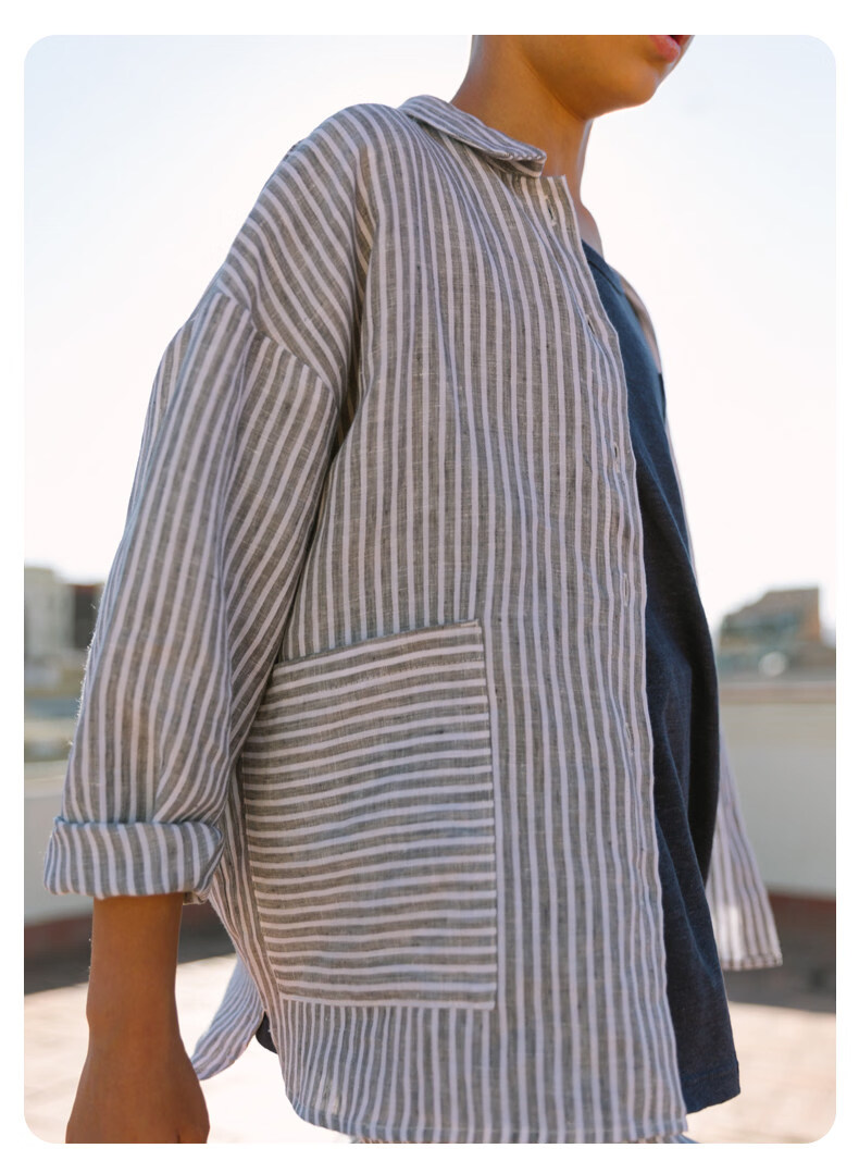 Naju Naju детская льняная рубашка свободная в полоску с открытыми плечами серая в полоску готовый ассортимент 140 см