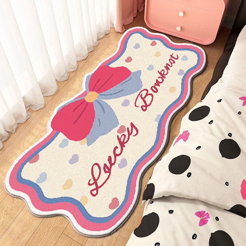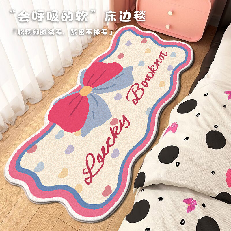 Bedside carpet, cartoon imitation cashmere mat, high-end thickened bedside blanket, bedroom end of bed foot pad, cute living room floor mat, love bow, thickened fine sand, imitation cashmere 60cm*160cm
