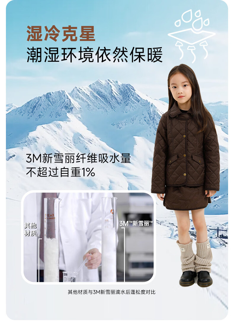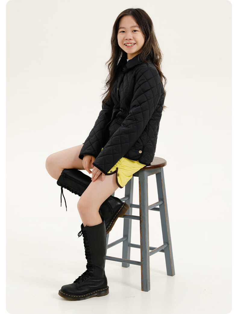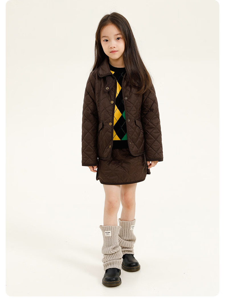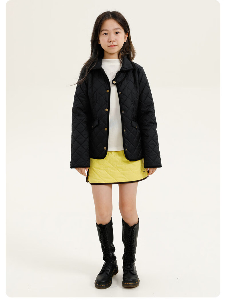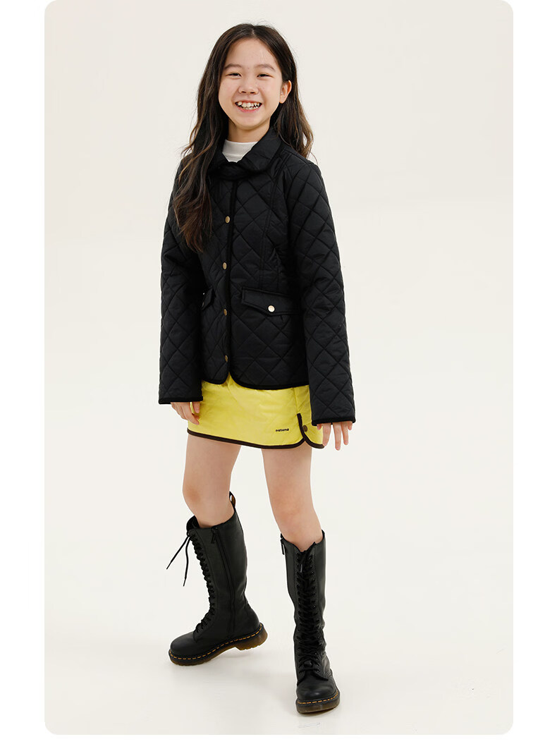 Naju Children's Clothing 3M Thinsulate Lapel Princess Line Cotton Clothes Children's Autumn and Winter Fluffy Warm Jackets Machine Washable Black and Gray Available in Stock 155 cm or 160 cm for children