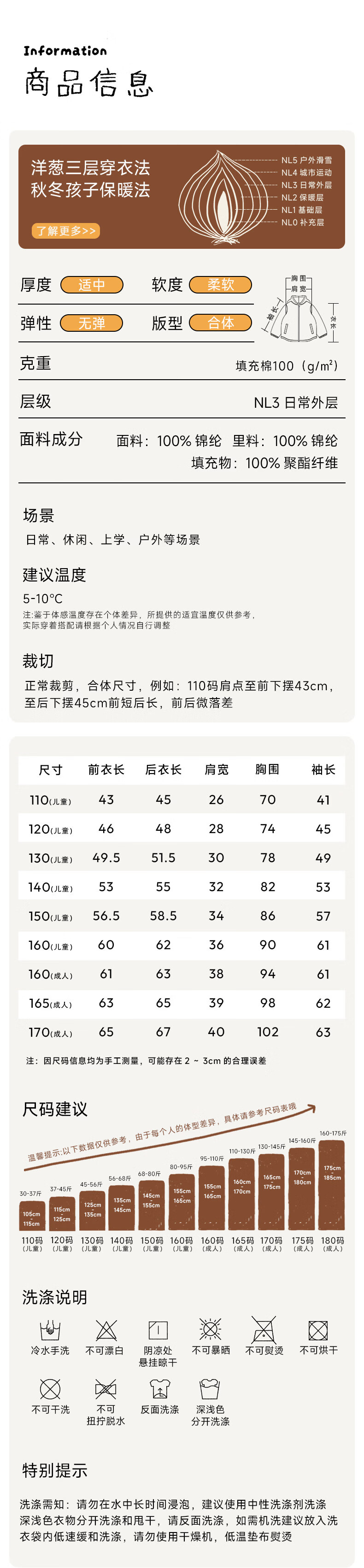 China (cm) 160-165/84-86 165-170 / 88-90 167-172 / 92-96 168-173 / 98-102 170-176 / 106-110