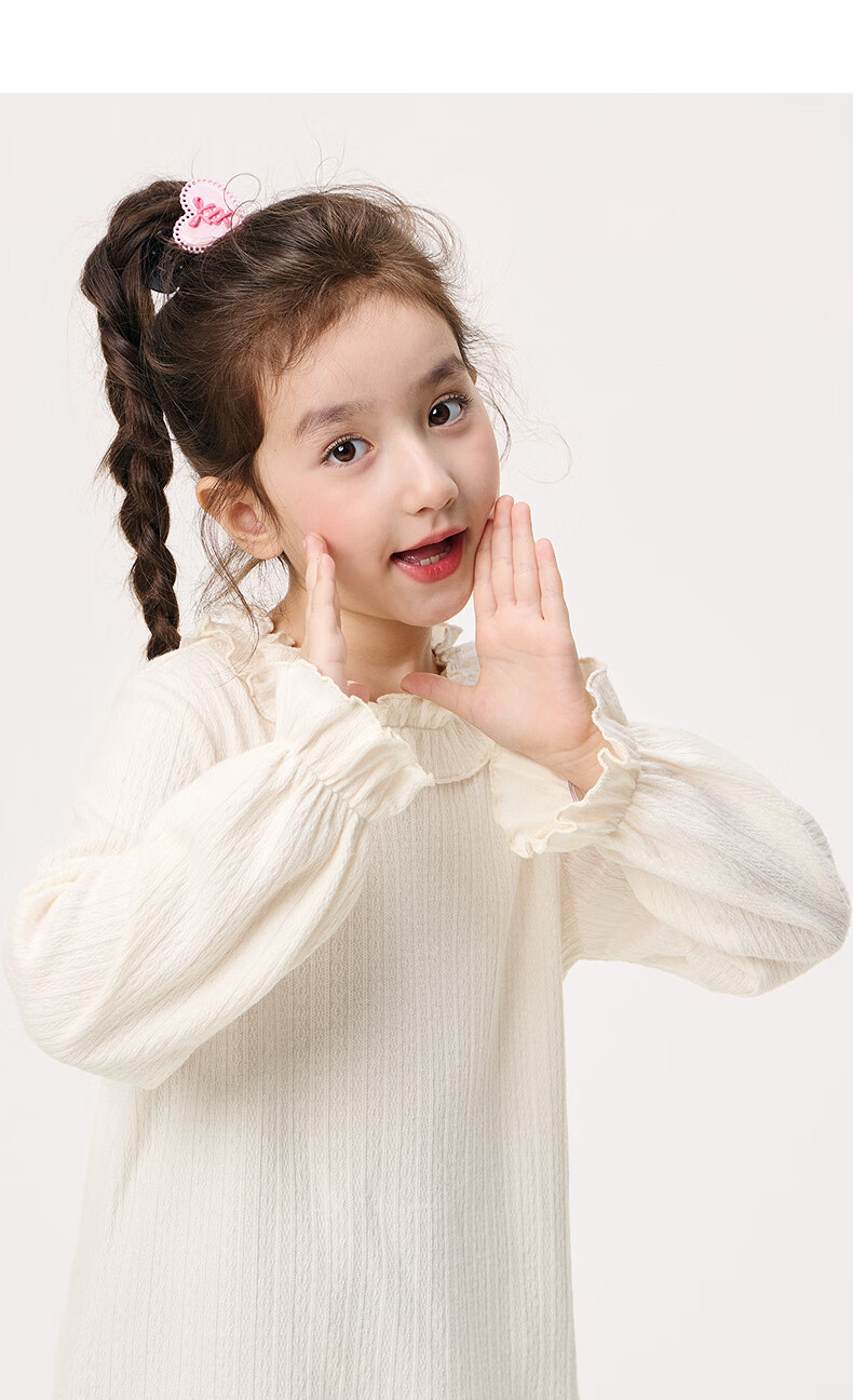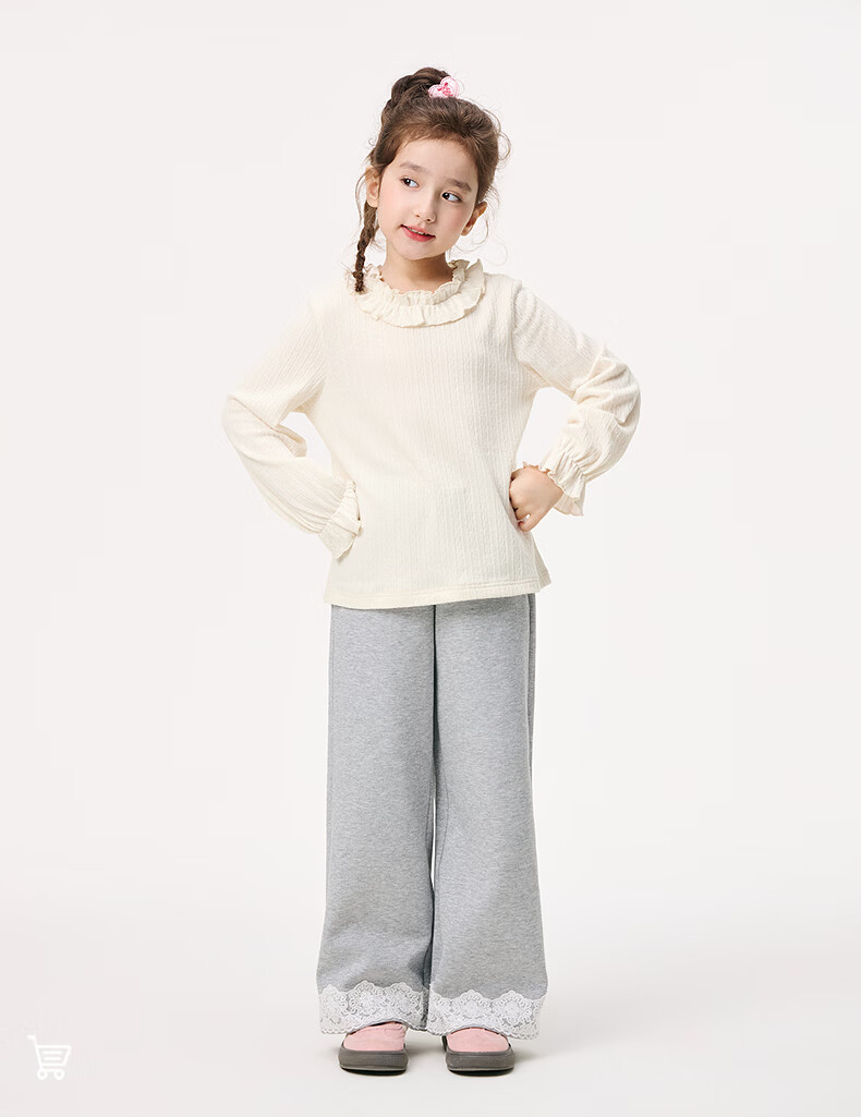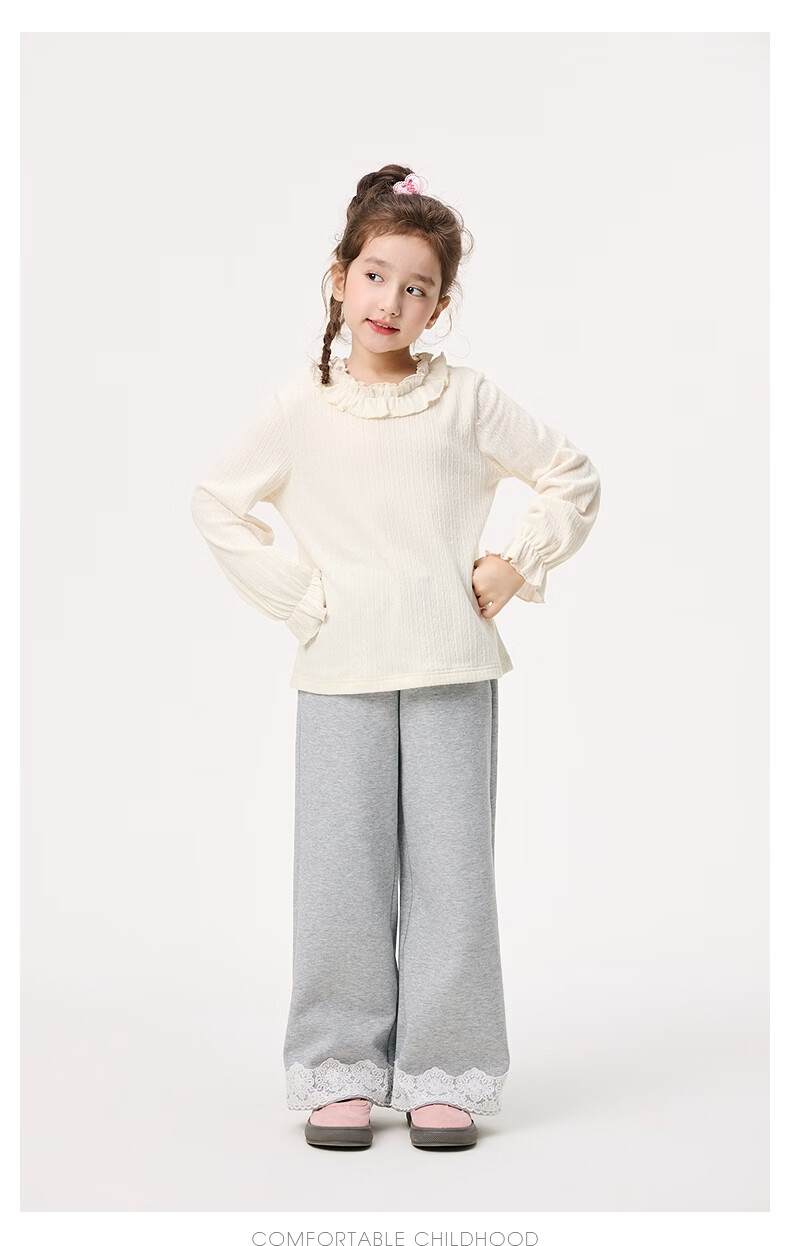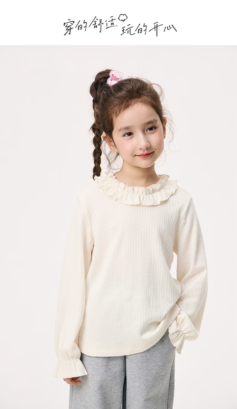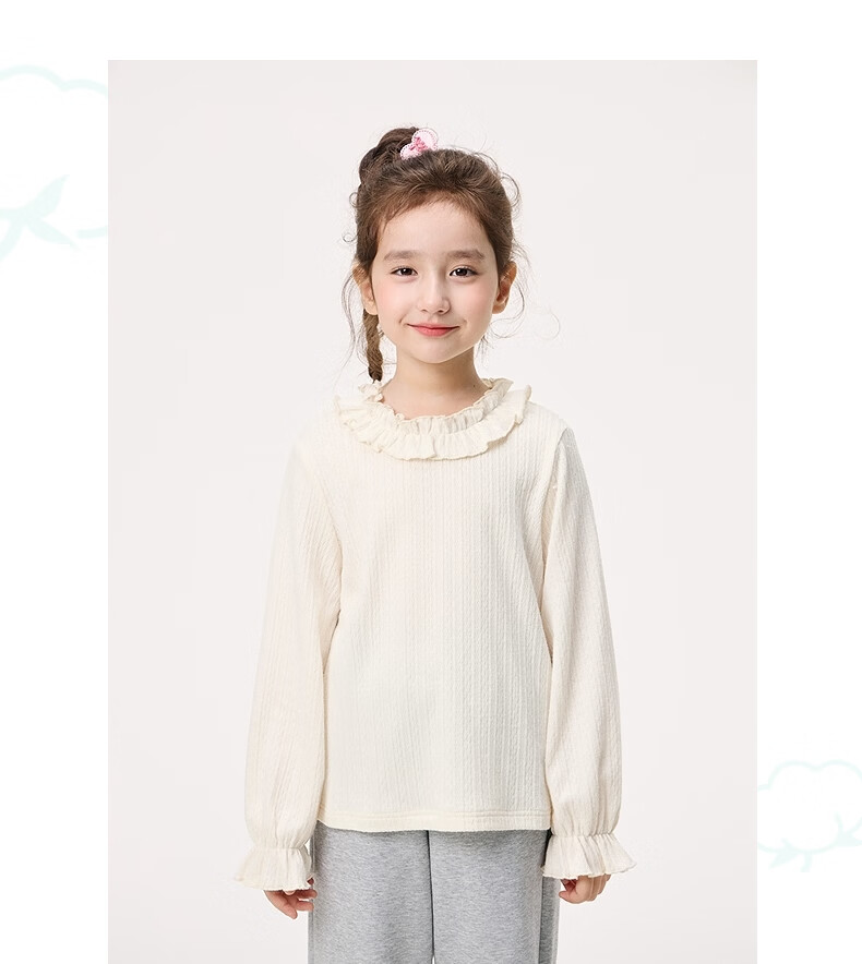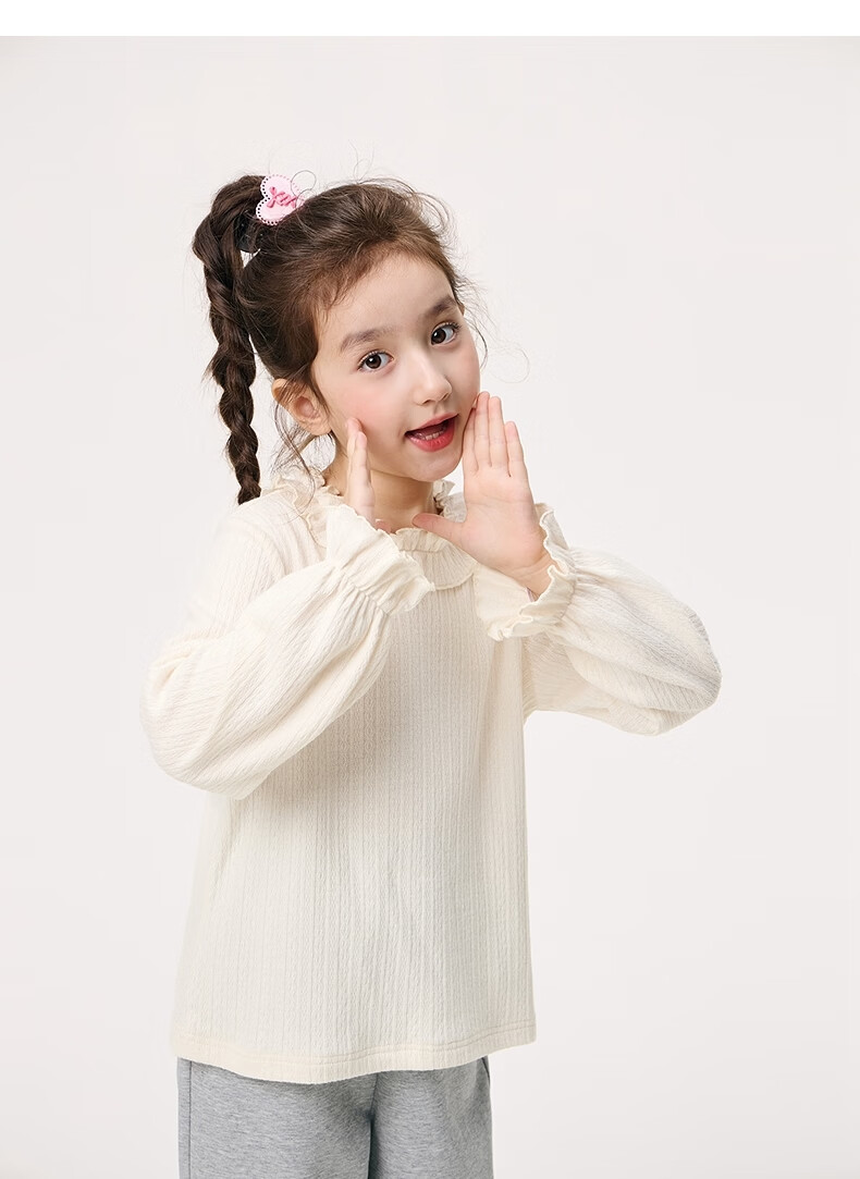 Xiaoyinman Children's Clothing Girls' Lace Round Neck Shirt 26 Spring Fashionable Long-sleeved Top for Big Children and Girls Beige 110