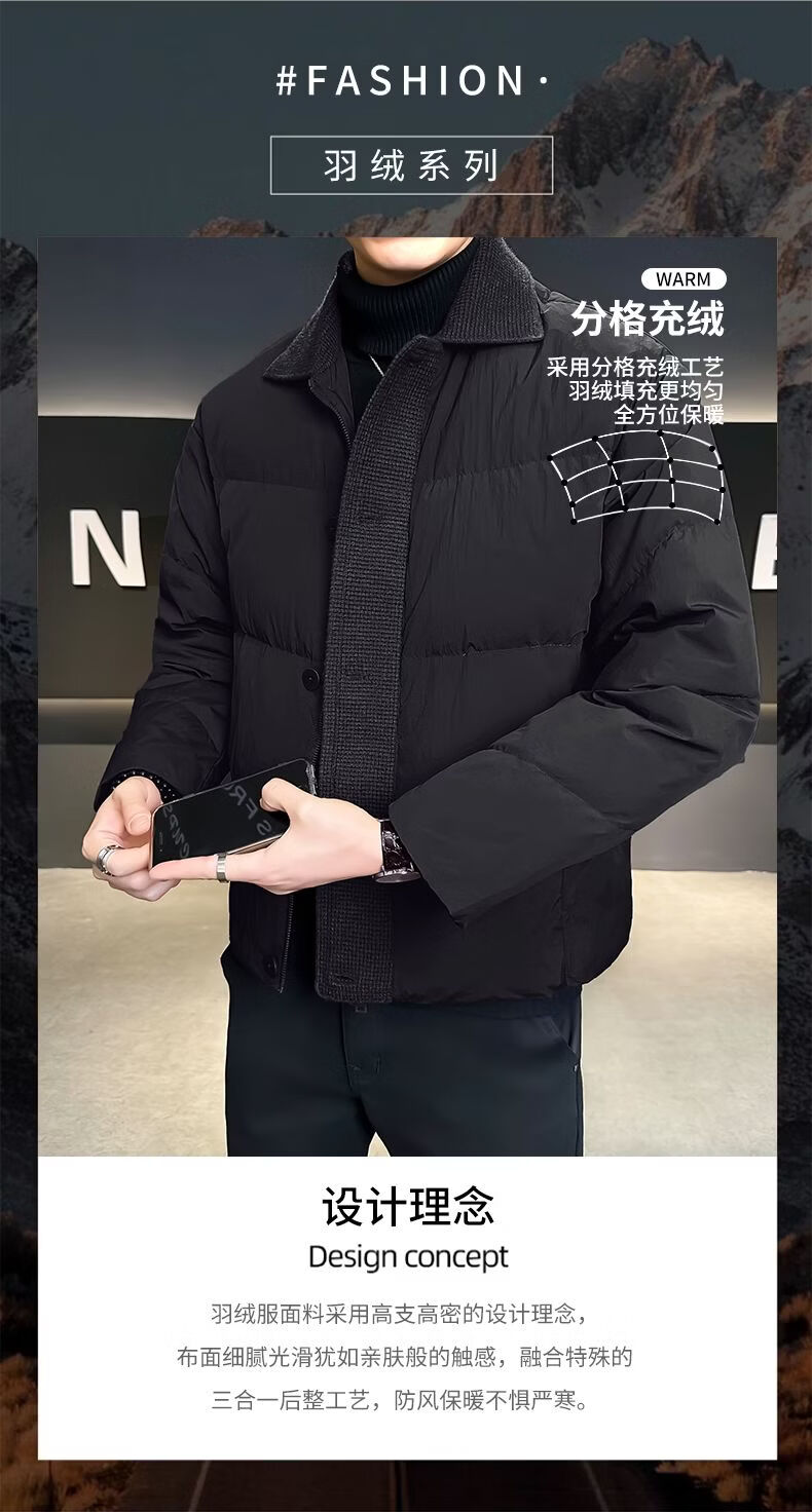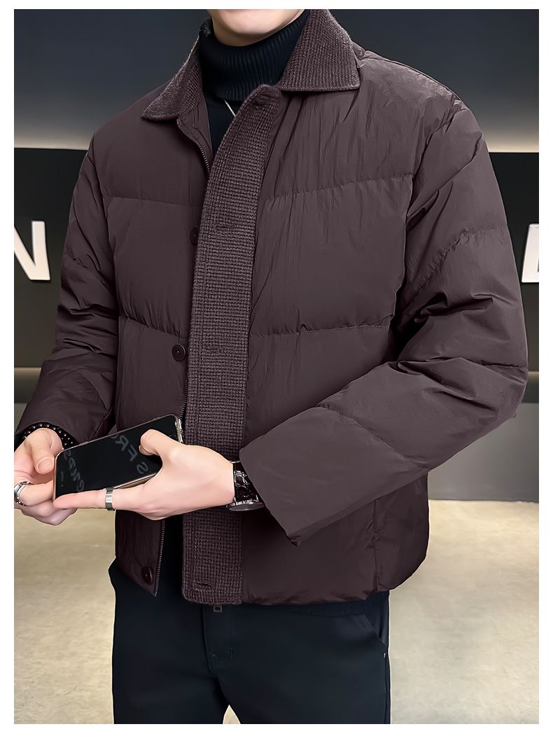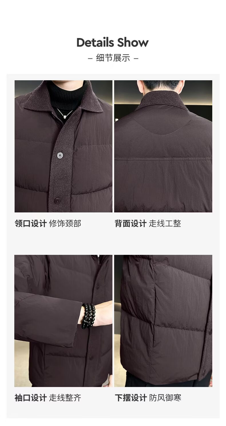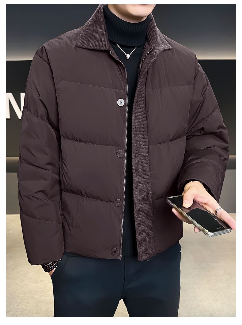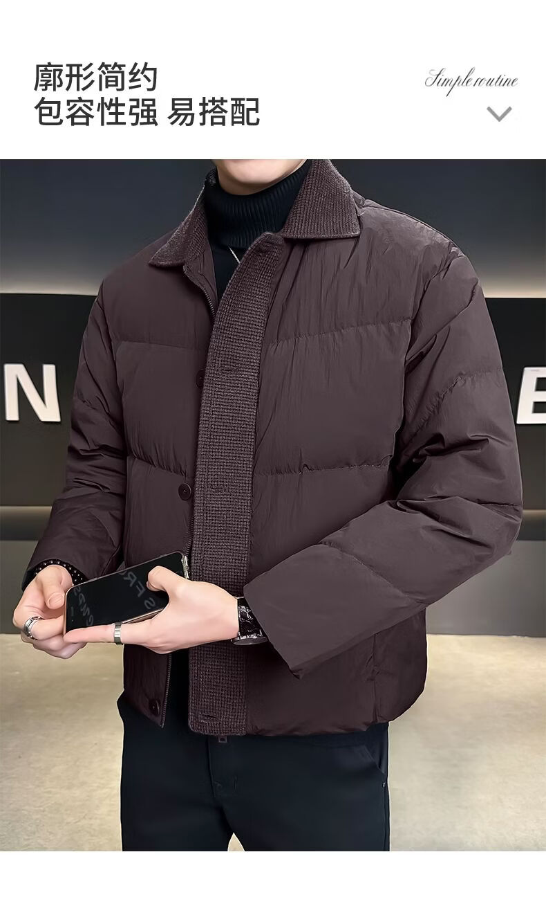 Hengyuanxiang 90 white duck down down jacket men's winter lapel 2026 new thickened jacket casual design high-end jacket coffee color M