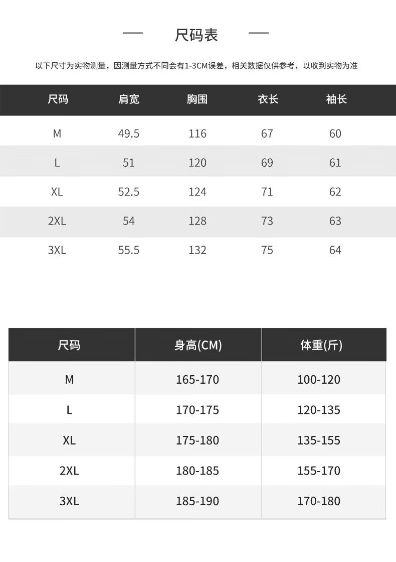 China (cm) 165 / 88-90 170 / 96-98 175 / 108-110 180 / 118-122 185 / 126-130