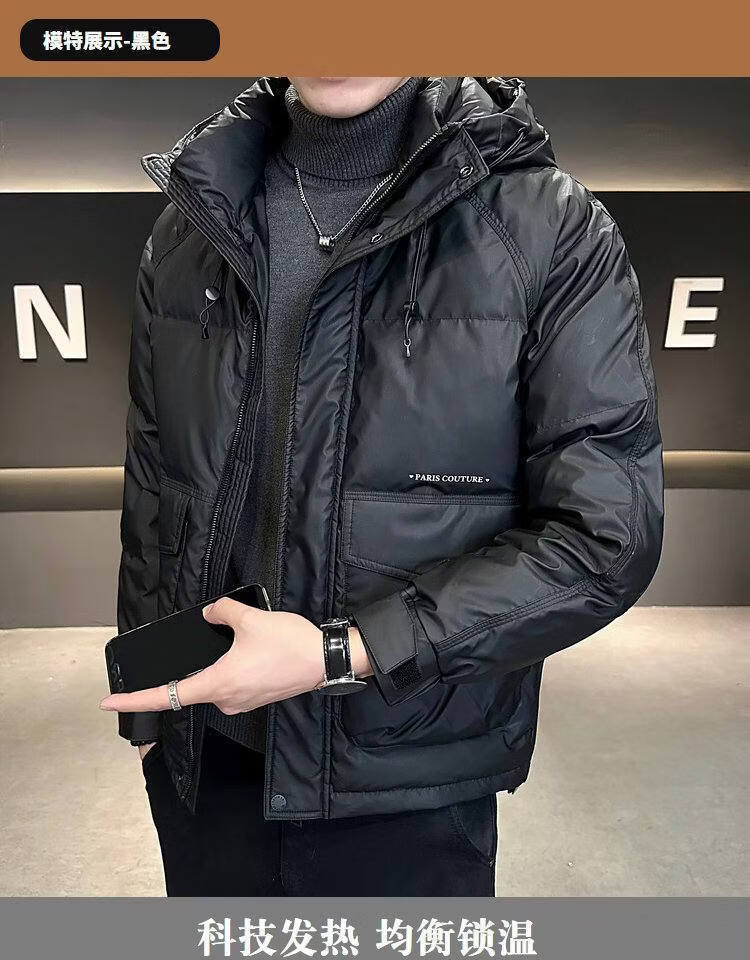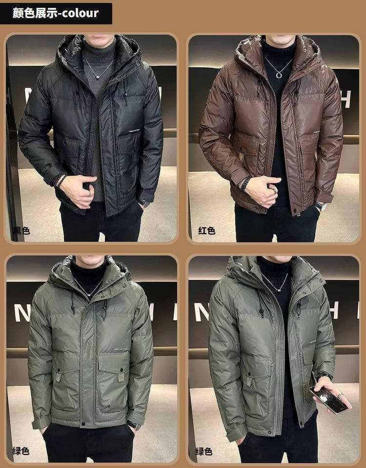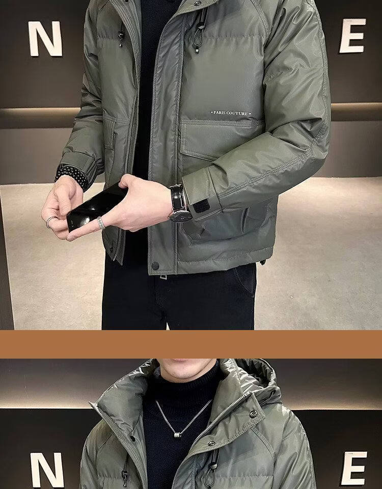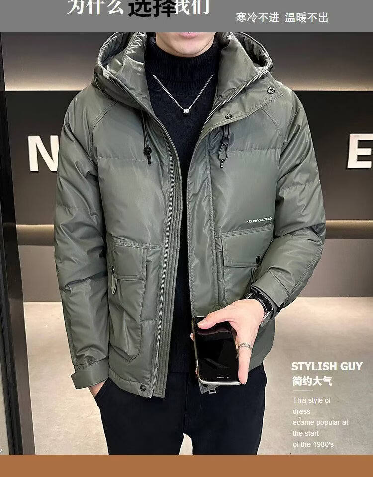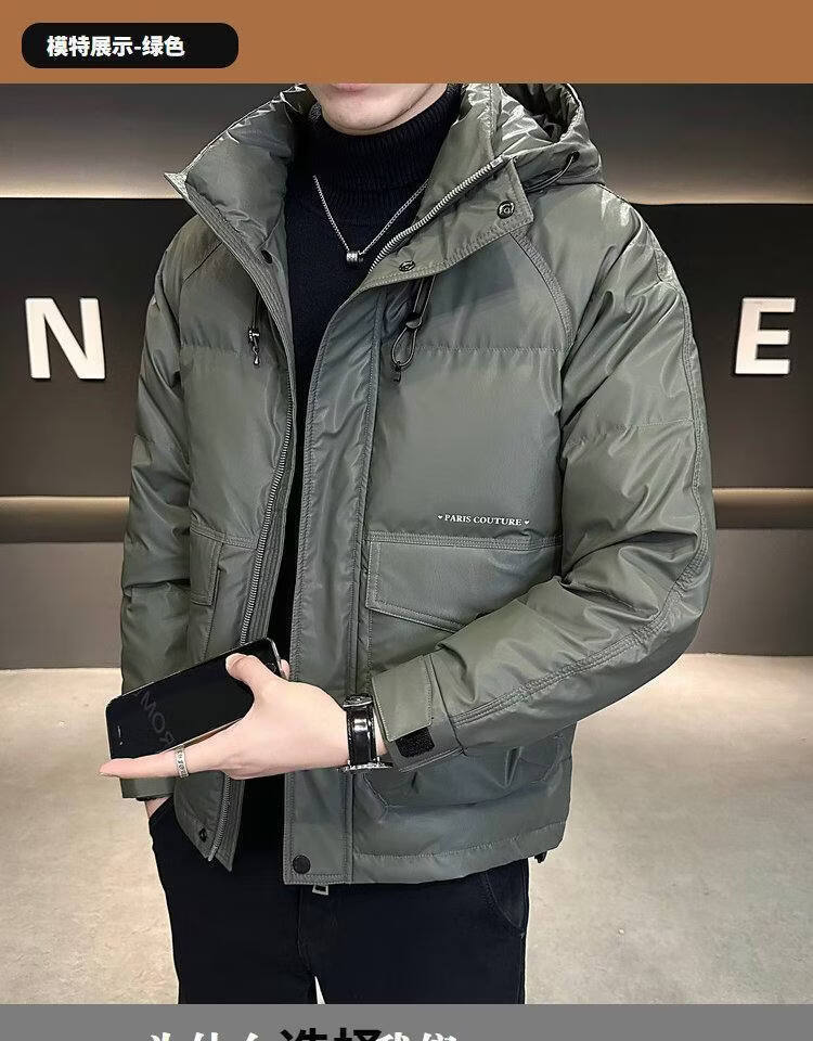 Hengyuanxiang duck down jacket men's short winter 2025 new trendy brand hooded warm thickened high-end jacket men's winter green national standard down jacket M recommended 80-100Jin Jin equals 0.5 kg