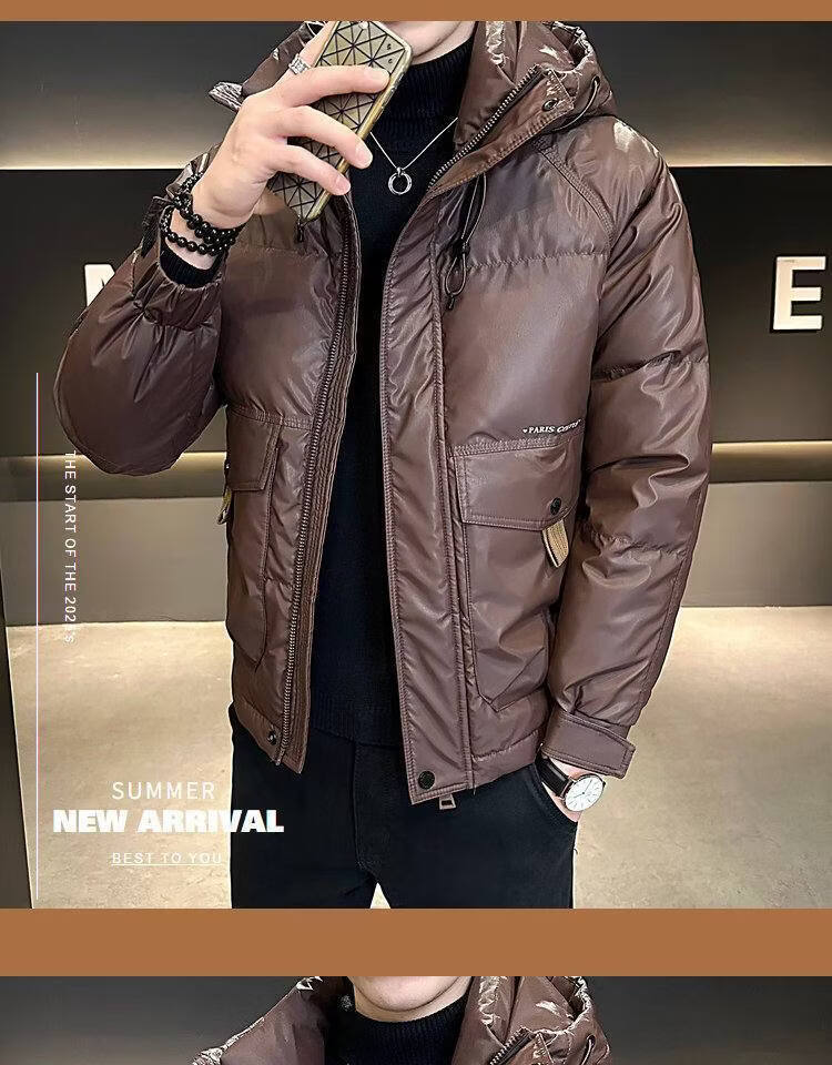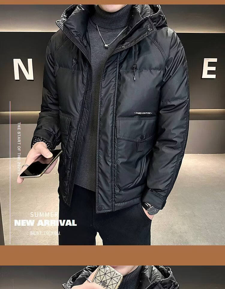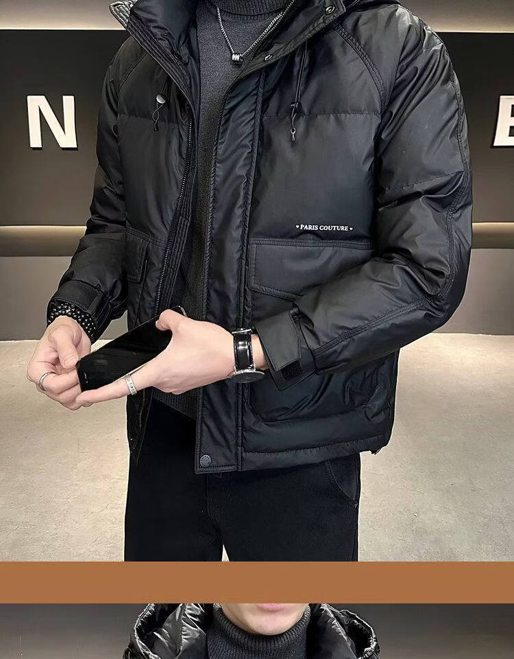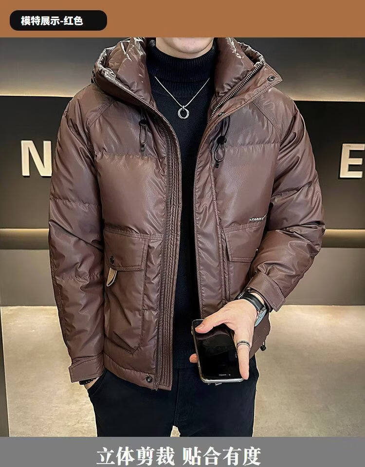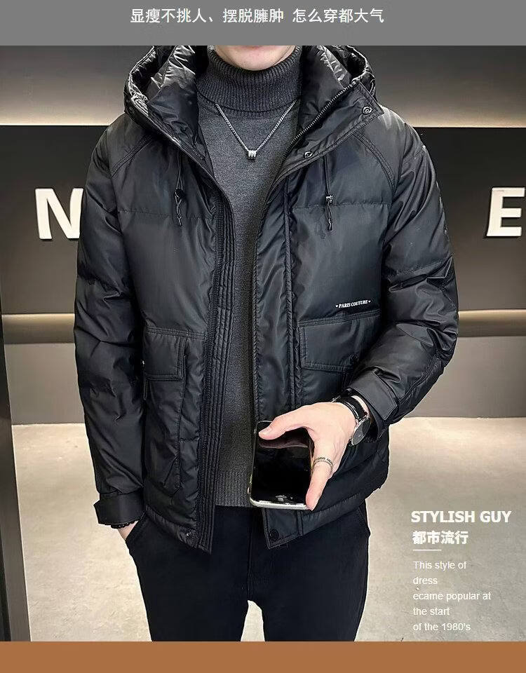 Hengyuanxiang duck down jacket men's short winter 2025 new trendy brand hooded warm thickened high-end jacket men's winter green national standard down jacket M recommended 80-100Jin Jin equals 0.5 kg
