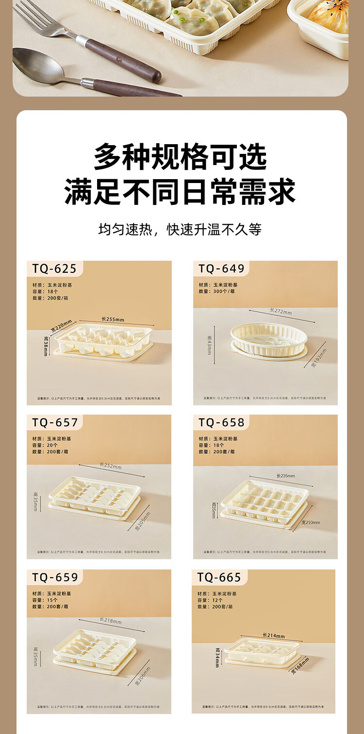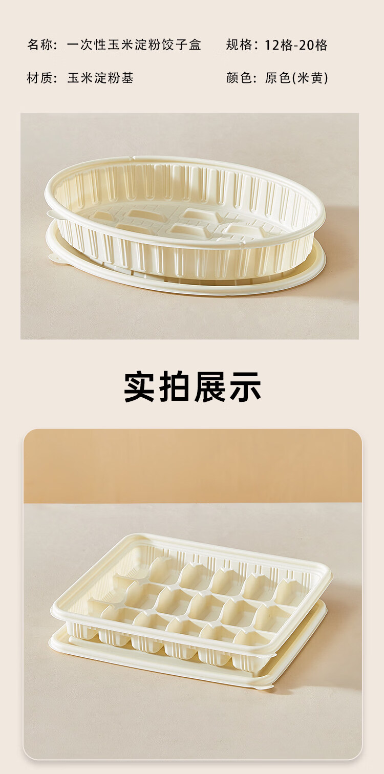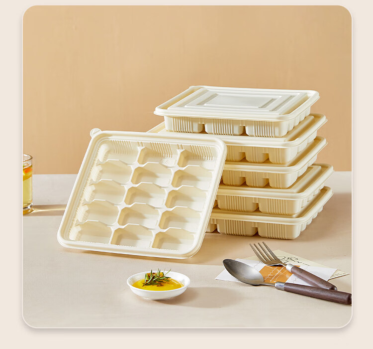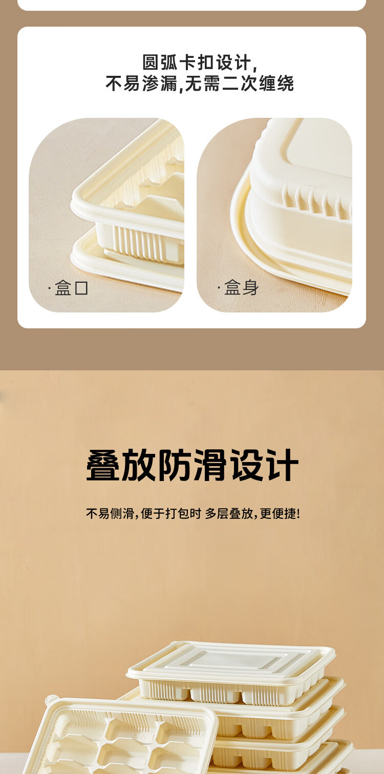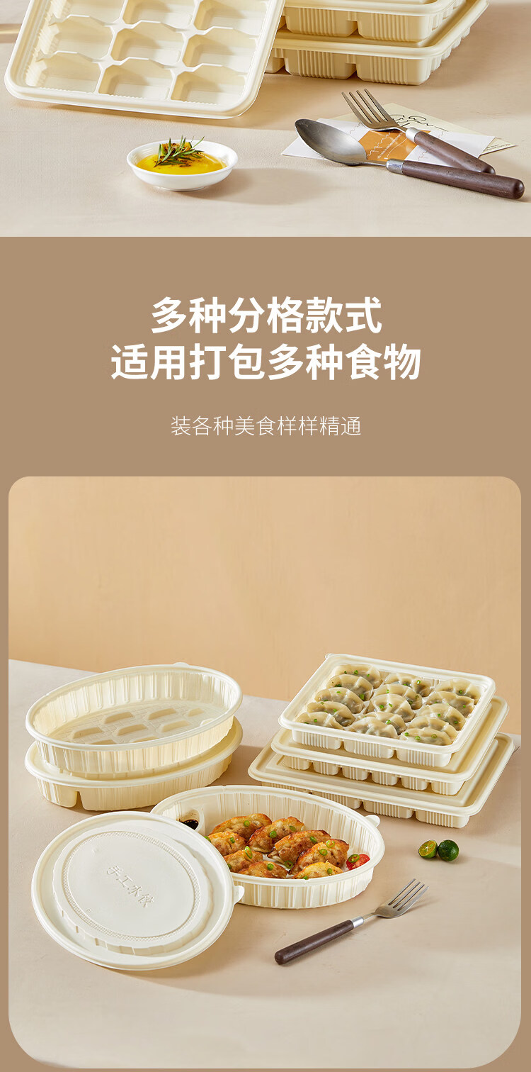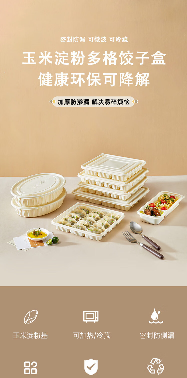 Utookii dumpling box, special frozen dumpling packaging box, disposable corn starch dumpling box, special packaging box for raw dumplings, starch-based oval dumpling box with lid, 300 sets, with dipping port, item number 65