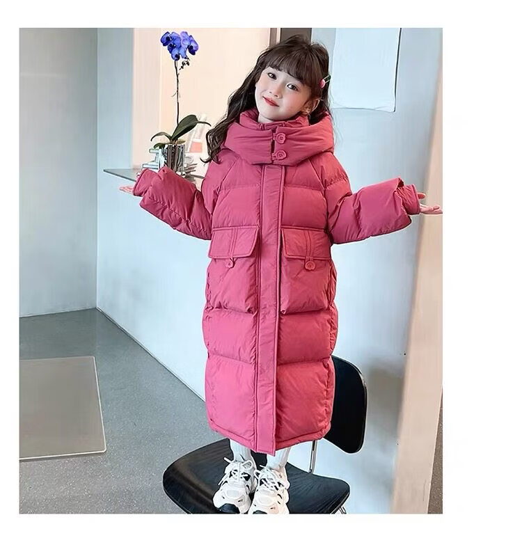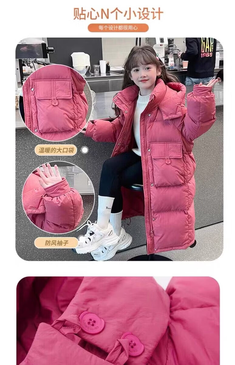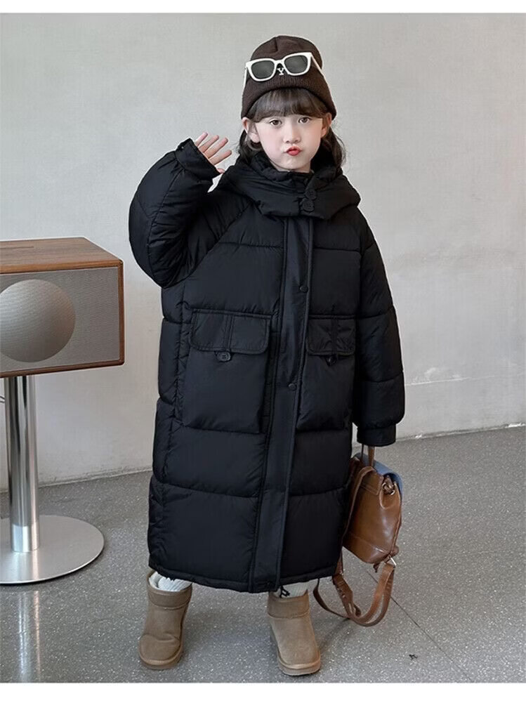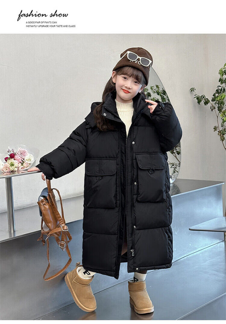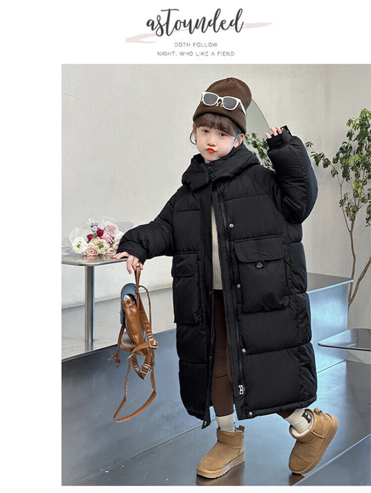 50% off on girls' winter thickened long down jacket 2026 new hooded girls' same style black 150 cm