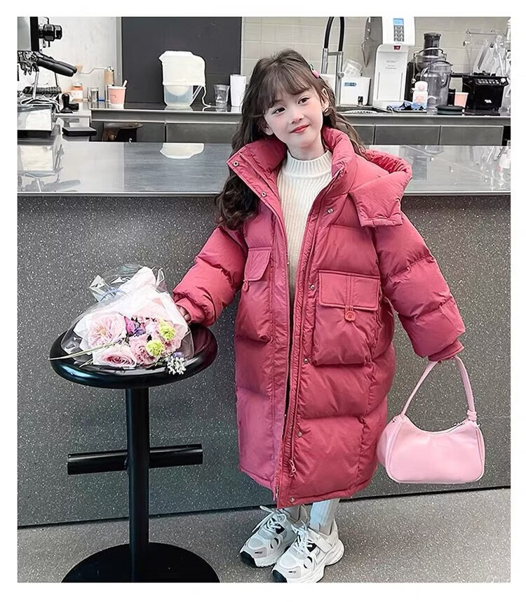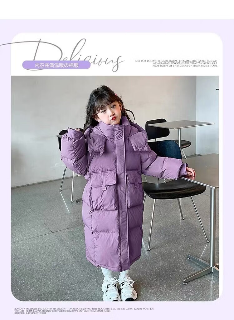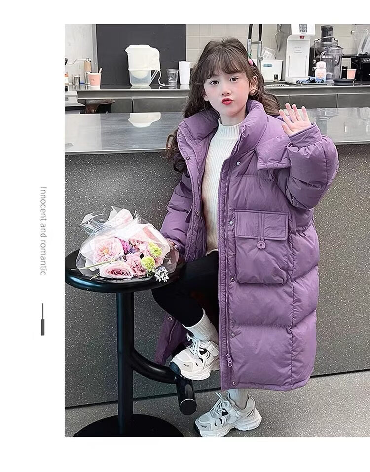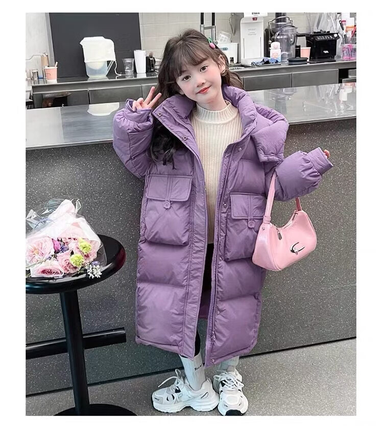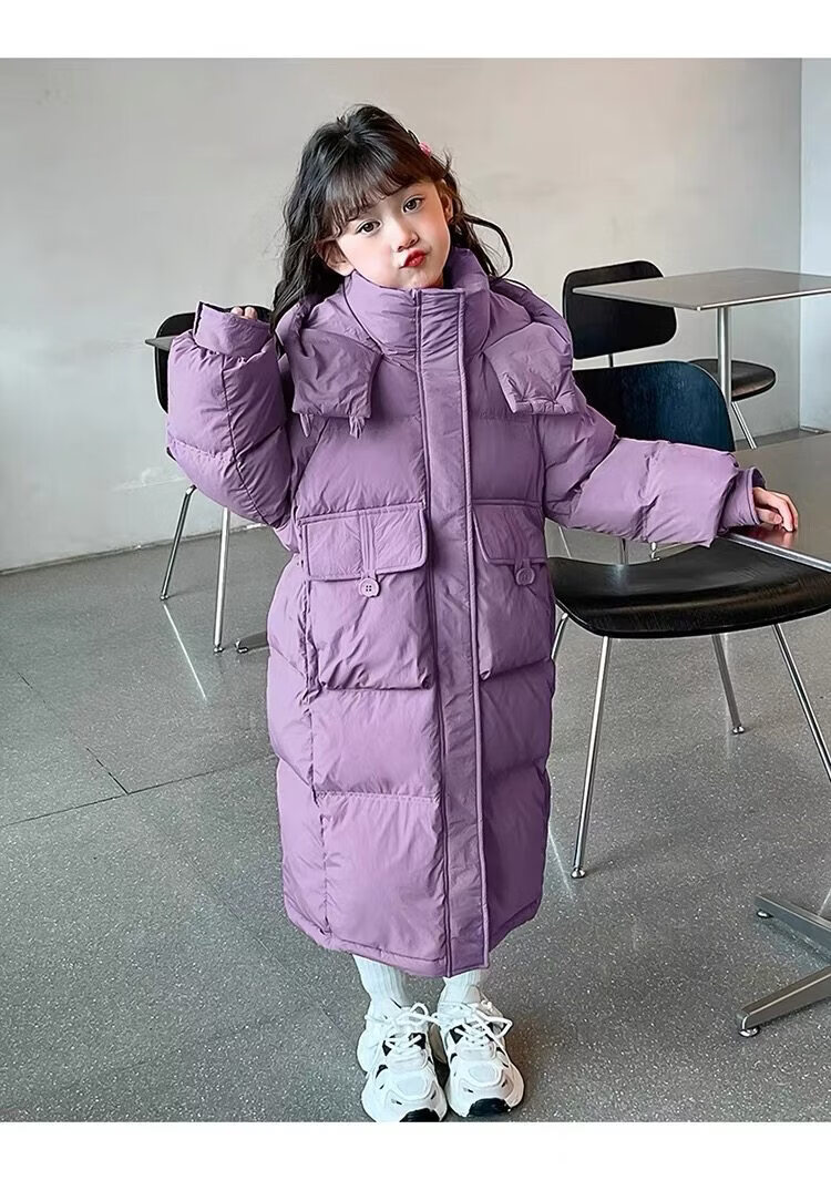 50% off on girls' winter thickened long down jacket 2026 new hooded girls' same style black 150 cm