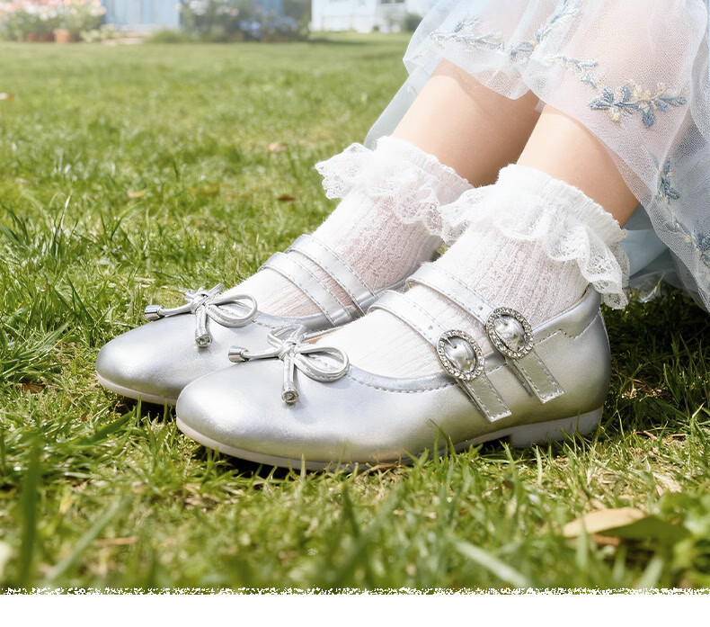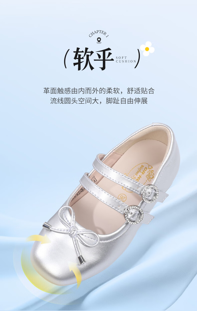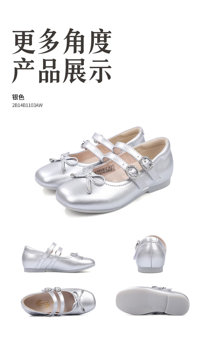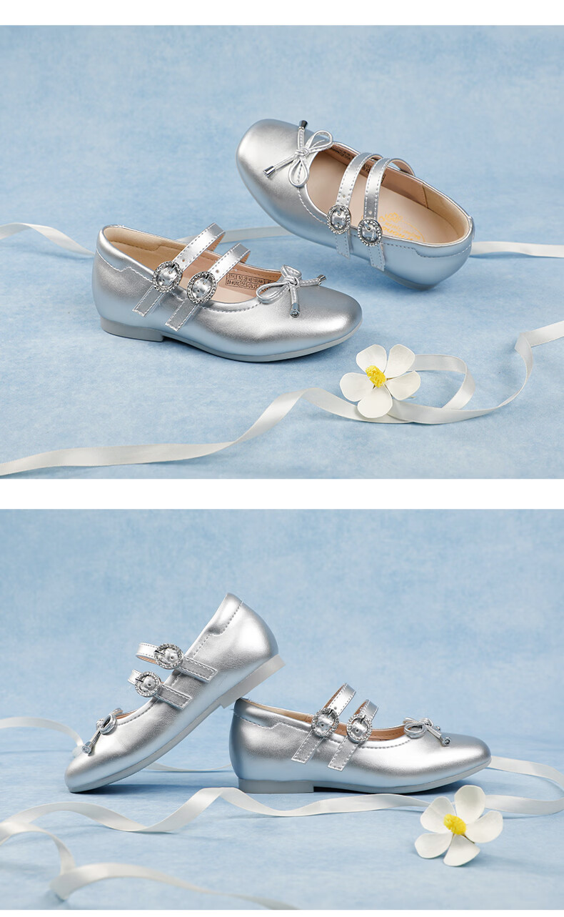 Dr. Jiang (DR KONG) spring girls' off-white solid color simple princess etiquette shoes campus performance children's leather shoes silver 23 feet length about 13.8-14.6